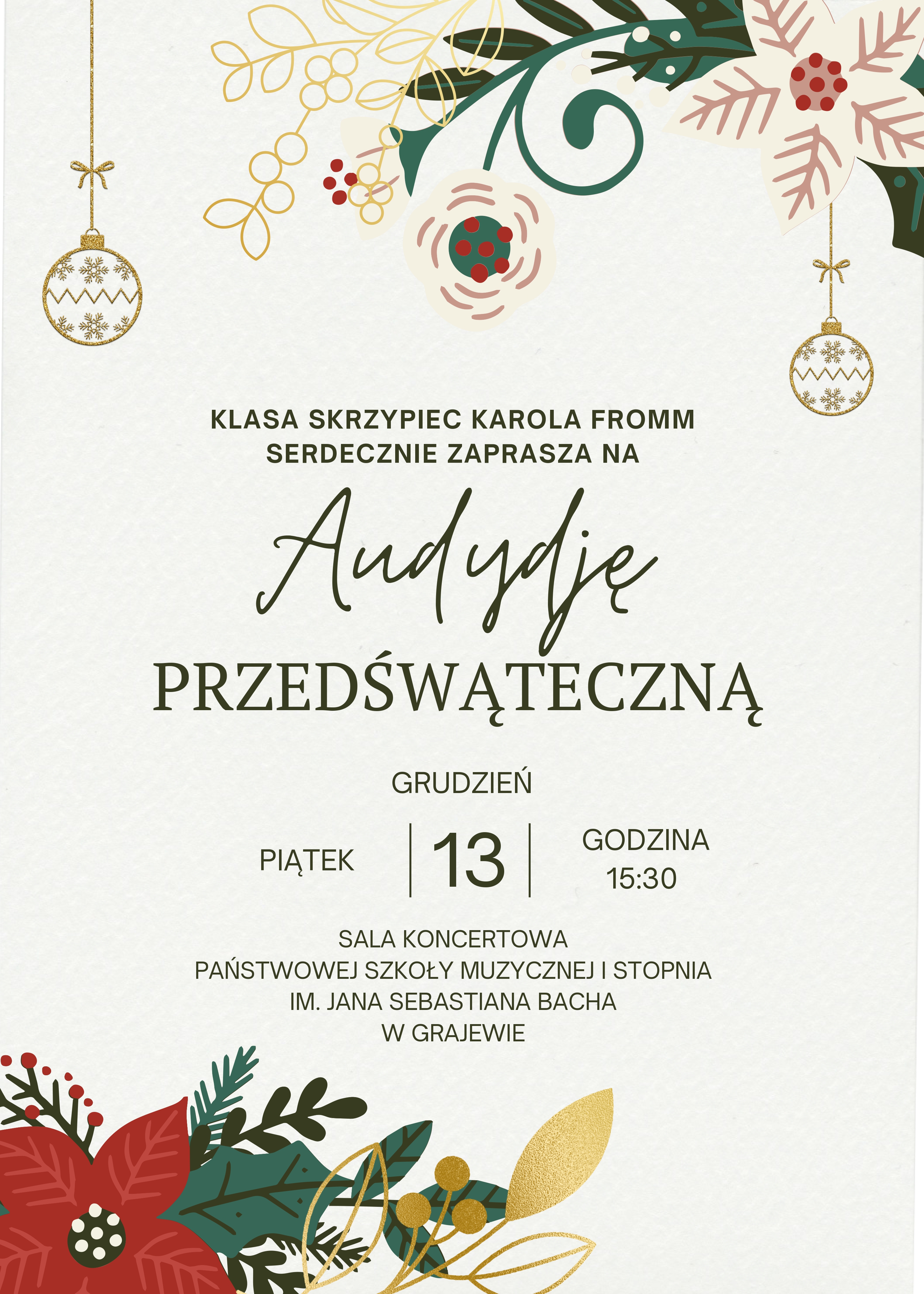 Serdecznie zapraszamy na przedświąteczną audycję klasy skrzypiec Karola Fromm.