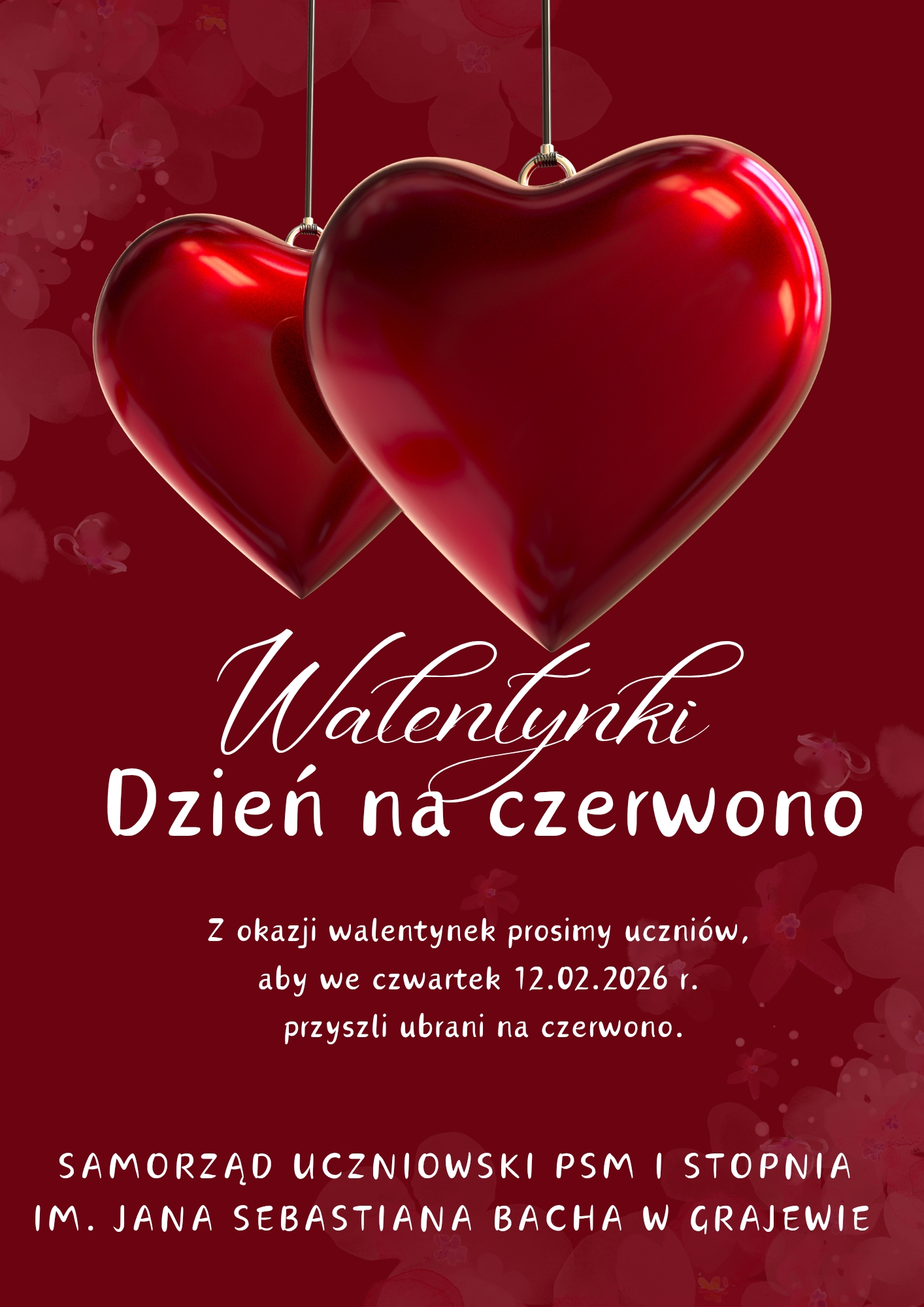 Samorząd uczniowski PSM I stopnia im. Jana Sebastiana Bacha w Grajewie z okazji Walentynek organizuje Dzień na czerwono.
