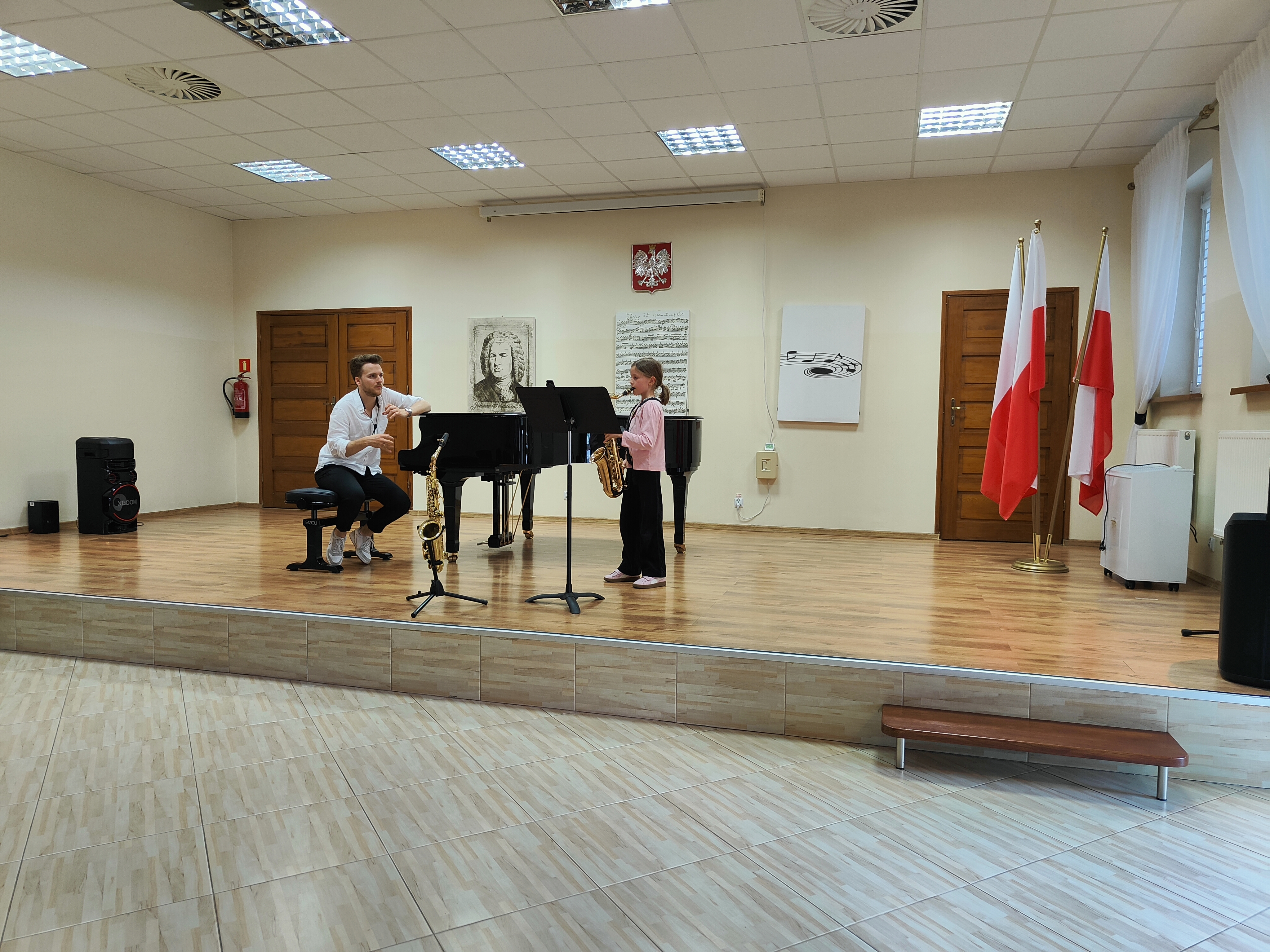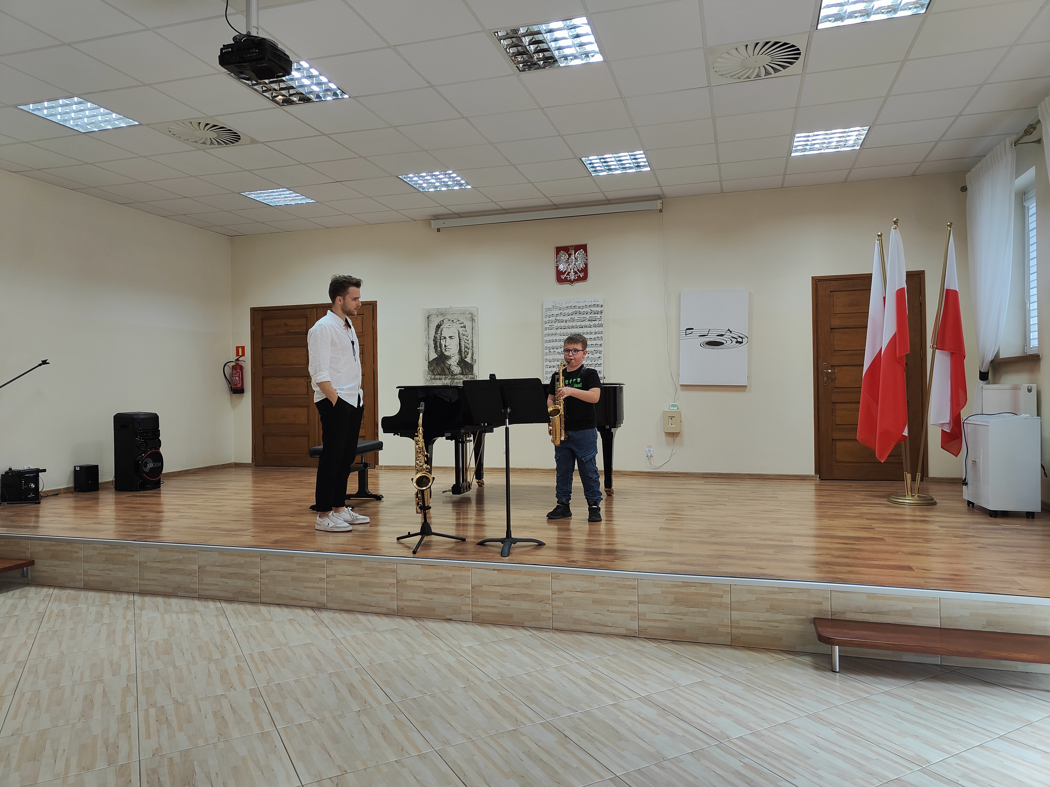 W dniu 15 maja 2025 roku w Państwowej Szkole Muzycznej I stopnia im. Jana Sebastiana Bacha w Grajewie odbyły się warsztaty saksofonowe prowadzone przez mgr Jakuba Murasa – doświadczonego saksofonistę i pedagoga. W wydarzeniu wzięło udział 18 uczniów, którzy mieli okazję zaprezentować swoje umiejętności oraz otrzymać cenne wskazówki dotyczące gry na instrumencie, techniki wykonawczej i interpretacji muzycznej.
