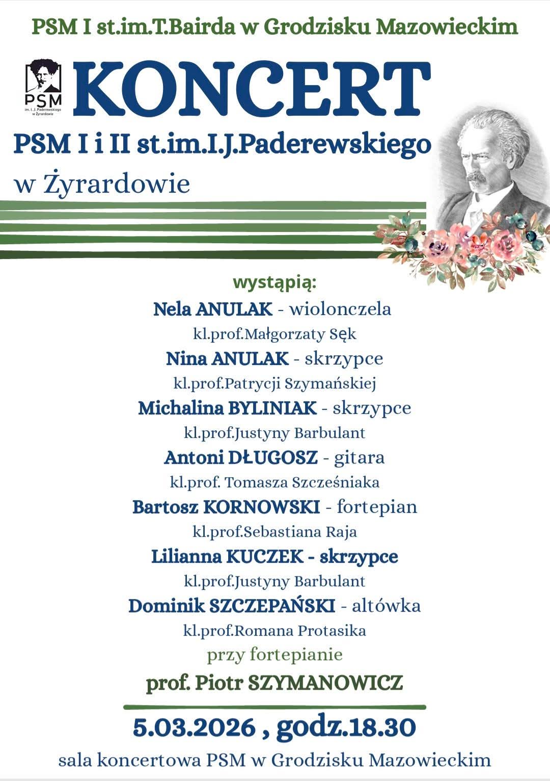 Koncert uczniów PSM I i II st. w Żyrardowie - 05.03.2026 r.