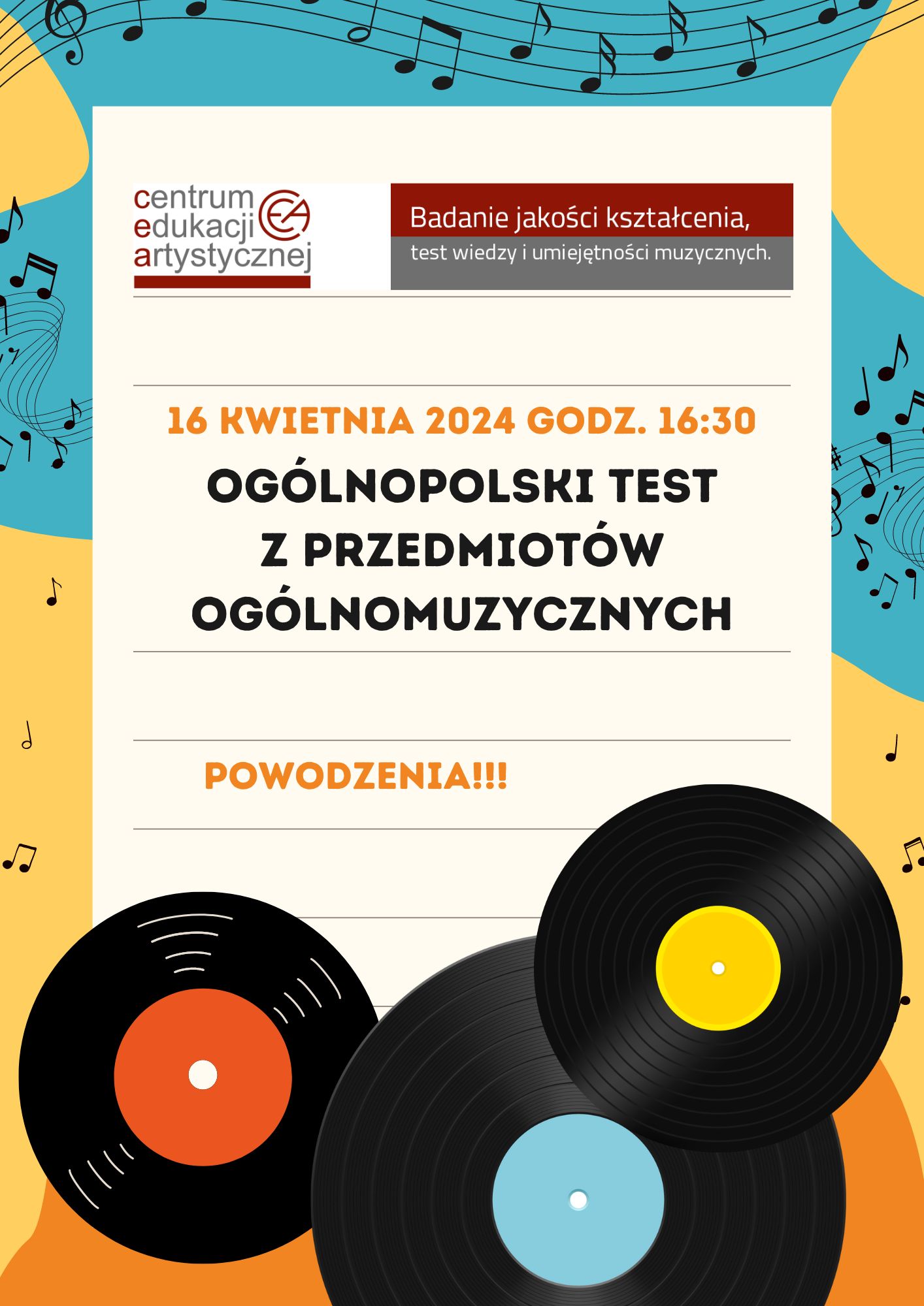 16 kwietnia 2024 o godz. 16:30 Centrum Edukacji Artystycznej przeprowadzi badanie jakości kształcenia artystycznego. Badaniem testowym z przedmiotów kształcenie słuchu i audycje muzyczne objęci są uczniowie klasy VI cyklu sześcioletniego i klasy IV cyklu czteroletniego.