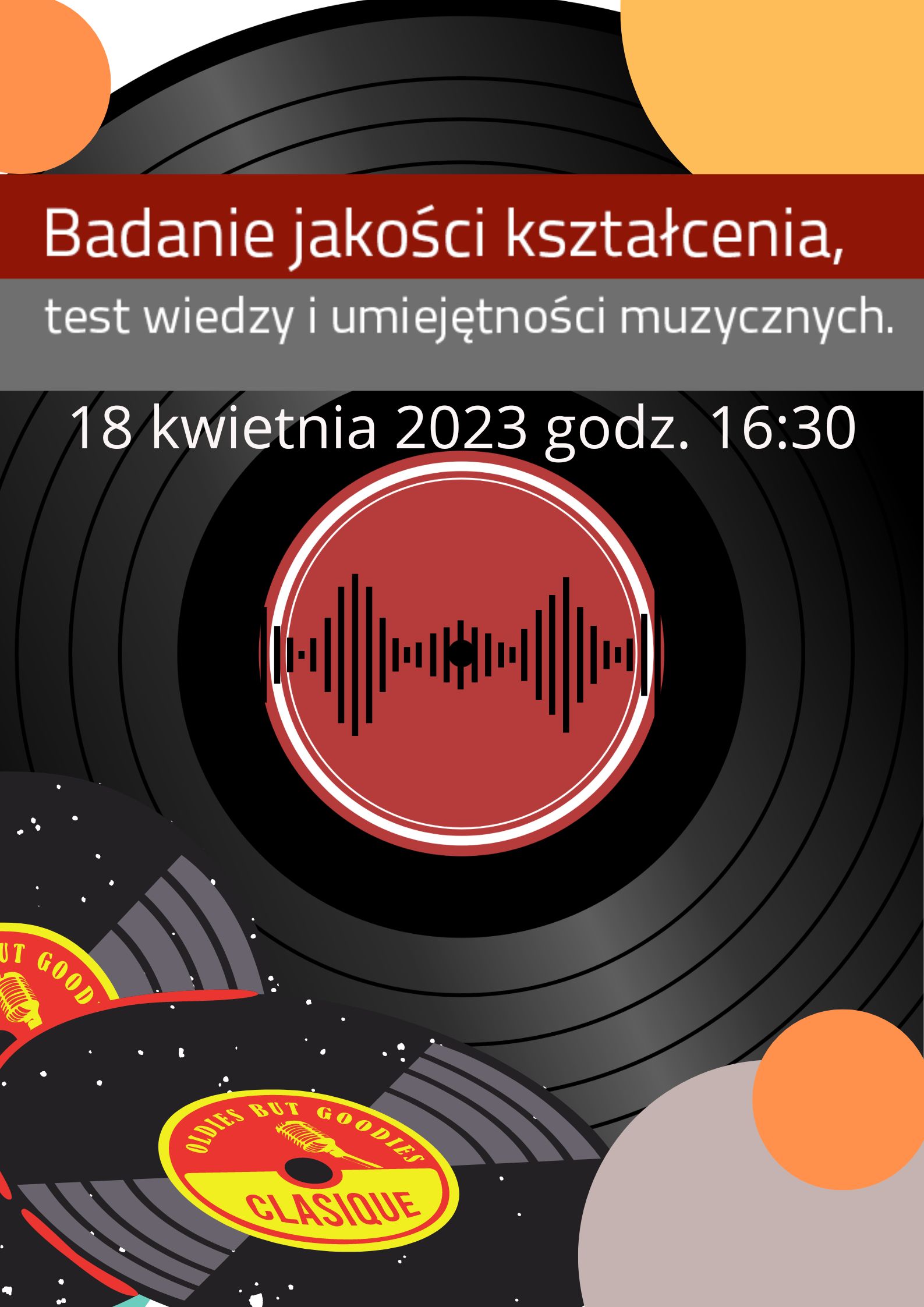 18 kwietnia 2023 o godz. 16:30 Centrum Edukacji Artystycznej przeprowadzi badanie jakości kształcenia artystycznego. Badaniem testowym z przedmiotów kształcenie słuchu i audycje muzyczne objęci są uczniowie klasy VI cyklu sześcioletniego i klasy IV cyklu czteroletniego.