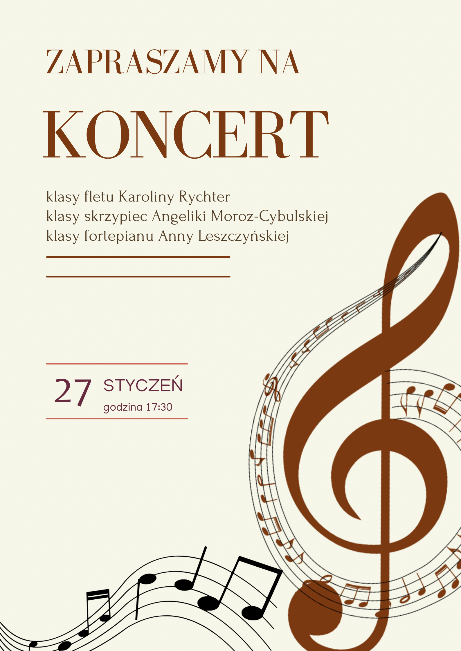 Koncert uczniów klas fletu, fortepianu i skrzypiec