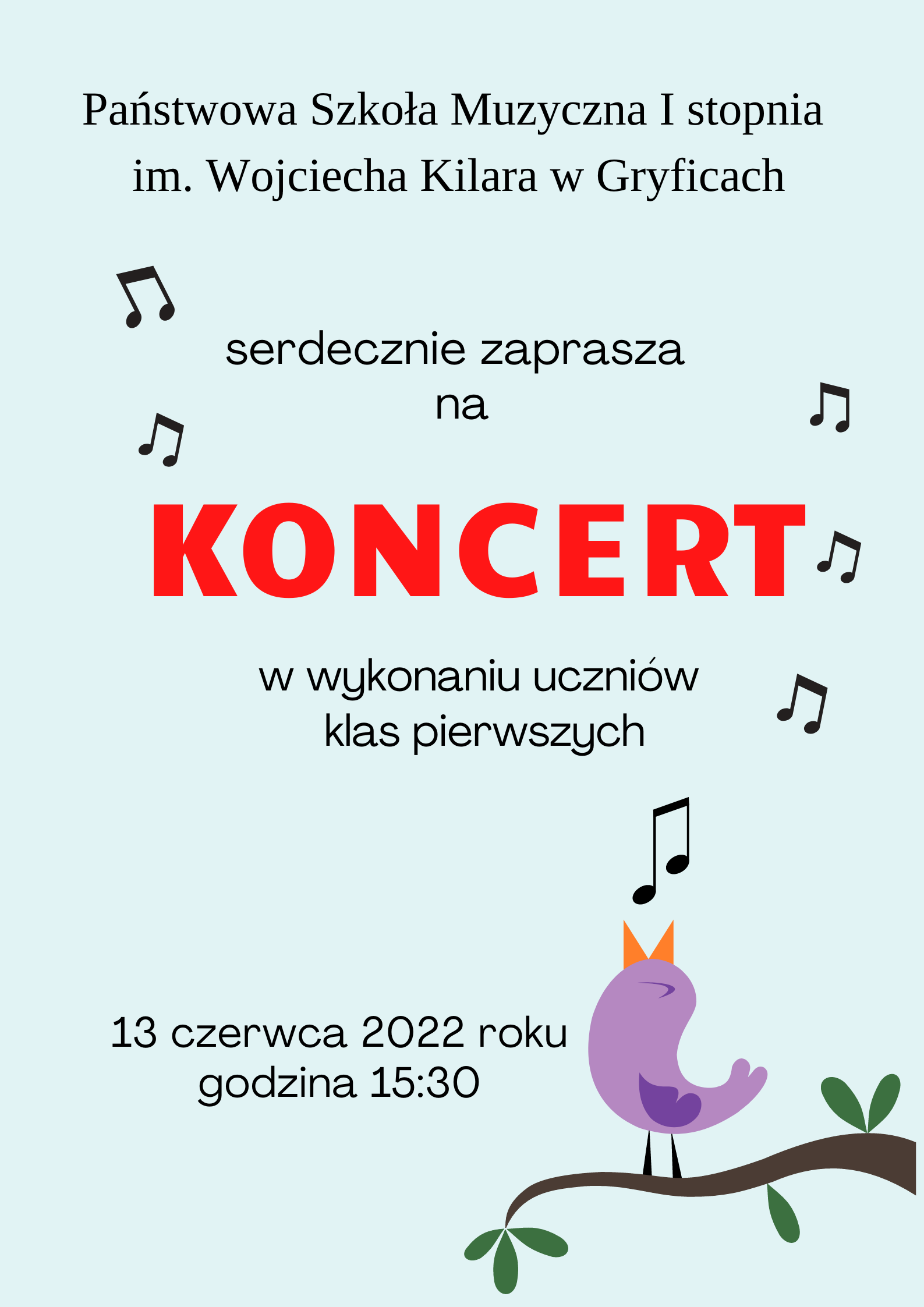 13 czerwca 2022 roku o godzinie 15:30 w auli szkolnej odbędzie się Koncert w wykonaniu uczniów klas pierwszych.
