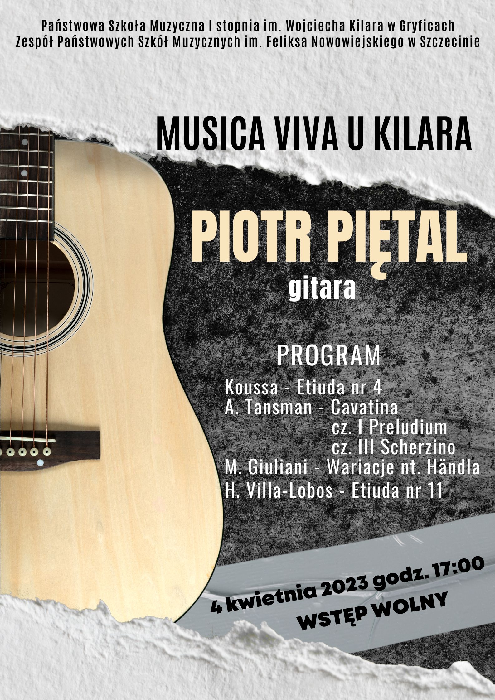 "Musica viva u Kilara" - recital gitarowy Piotra Piętala 4.04.2023, godz. 17:00