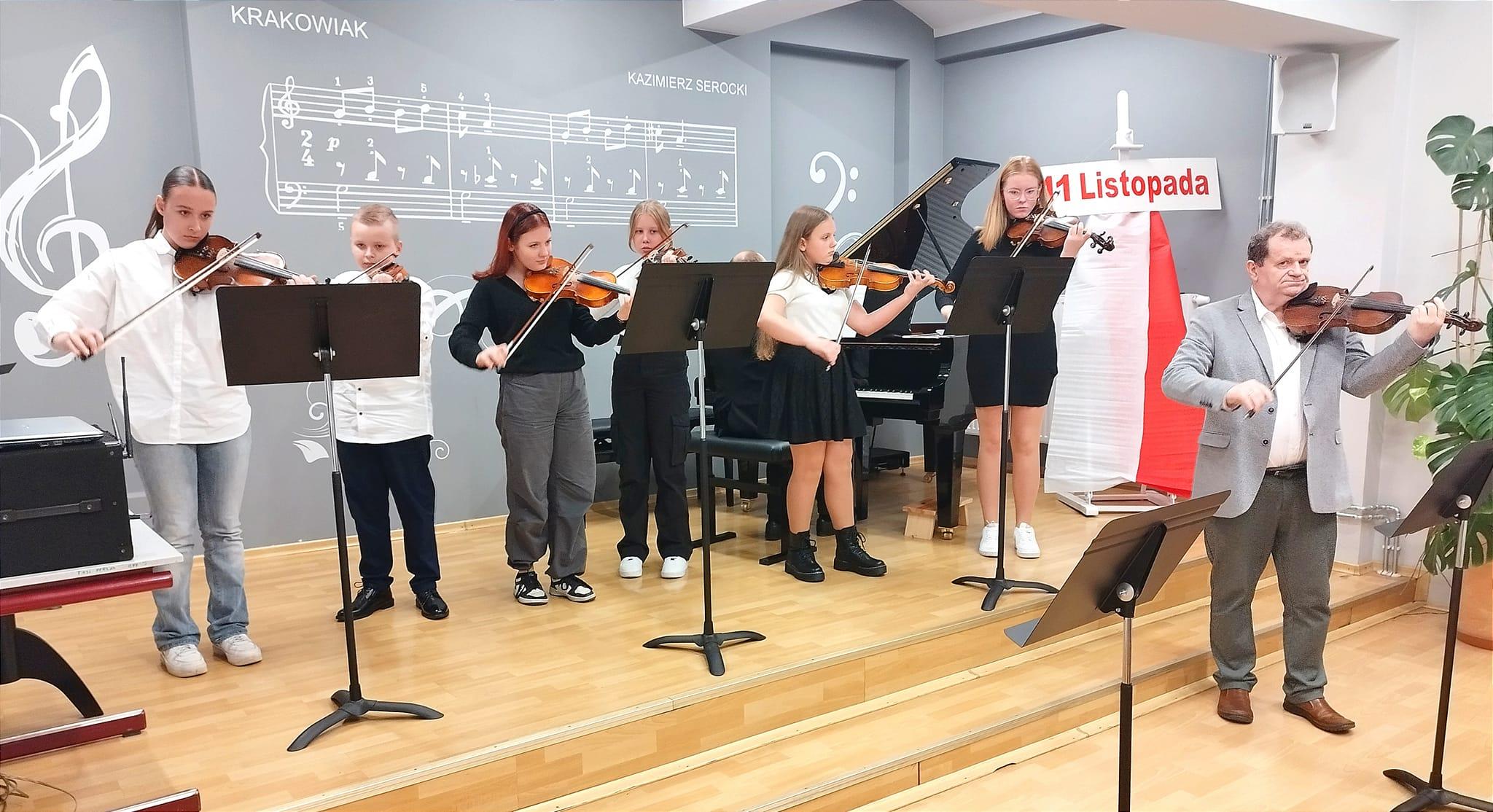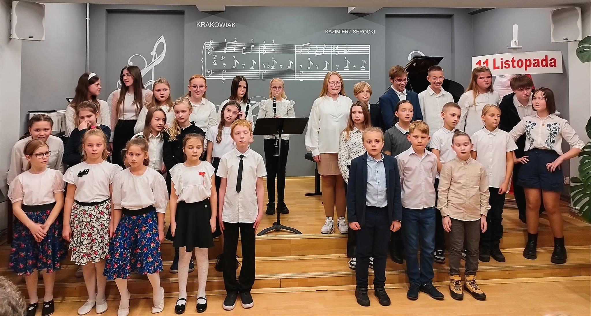 Akademia z okazji Dnia Odzyskania Niepodległości 11 listopada. Samorząd szkolny pracujący pod kierunkiem Magdaleny Hukajło przygotował akademię. Dziewczyny z Samorządu przygotowały program artystyczny, wiersze patriotyczne, rys historyczny. Zespół rytmiczny pod opieką Małgorzaty Góralczyk przygotował taniec. Chór szkolny prowadzony przez Alberta Bezdziczka razem z triem klarnetowym pod kierunkiem Józefa Storto przygotowali pieśń. Zespoły skrzypcowe Andrzeja Gila przygotował wiązankę pieśni narodowych. Piękna uroczystość