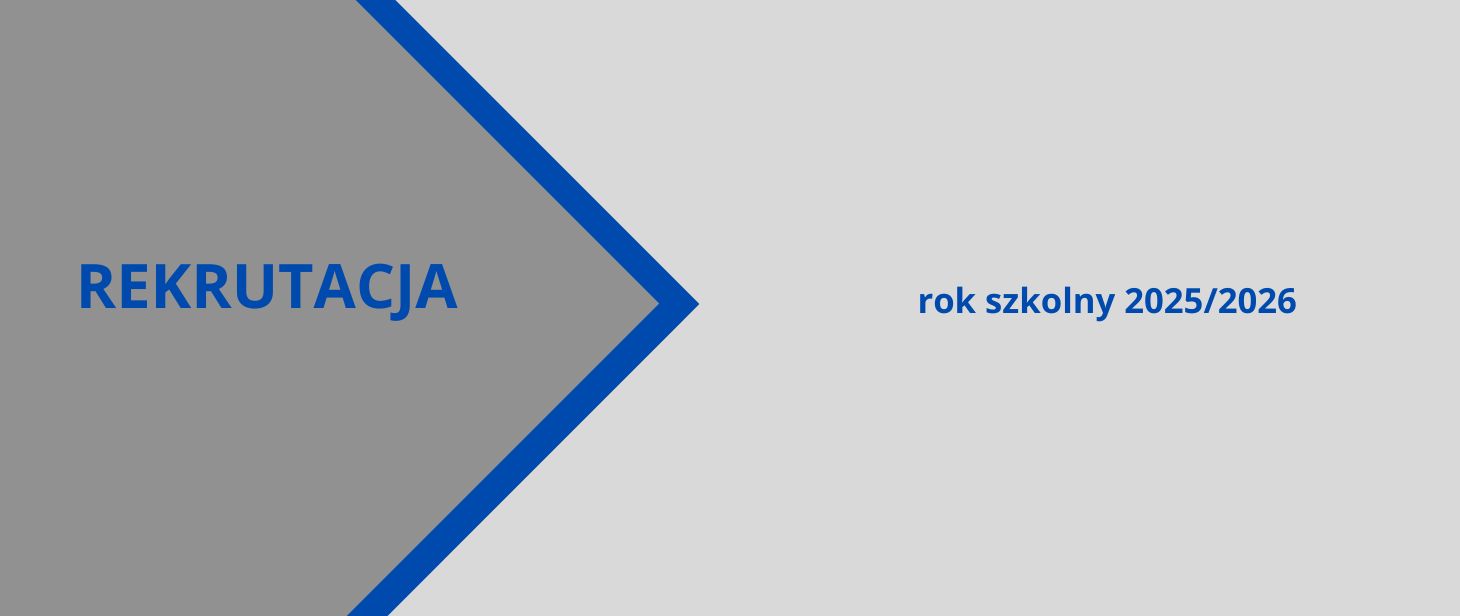 plakat z napisem rekrutacja rok szkolny dwa tysiące dwadzieścia pięć dwa tysiące dwadzieścia sześć w kolorze niebieskim na szarym tle