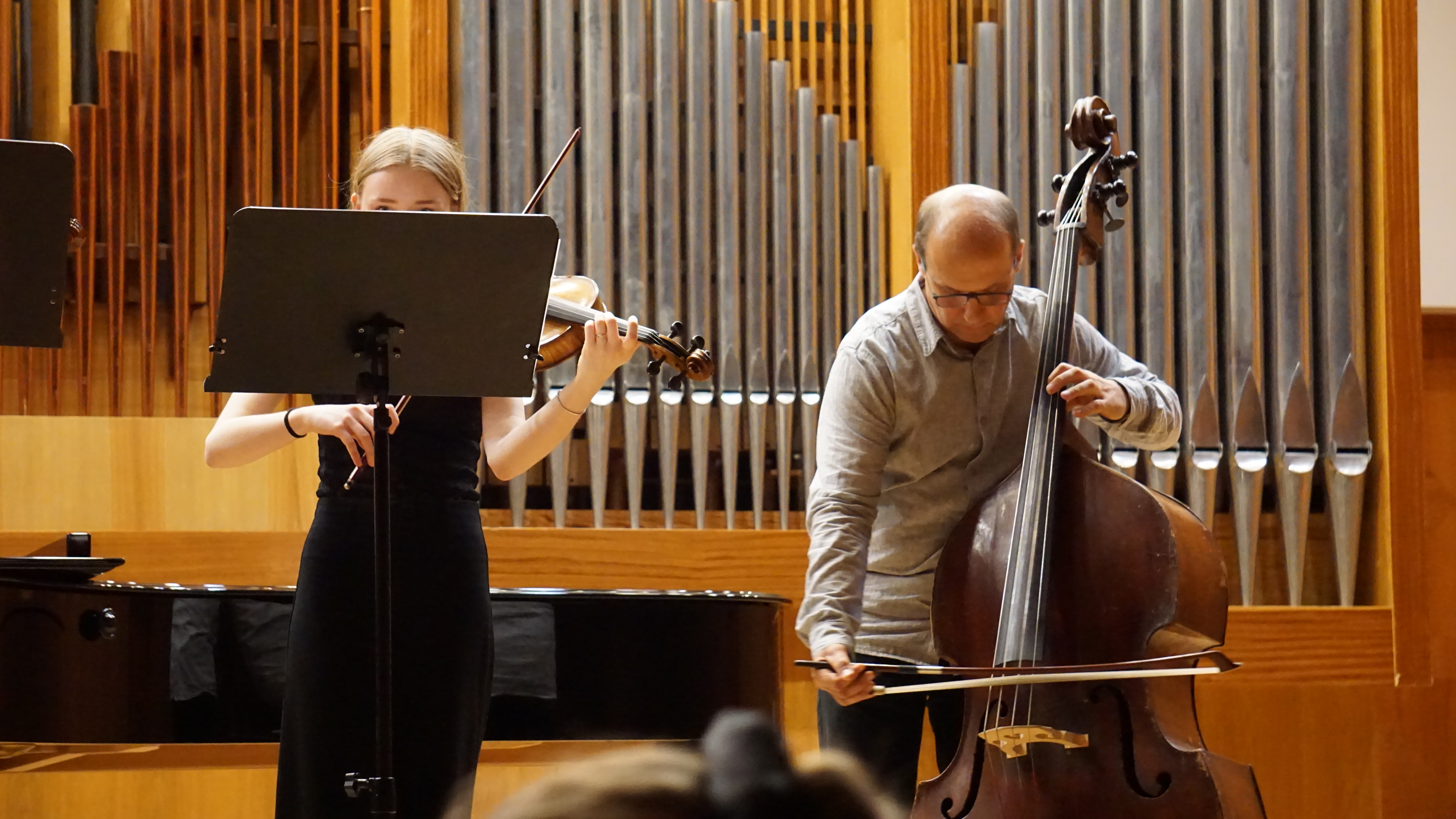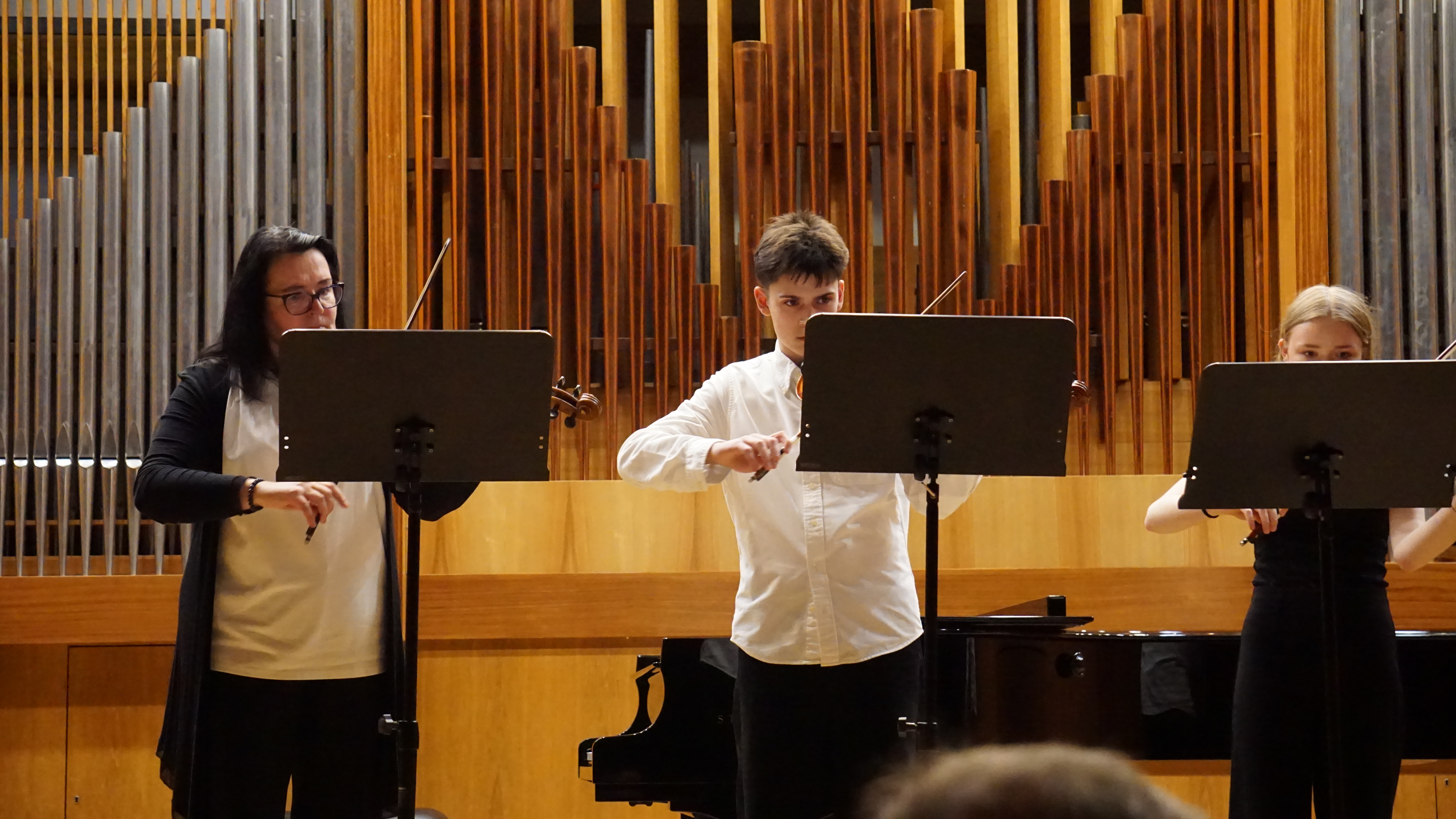 24.11.2025r. o 17:30 w Sali Koncertowej im. Ireny Dubiskiej odbył się wyjątkowy koncert międzysekcyjny, podczas którego zaprezentowali się uczniowie z klas skrzypiec, altówki, kontrabasu, waltorni i fortepianu. Na scenie wystąpili młodzi artyści z I i II stopnia, przygotowani przez pedagogów: Grażynę Witkowską, Izabelę Dudę, Barbarę Świeczkowską, Elżbietę Bednarek, Joannę Koralewską, Radosława Mantheya, Michała Kurczewskiego oraz Kacpra Gawrońskiego. Akompaniowali: Aleksandra Szamocka, Witold Kawalec i Kacper Gawroński. Gratulujemy wszystkim uczniom pięknych występów!