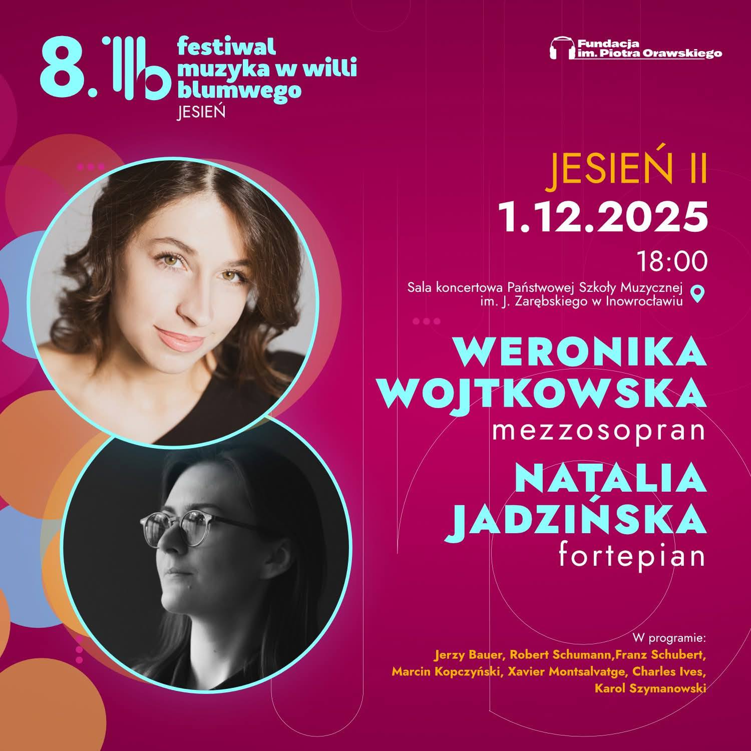 Zapraszamy serdecznie w poniedziałek 1.12.2025 o godz. 18-ej do Sali Koncertowej w Państwowa Szkoła Muzyczna w Inowrocławiu na koncert w ramach 8. Festiwal Muzyka w Willi Blumwego