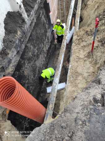 W pierwszym etapie realizacji inwestycji zostały wykonane: prace nawierzchniowe towarzyszące budowlane – rozebranie i następnie odbudowa nawierzchni, krawężników, wykonanie izolacji cieplnych i przeciwdźwiękowych, wykonanie ścianki berlińskiej, roboty ziemne wykonywane ładowarkami kołowymi, wykopy ręczne, transport urobku, wykonanie nakładów uzupełniających, złóż filtracyjnych, rurociągów, studzienek drenażowych.
