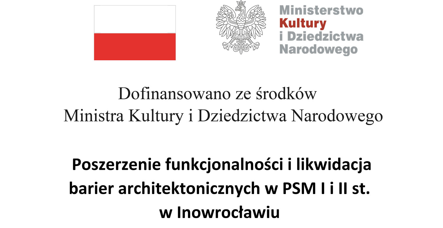 Szkoła Muzyczna I i II stopnia w Inowrocławiu otrzymała kwotę 320000 zł dofinansowania w ramach programu Infrastruktura szkolnictwa artystycznego ze środków finansowych Ministra Kultury i Dziedzictwa Narodowego pochodzących z Funduszu Promocji Kultury – państwowego funduszu celowego na realizację zadania: Poszerzenie funkcjonalności i likwidacja barier architektonicznych w PSM I i II st. w Inowrocławiu.
