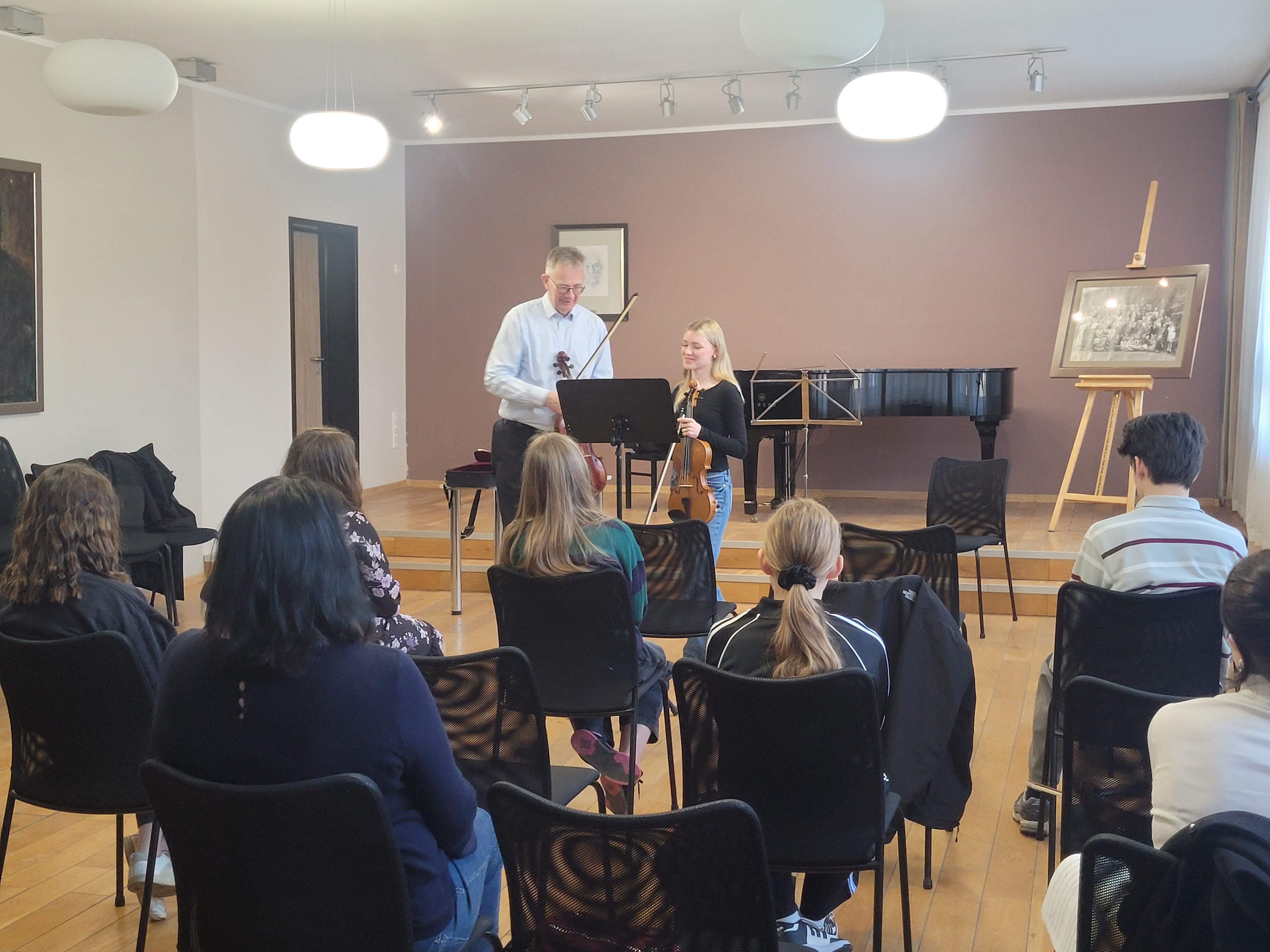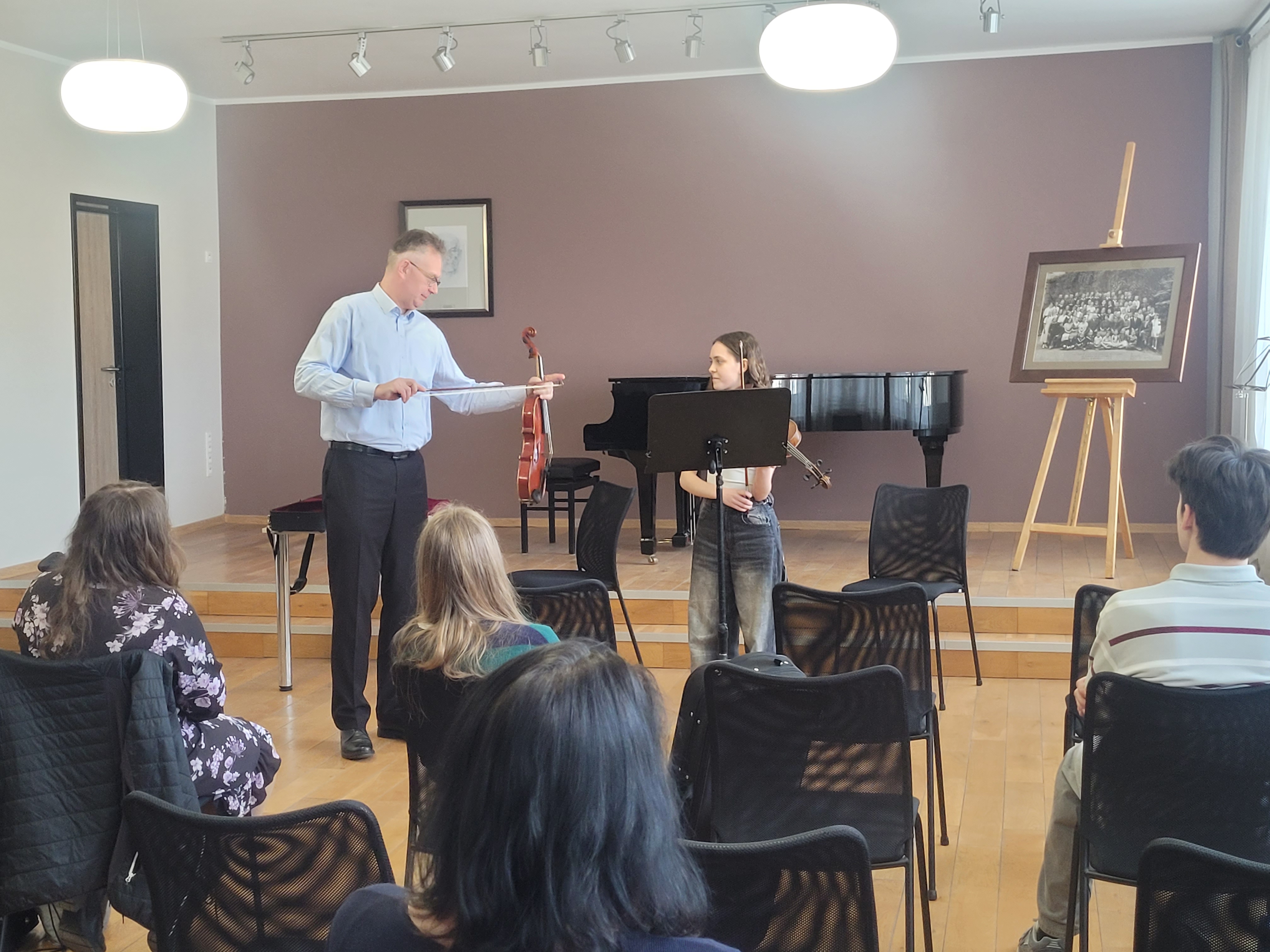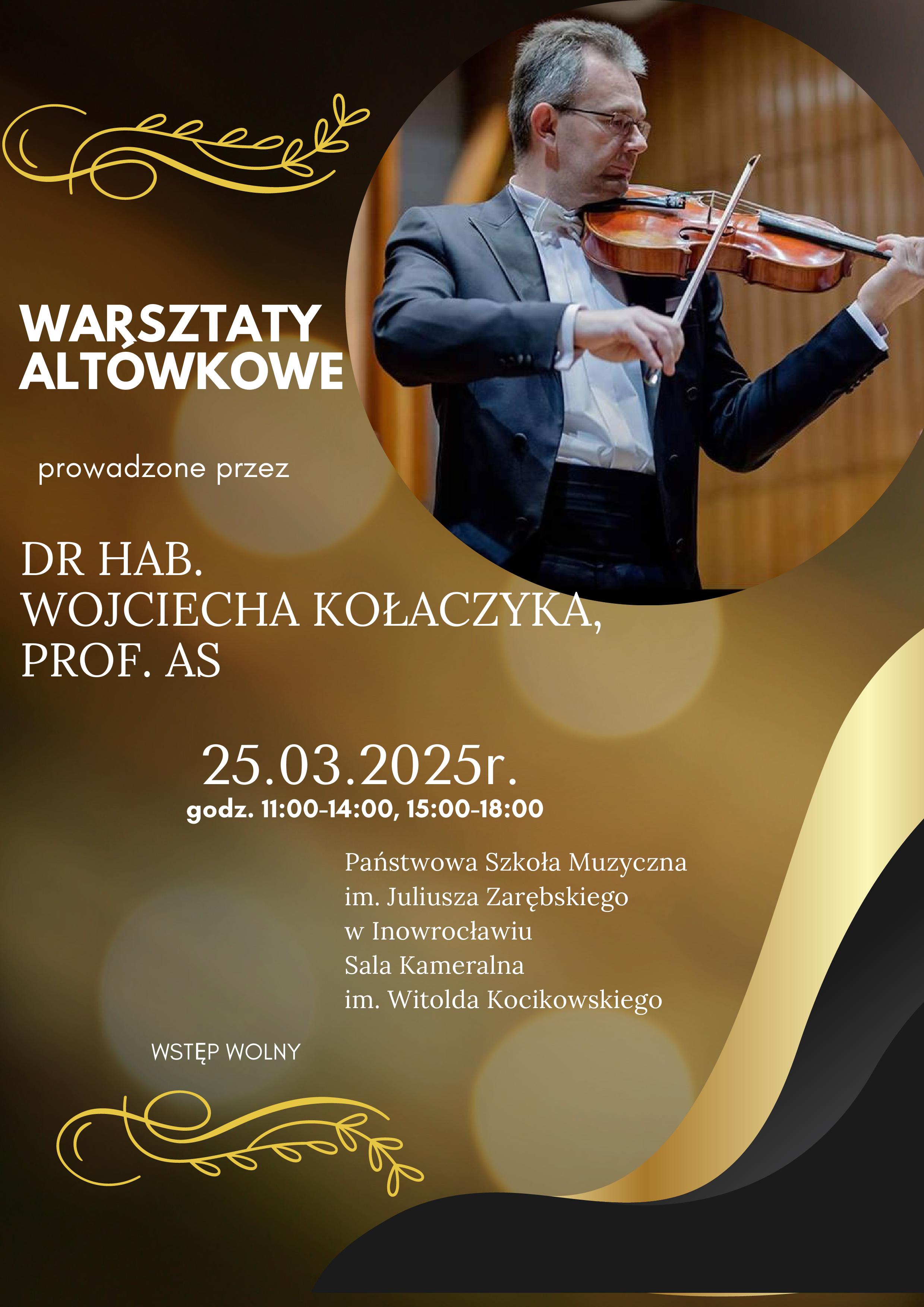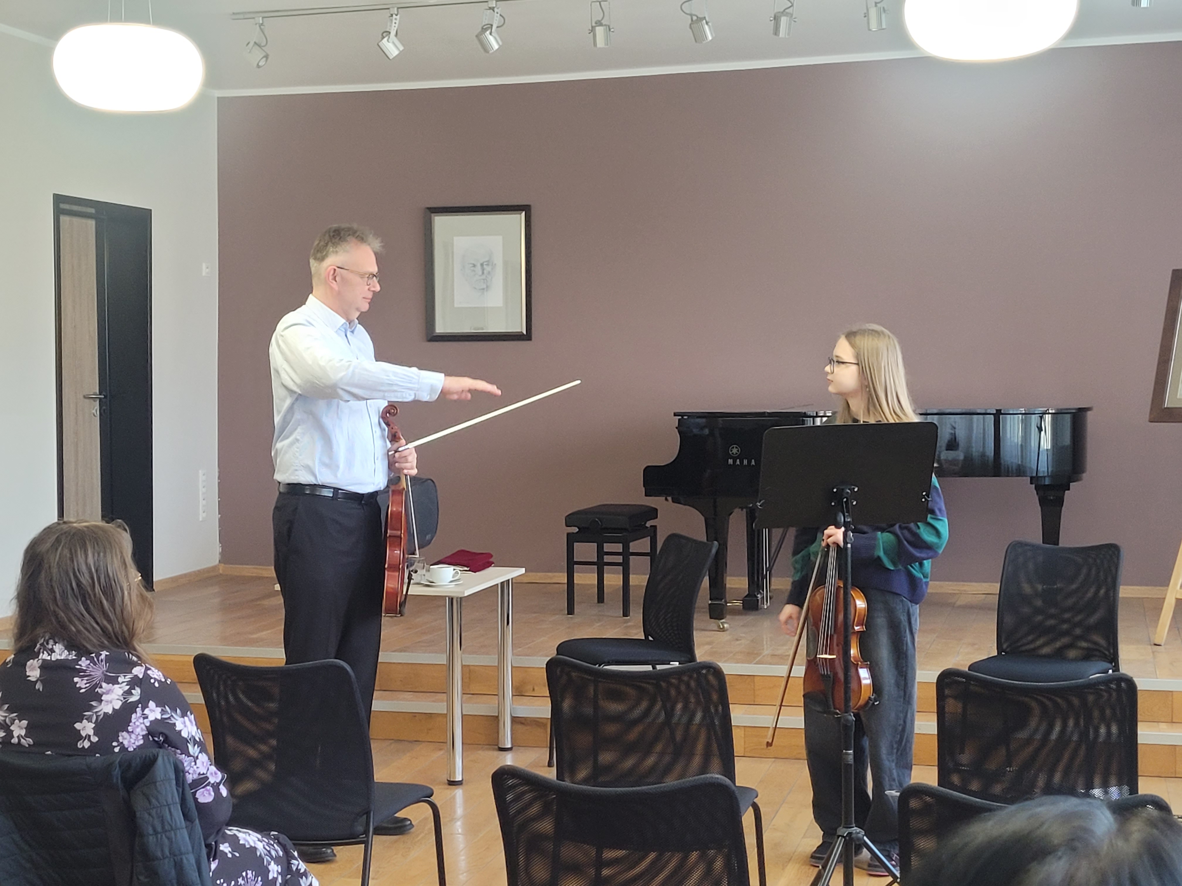 We wtorek 25 marca w Sali Kameralnej im. Witolda Kocikowskiego naszej Szkoły Muzycznej odbyły się warsztaty altówkowe, które poprowadził dr hab. Wojciech Kołaczyk, prof. AS, Kierownik Katedry Instrumentów Smyczkowych i Kameralistyki Wydziału Instrumentalnego Akademii Sztuki w Szczecinie oraz koncertmistrz Orkiestry Symfonicznej Filharmonii Pomorskiej w Bydgoszczy. 🎵