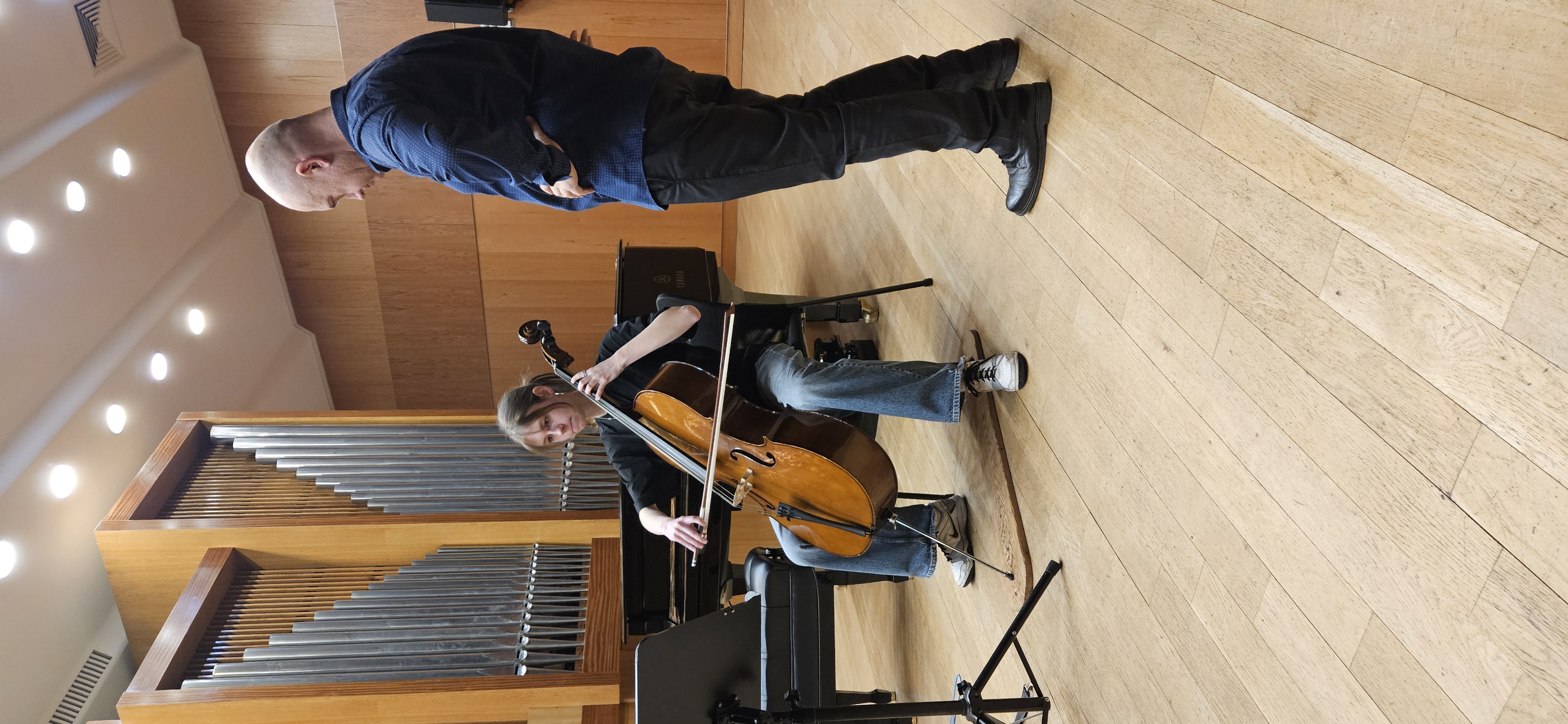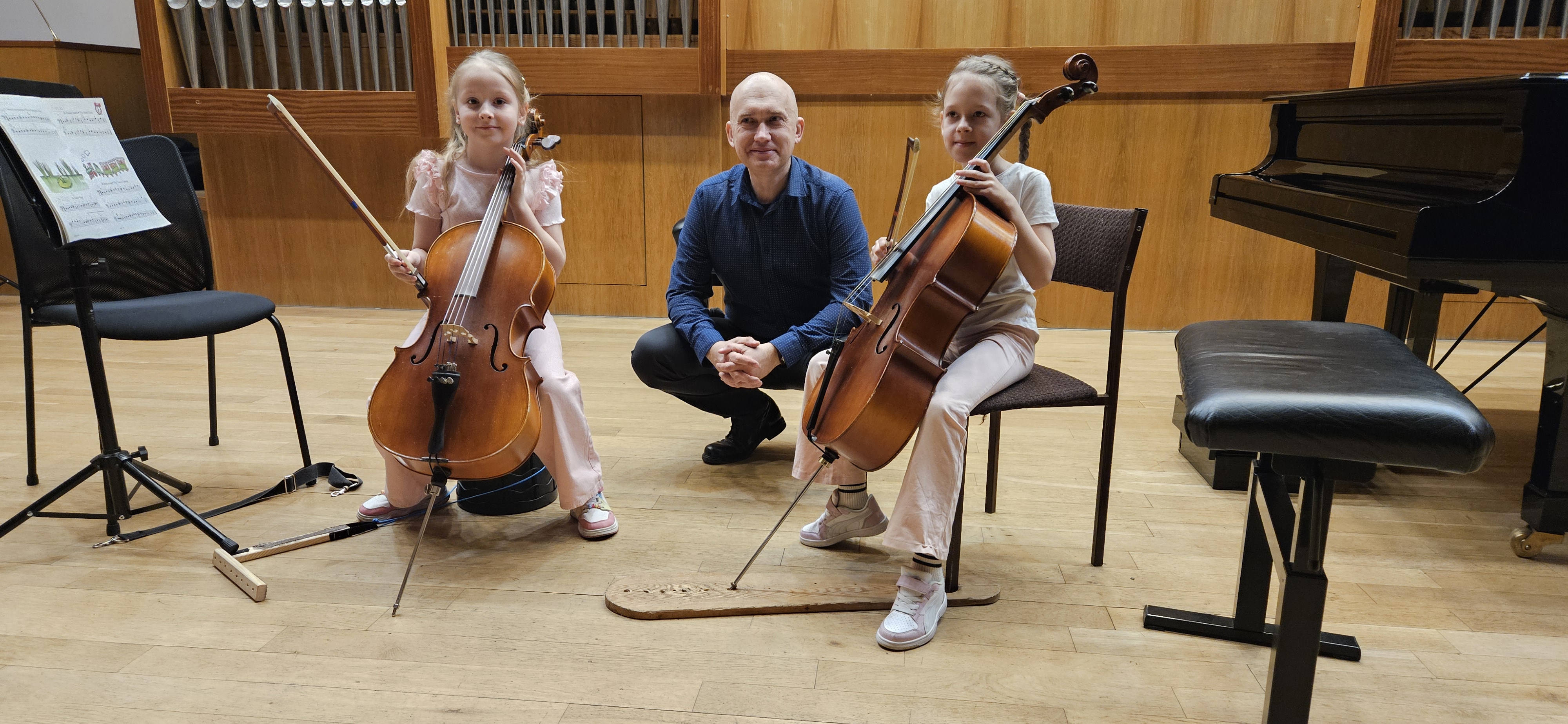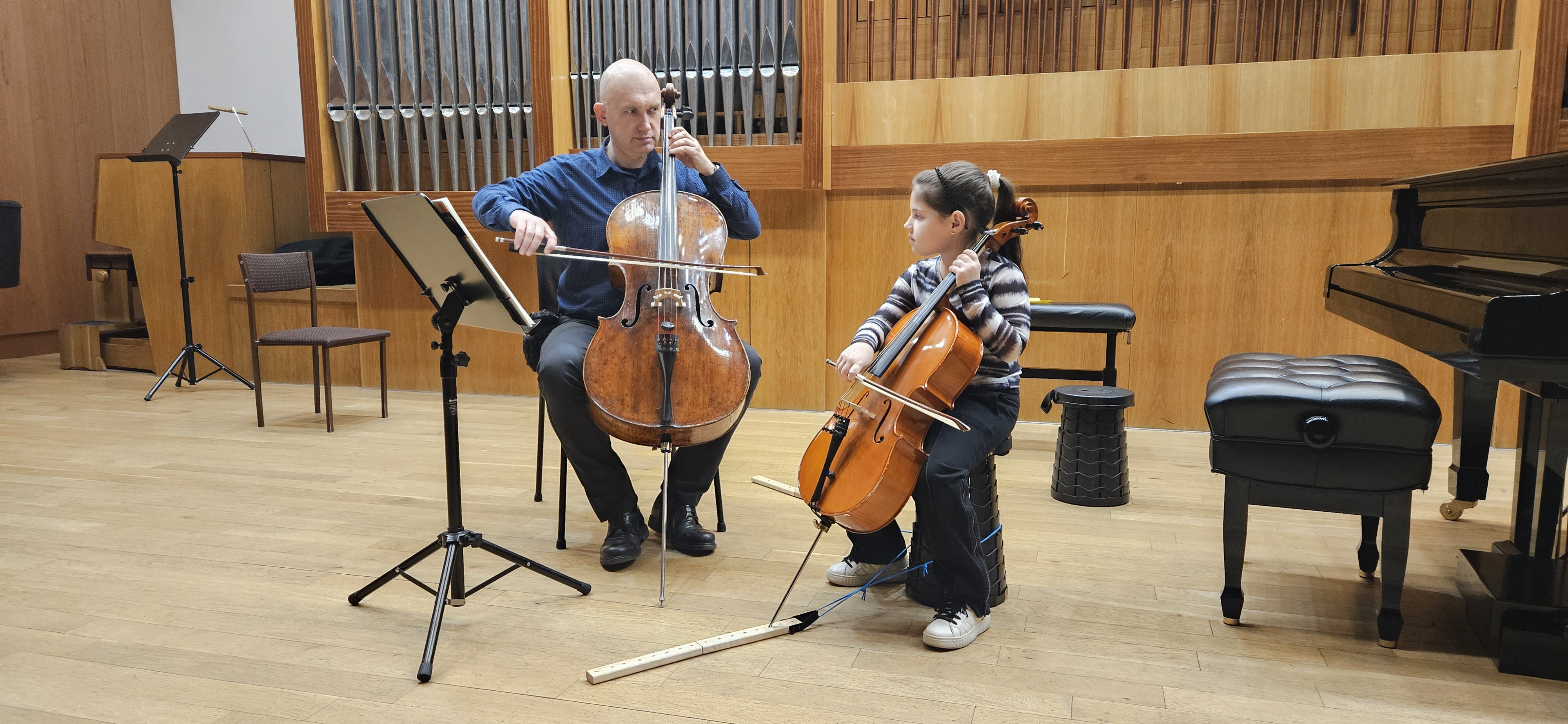 Dnia 20.03.25 r. odbyły się warsztaty wiolonczelowe prowadzone przez dr Arkadiusza Dobrowolskiego z Akademii Muzycznej w Katowicach, w których wzięli udział uczniowie z klasy p. Joanny Otmianowskiej-Siarkiewicz i p. Wojciecha Okurowskiego.