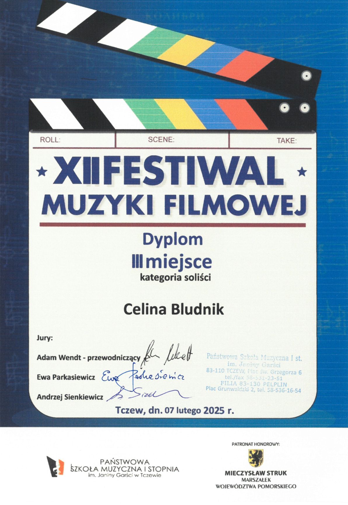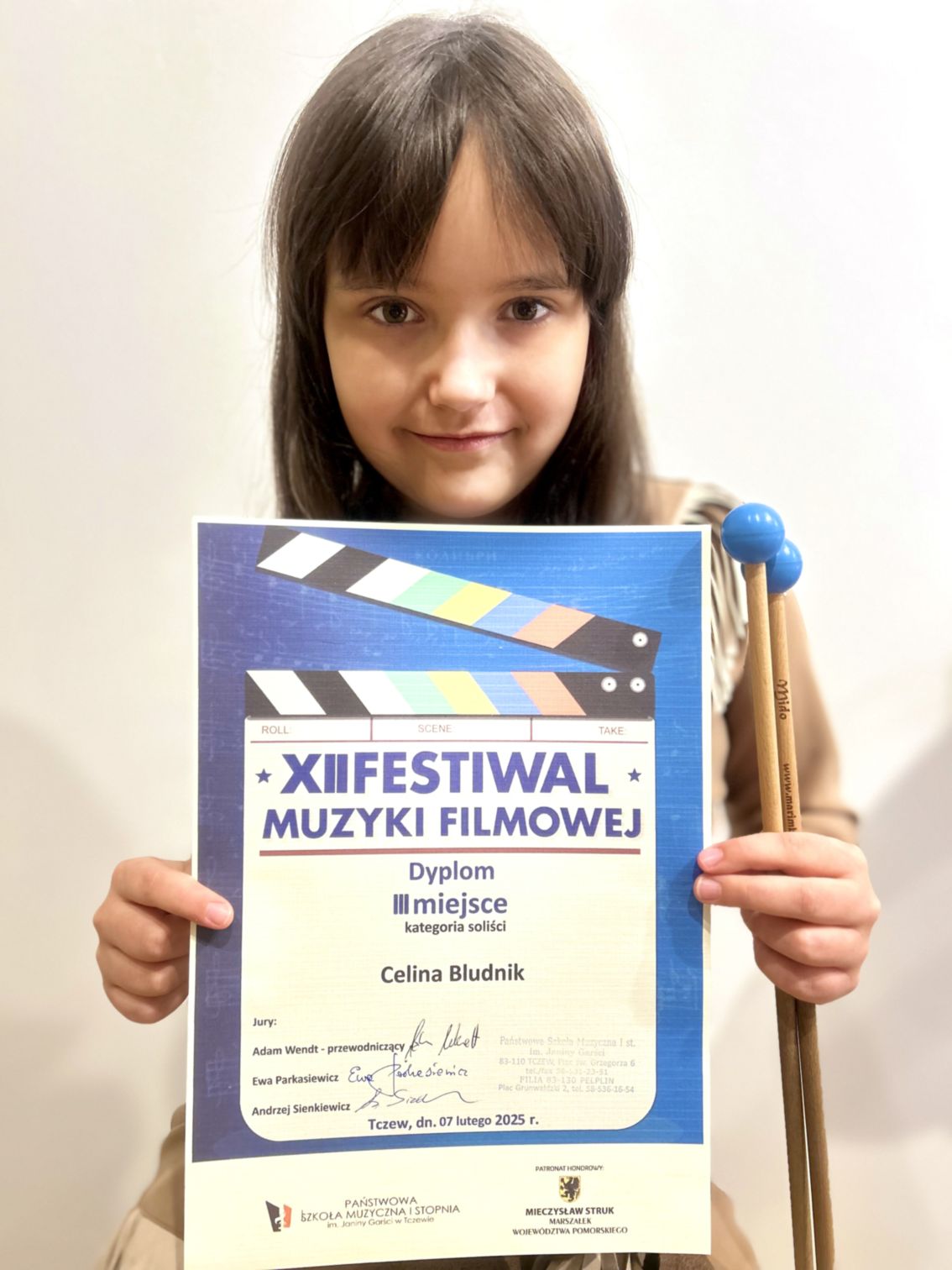 Podczas XII Festiwalu Muzyki Filmowej w Tczewie laureatką III miejsca w kategorii soliści została Celina Bludnik, uczennica klasy perkusji Pana Marcina Rausza.