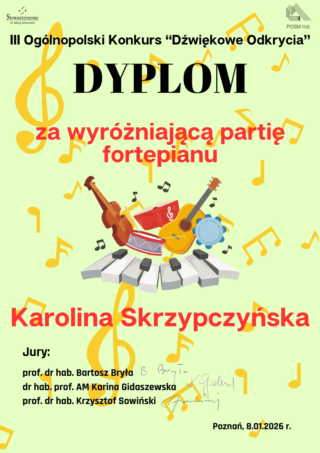 Konkurs odbył się w Poznaniu, 8 stycznia 2026 roku, a jego organizatorem było Stowarzyszenie im. Jadwigi Kaliszewskiej we współpracy z POSM II stopnia.