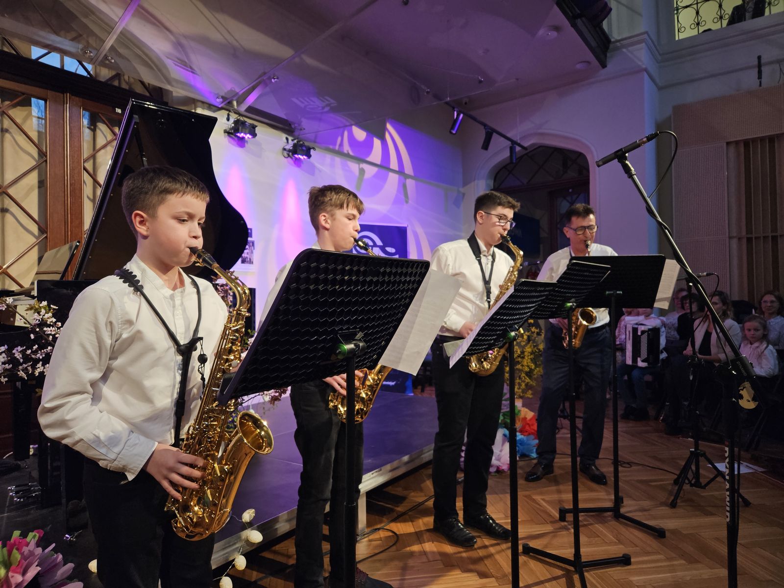 Swoje umiejętności, przy wsparciu nauczycieli, zaprezentowali uczniowie klas fortepianu, gitary, saksofonu, trąbki, klarnetu oraz akordeonu.