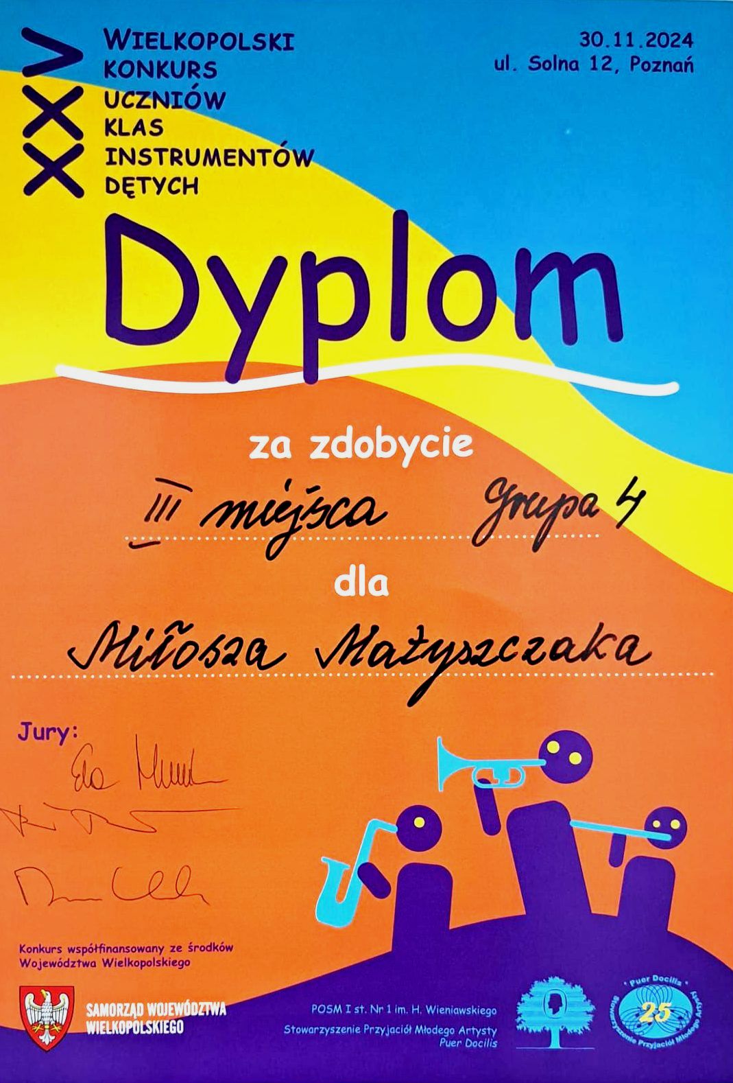 Konkurs odbywał się w dniu 30 listopada 2024 roku w Poznańskiej Ogólnokształcącej Szkole Muzycznej I stopnia nr 1 im. Henryka Wieniawskiego.