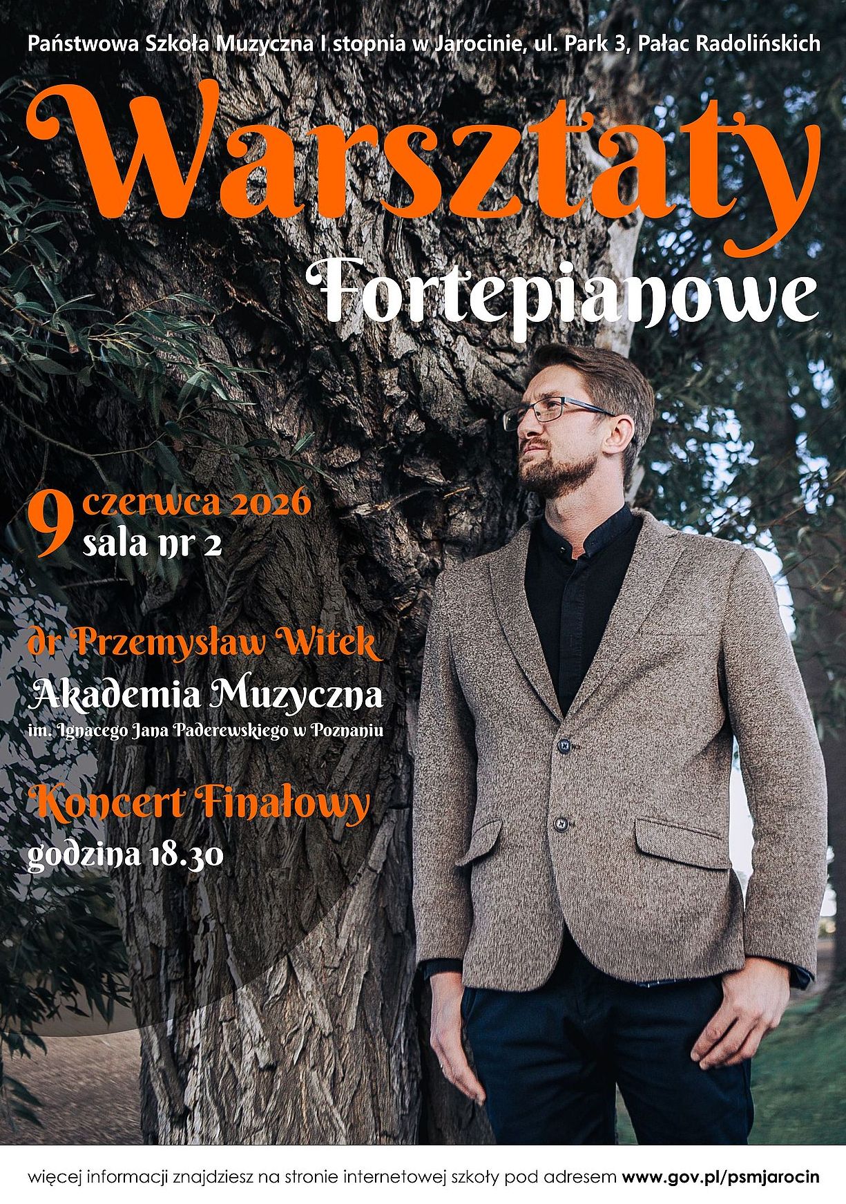W dniu 9 czerwca 2026 roku w holu Pałacu Radolińskich o godzinie 18.30 odbędzie się uroczysty koncert podsumowujący warsztaty fortepianowe z dr Przemysławem Witkiem, podczas którego wystąpią uczniowie PSM I stopnia w Jarocinie.