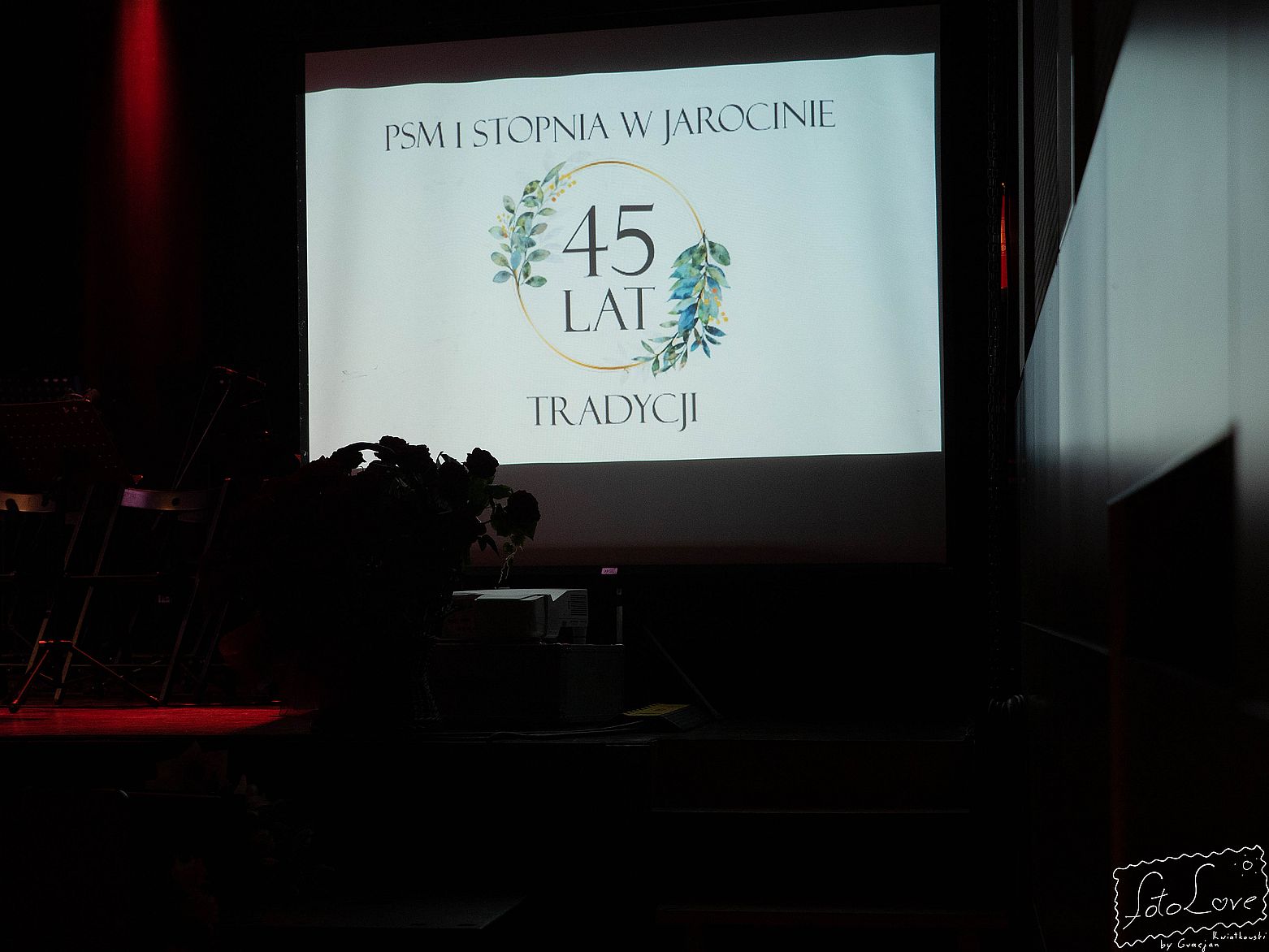 O godzinie 17.30 koncert rozpoczął się prezentacją "45-lat tradycji" z wybranymi fotografiami z kroniki szkolnej od 1977 do 2022 roku. Po filmie z przemówieniem wystąpiła Dyrektor Państwowej Szkoły Muzycznej I stopnia w Jarocinie - Pani Dorota Chłopocka.