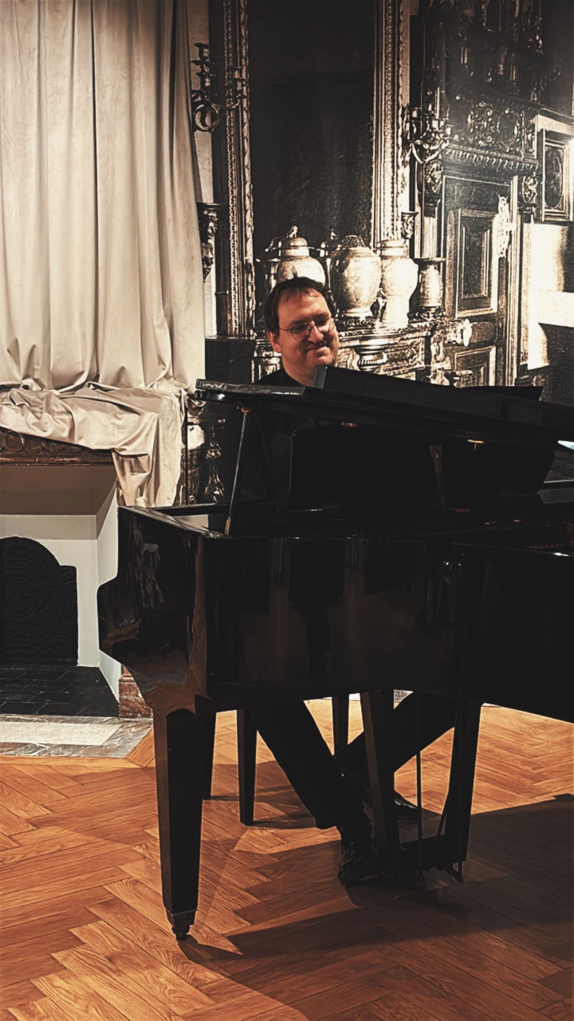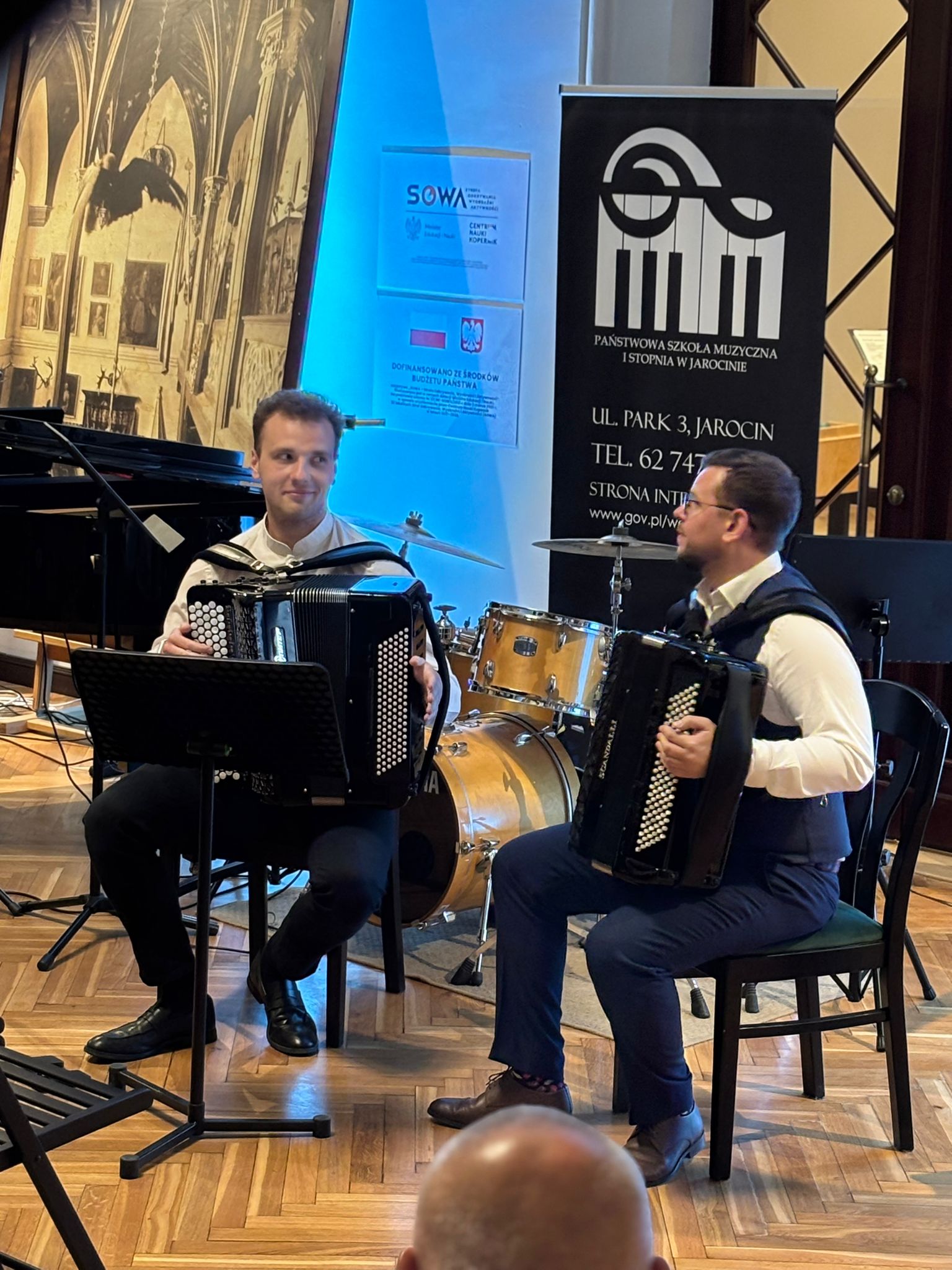 W przestrzeniach pałacowych rozbrzmiała „Muzyka paryskiej ulicy” – nastrojowe melodie wykonywane przez duet akordeonowy w składzie Piotr Paszkiewicz i Mateusz Doniec, przeniosły słuchaczy na romantyczne zaułki stolicy Francji.