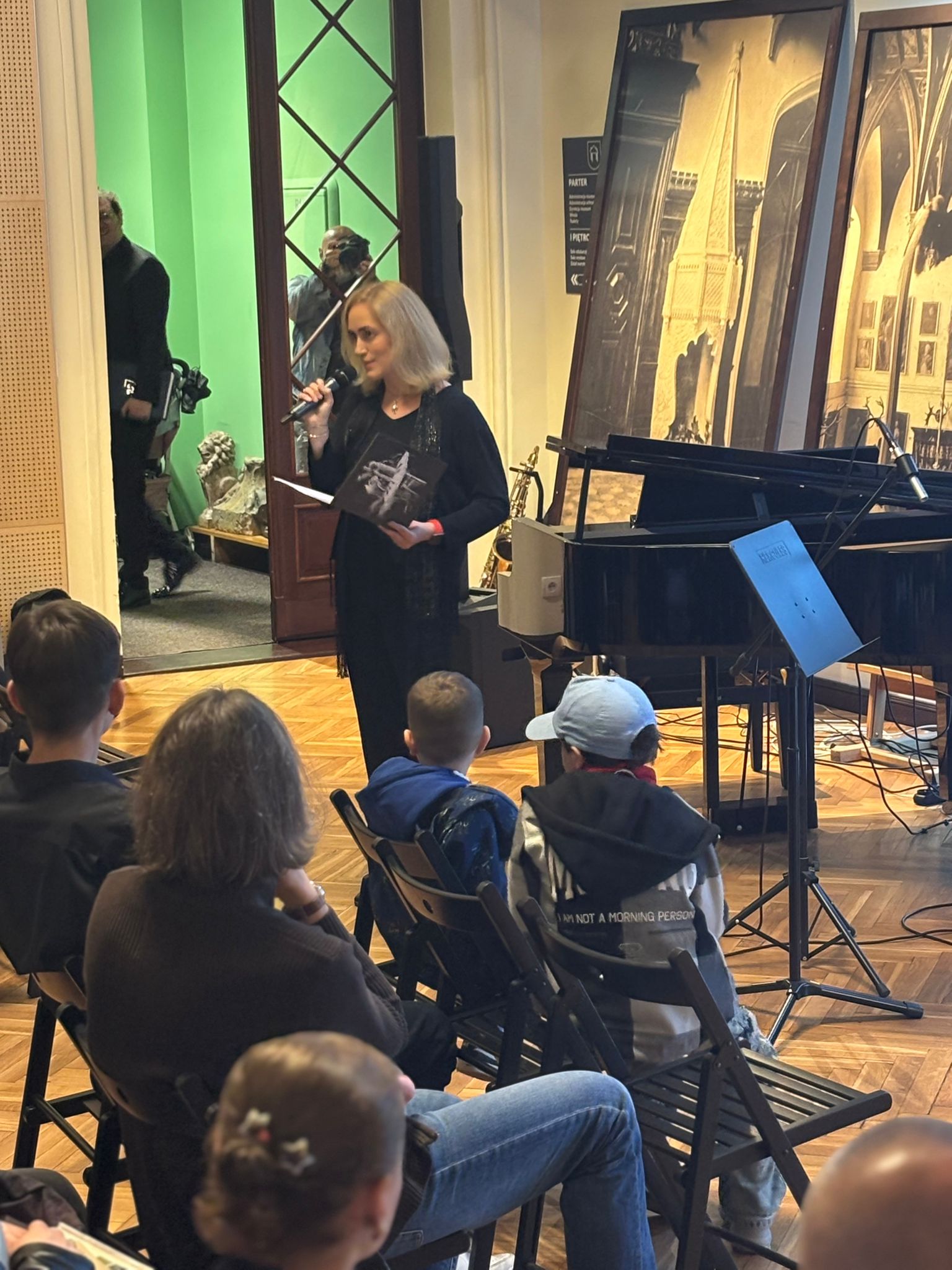 Szczególnym zainteresowaniem cieszyła się wystawa „W starym kinie” przygotowana przez Łódzkie Centrum Filmowe. Wydarzenie zostało uświetnione muzyką na żywo – przy fortepianie zasiadł nauczyciel naszej szkoły Cyprian Sekrecki, tworząc nostalgiczną atmosferę dawnych seansów filmowych.