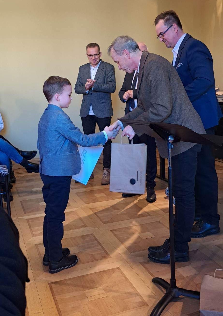 Miłosz zagrał wyśmienicie i zdobył III nagrodę w kategorii I. Laureatowi przy fortepianie towarzyszył Pan Tomasz Ratajczak.