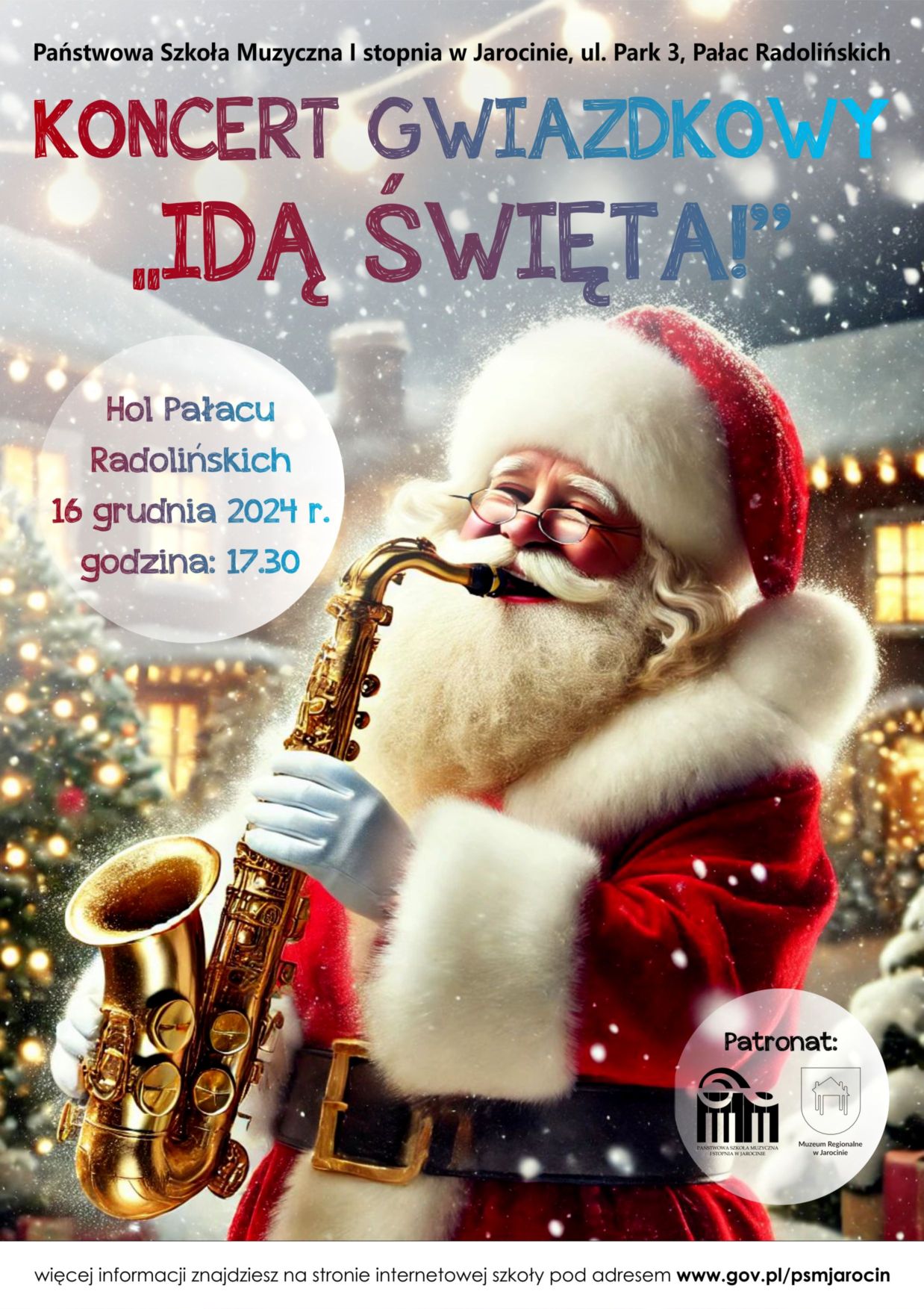 Serdecznie zapraszamy na koncert gwiazdkowy "Idą Święta!" w wykonaniu uczniów, nauczycieli i absolwentów Państwowej Szkoły Muzycznej I stopnia w Jarocinie.