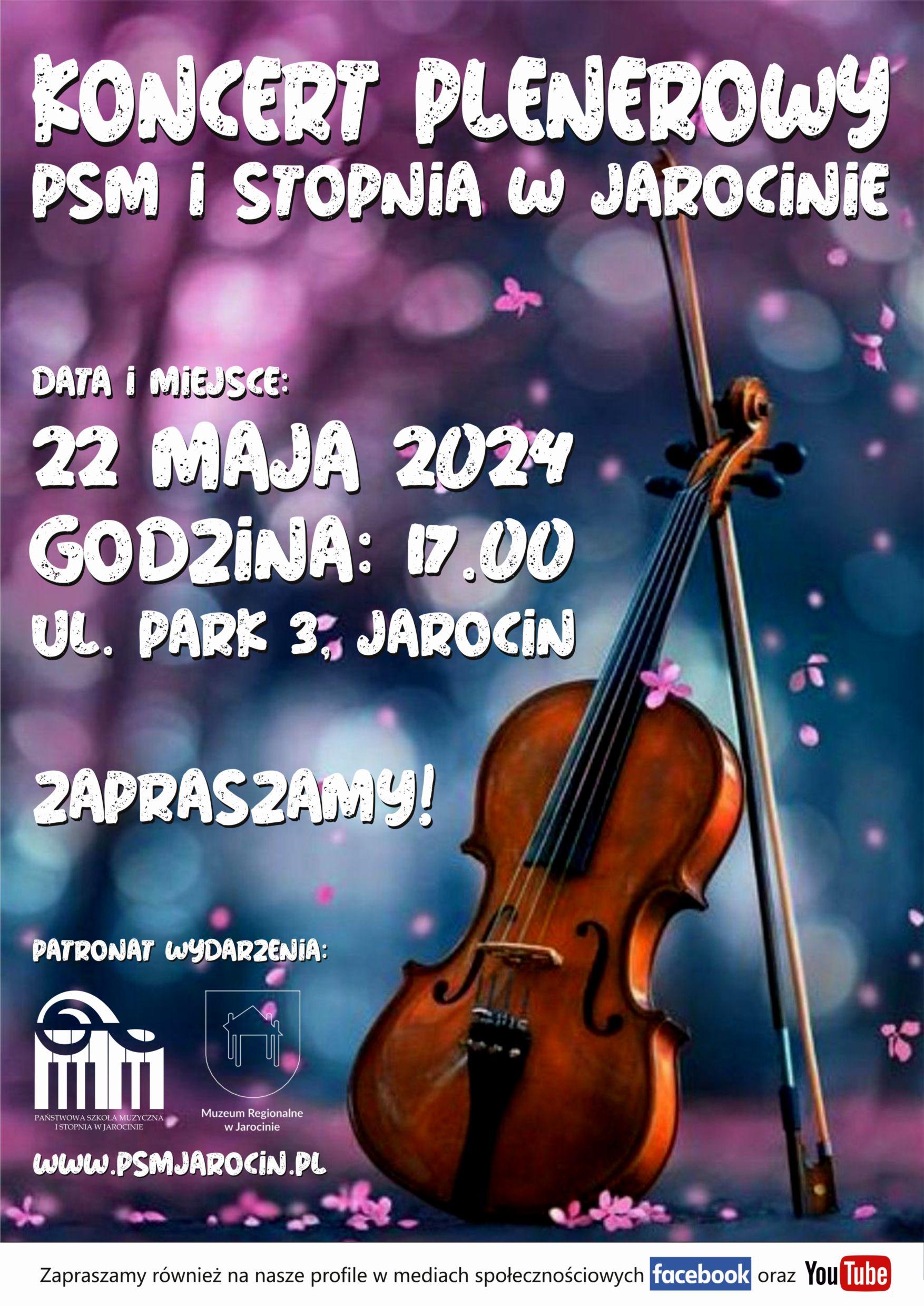 W środę 22 maja 2024 roku serdecznie zapraszamy na wyjątkowy koncert w plenerze przed Pałacem Radolińskich w wykonaniu uczniów, nauczycieli i absolwentów PSM I stopnia w Jarocinie.
