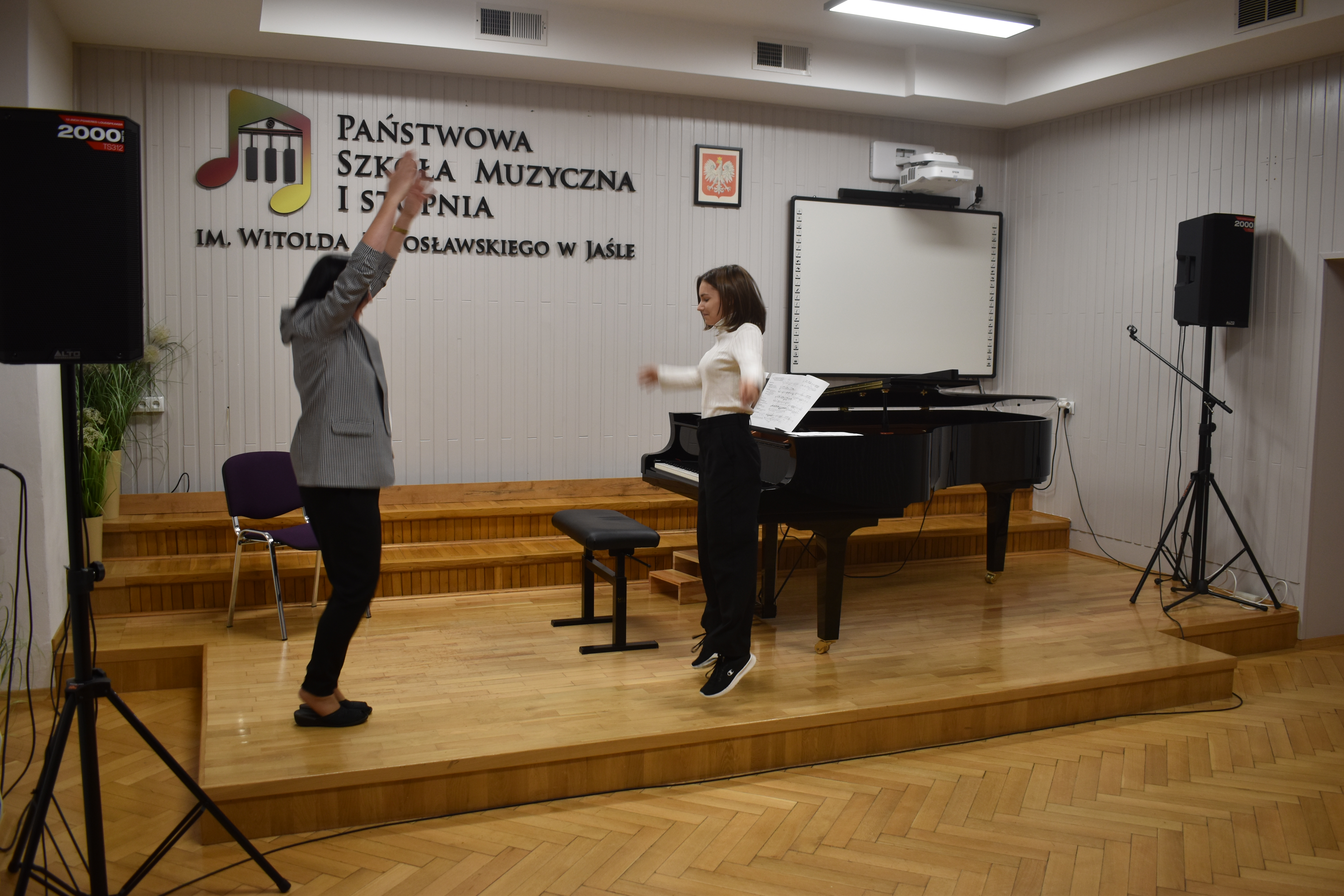 Jeśli ktoś pomyślał, że gra na fortepianie to tylko monotonne i długie ćwiczenie jest w błędzie. Podczas naszych warsztatów pianistycznych tańczyliśmy walca, śpiewaliśmy piosenki, skakaliśmy pajacyki, dyskutowaliśmy na poważne tematy i żartowaliśmy (o basenie, skokach spadochronowych, narzędziach budowlanych i wielu innych).