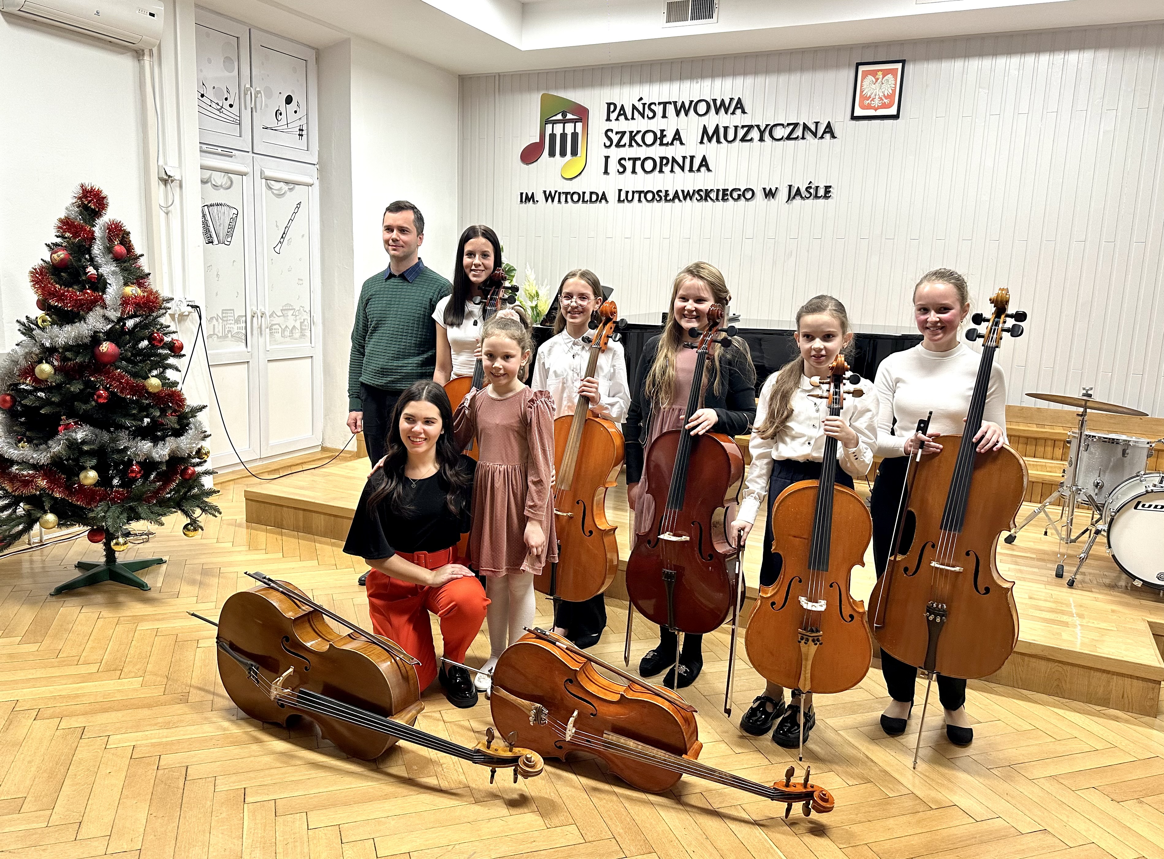 W dniu 12.12.2023 o godzinie 18:00 odbył się koncert wiolonczelistek z klasy Klaudii Borowiec-Wyrazik. Każda z uczennic zaprezentowała jeden utwór w duecie z pianistą mgr Pawłem Skowrońskim lub z akompaniamentem drugiej wiolonczeli, razem ze swoją nauczycielką. Niespodzianką był duet wiolonczelowy - Ava Marczyńska oraz Marlena Szot, które na zakończenie owego wieczoru wykonały kolędę „Dzisiaj w Betlejem”. Serdecznie dziękujemy Dyrekcji oraz Publiczności za obecność i wsparcie podczas tego ważnego dla całej klasy wydarzenia oraz z wielką radością zapraszamy na kolejne popisy, również innych klas.