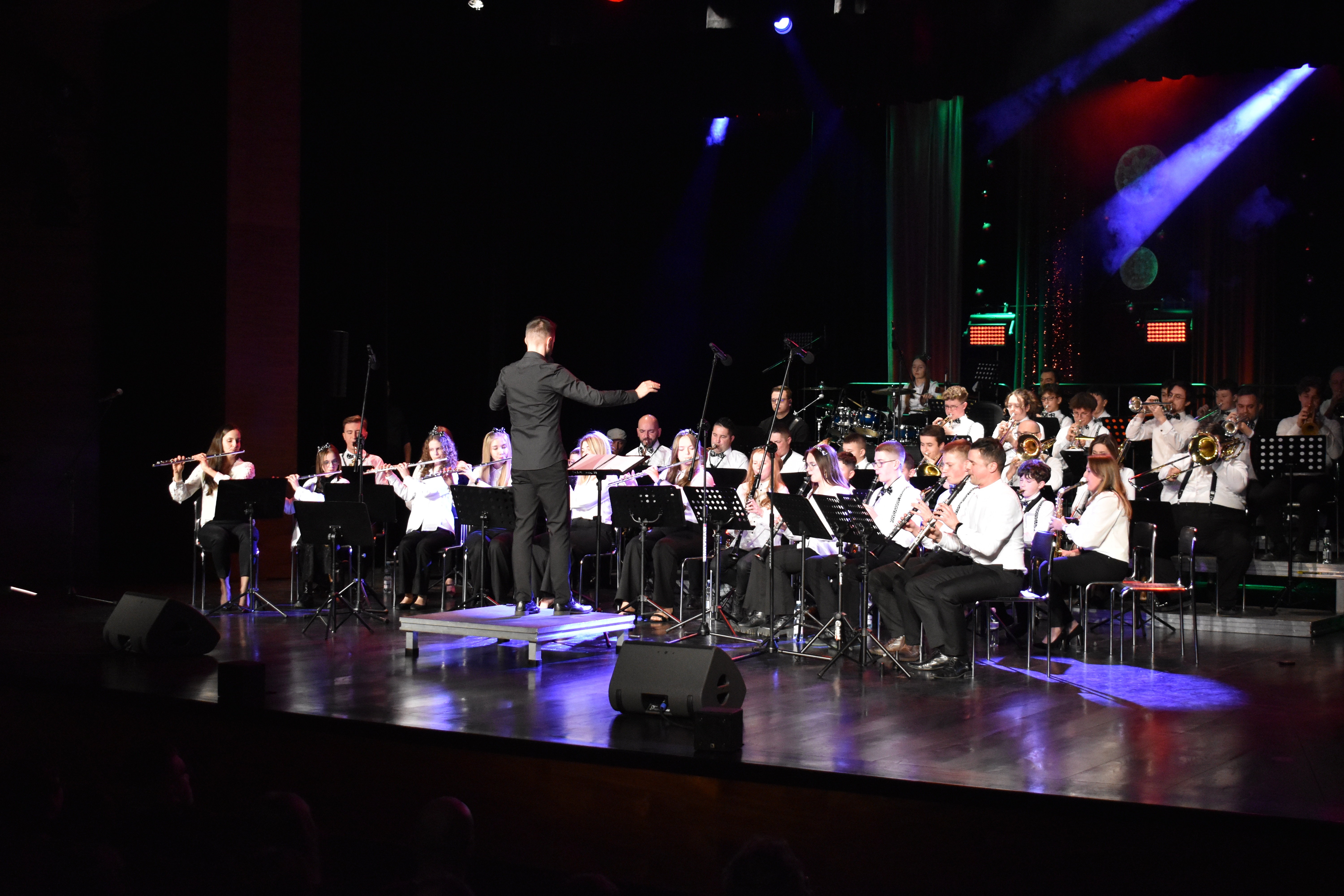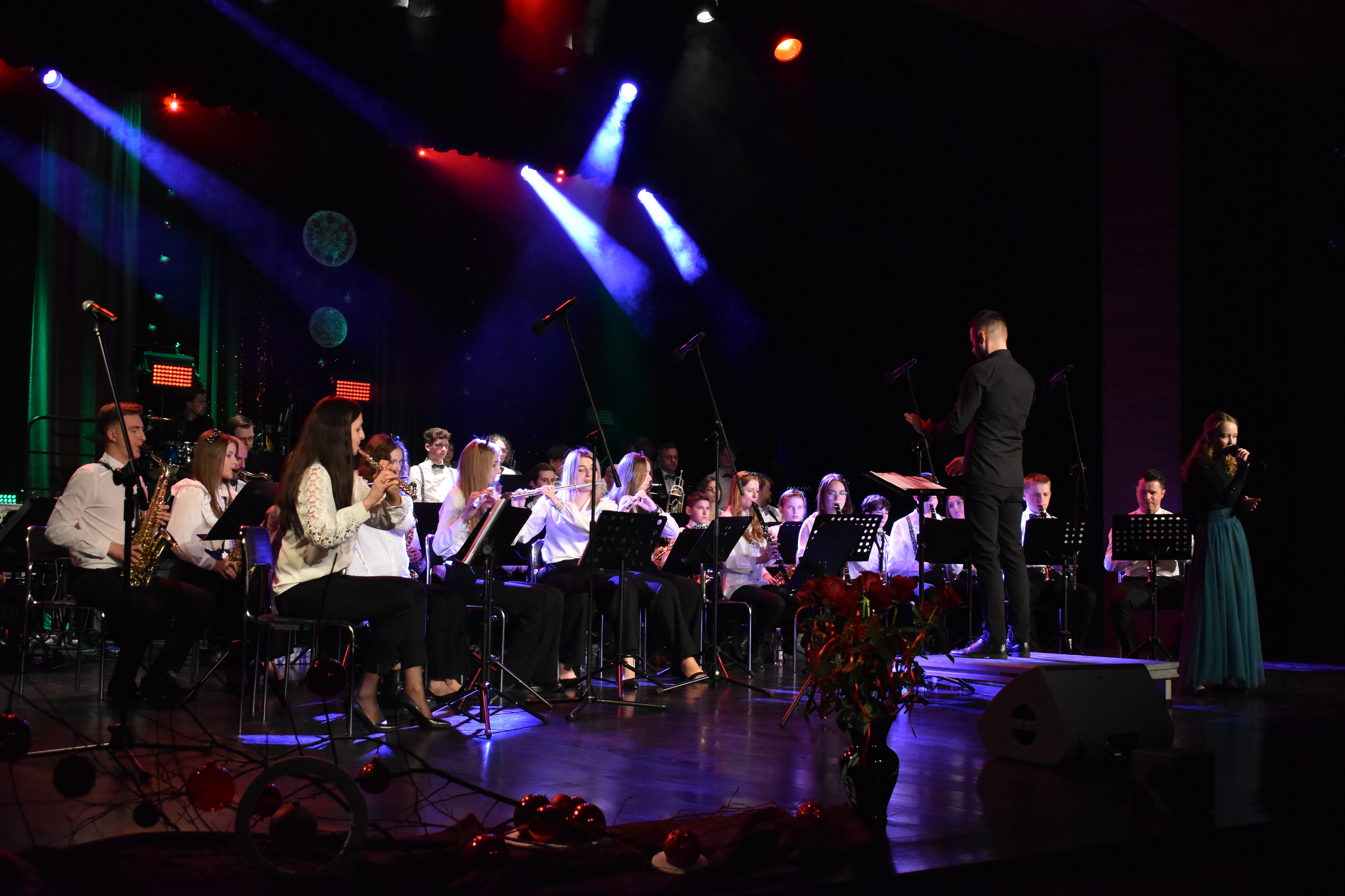 Po muzycznych podróżach orkiestry smyczkowej, do grona kolędników dołączyli kolejni - a było ich nie tuzin czy dwa - a cała kopa (wszakże o tradycji ludowej tutaj mowa). Otóż, na scenie zameldowała się Młodzieżowa Orkiestra Dęta, Państwowej Szkoły Muzycznej I stopnia im. Witolda Lutosławskiego w Jaśle, Prywatnej Szkoły Muzycznej I stopnia w Jaśle oraz Prywatnej Szkoły Muzycznej II stopnia w Jaśle, pod dyrekcją Piotra Dudy.