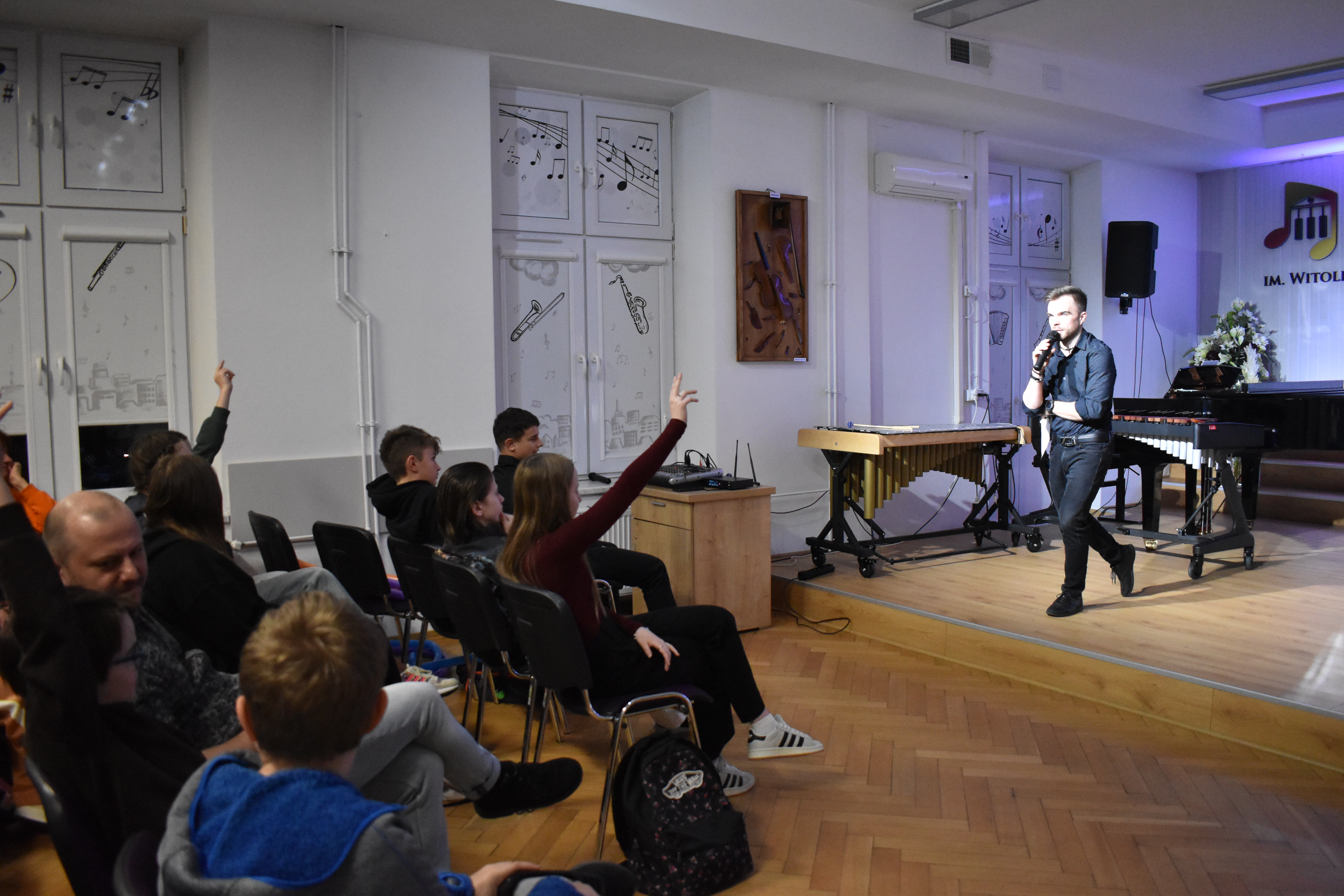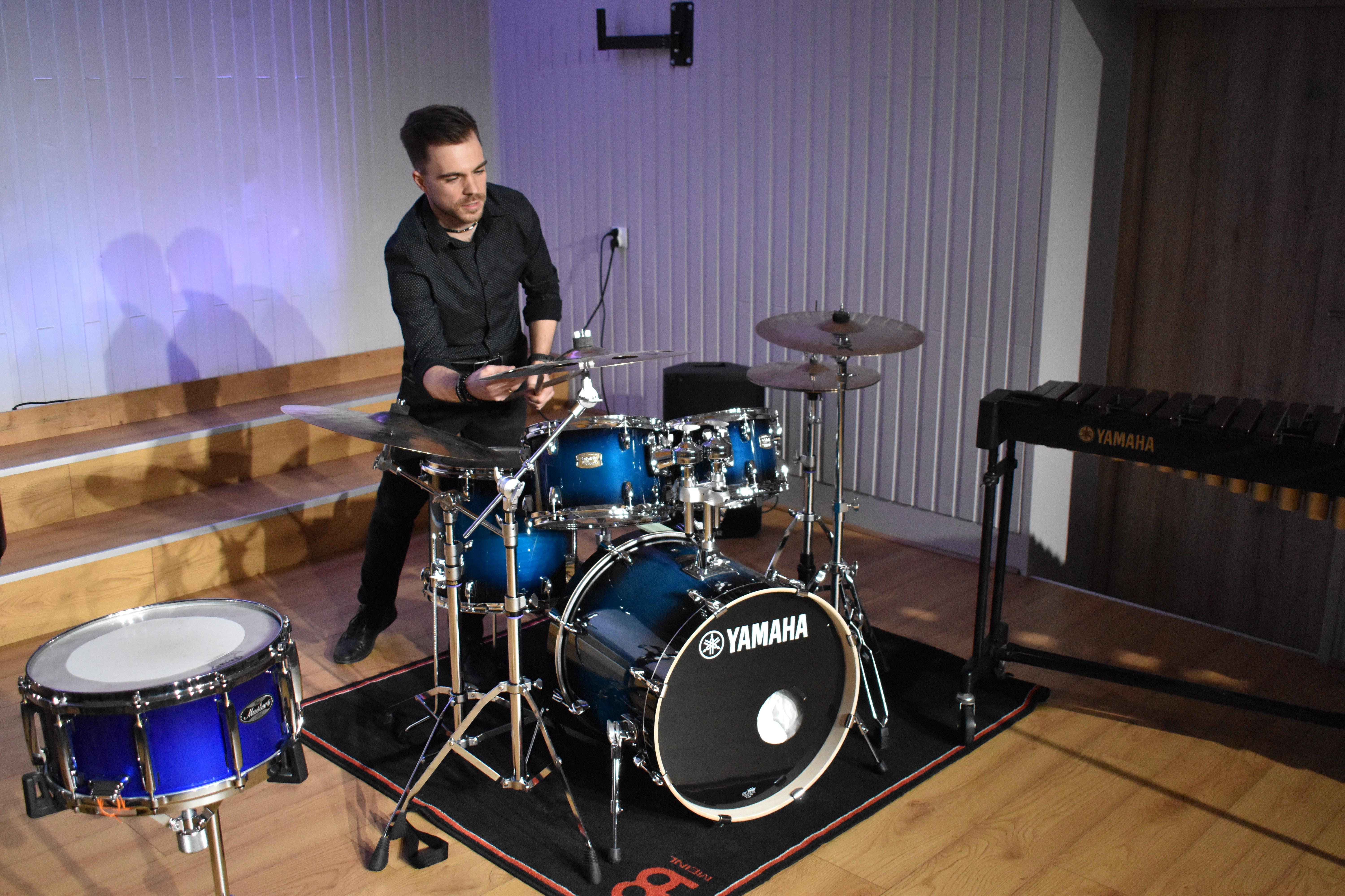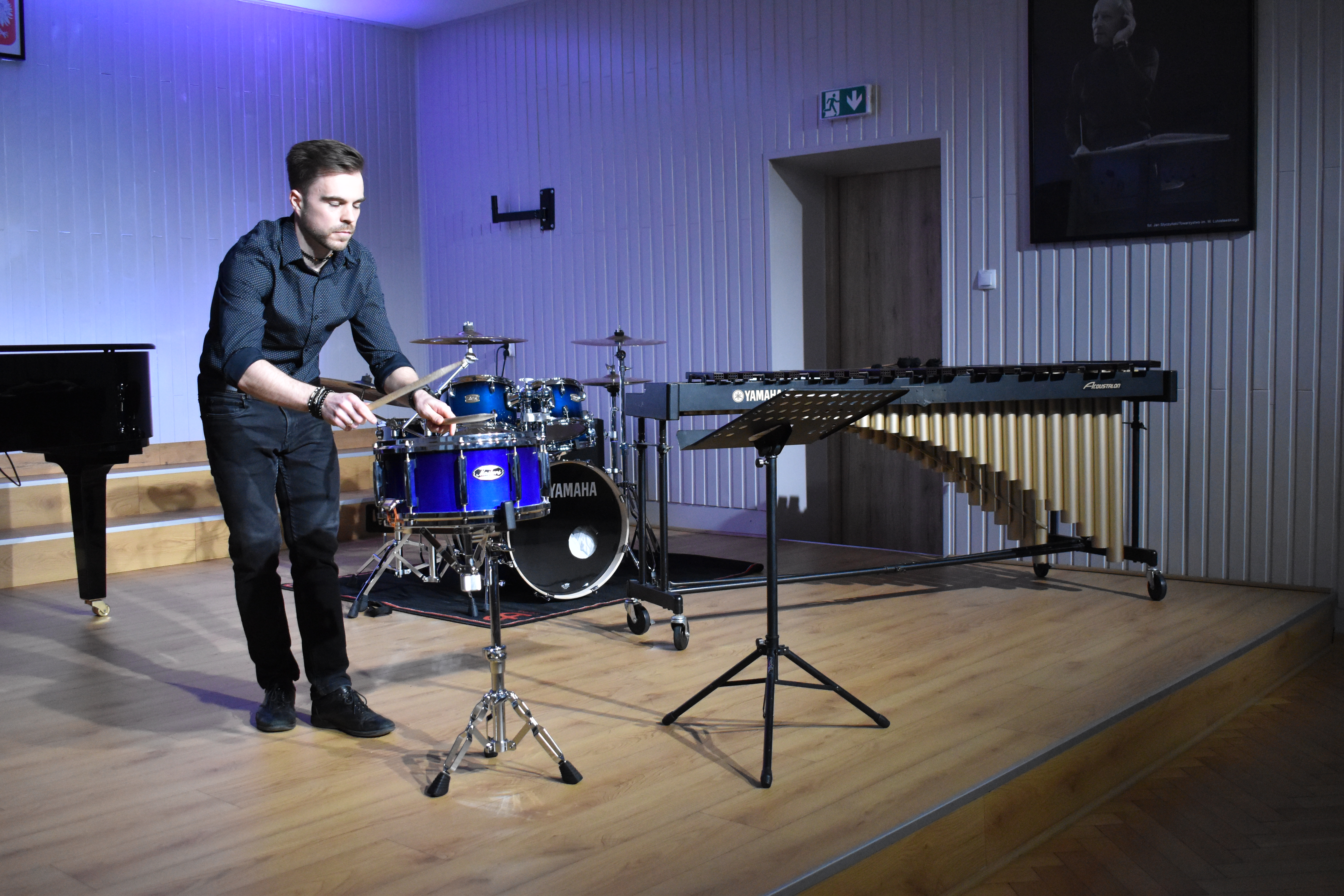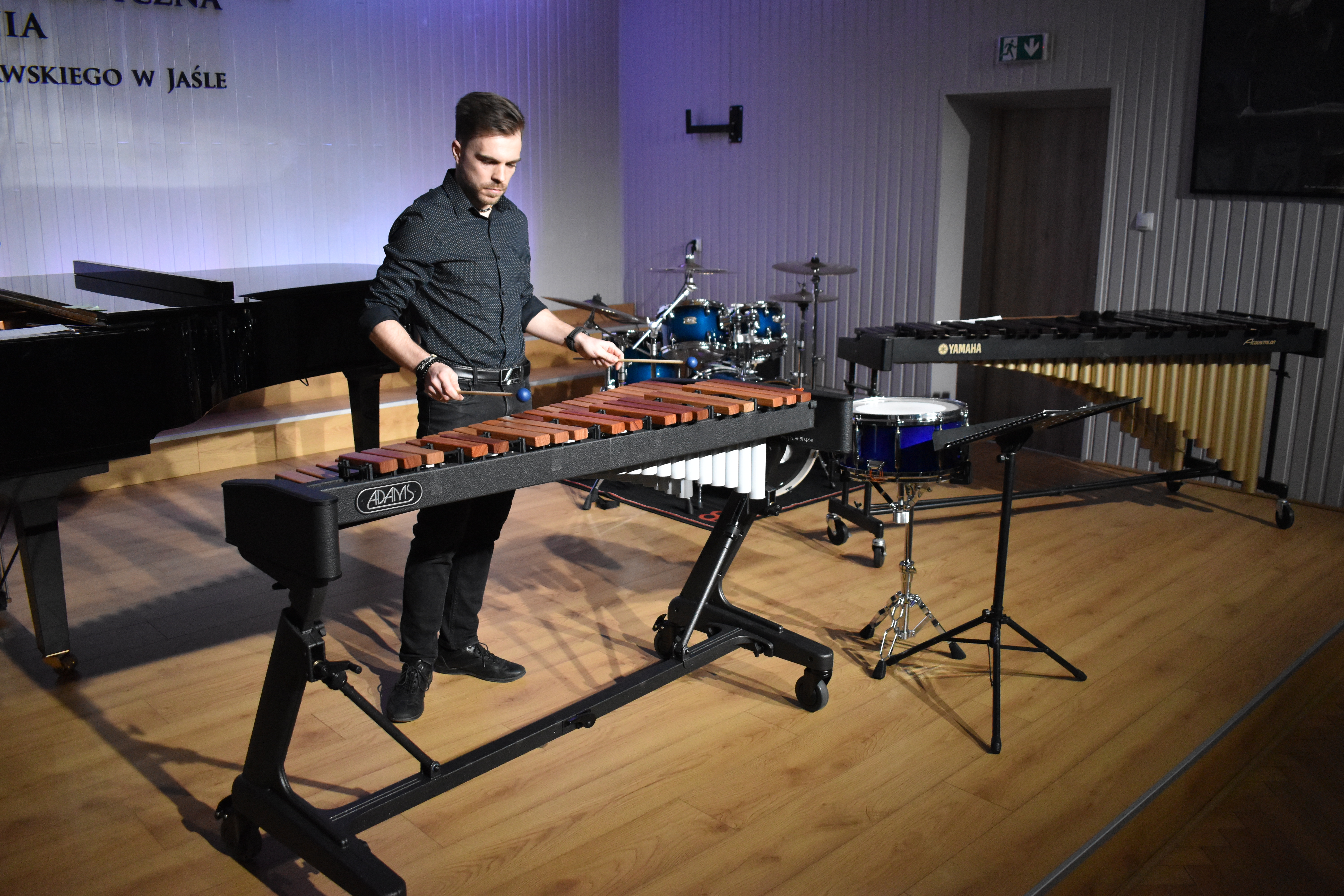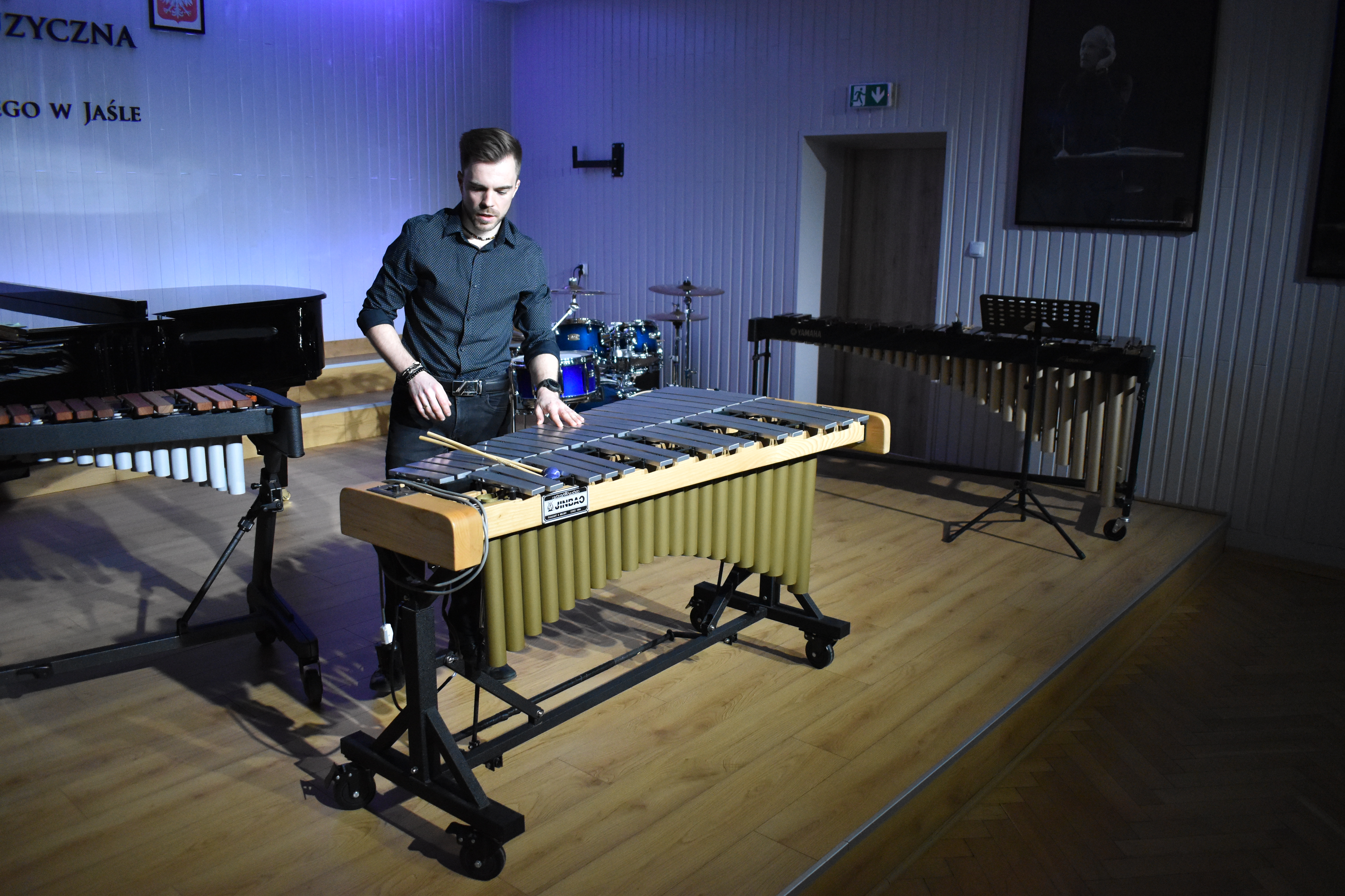 Budowę i tajniki gry na werblu, ksylofonie, wibrafonie, marimbafonie i zestawie perkusyjnym prezentował nauczyciel jasielskich szkół muzycznych – Michał Dudek. Wspomagany był przez Julię Mikrut oraz Przemysława Ryznara, uczniów klasy perkusji Prywatnej Szkoły Muzycznej I stopnia w Jaśle, działającej w tej szkole już od kilkunastu lat. Do instrumentów perkusyjnych dołączył także Piotr Duda, który akompaniował na fortepianie.