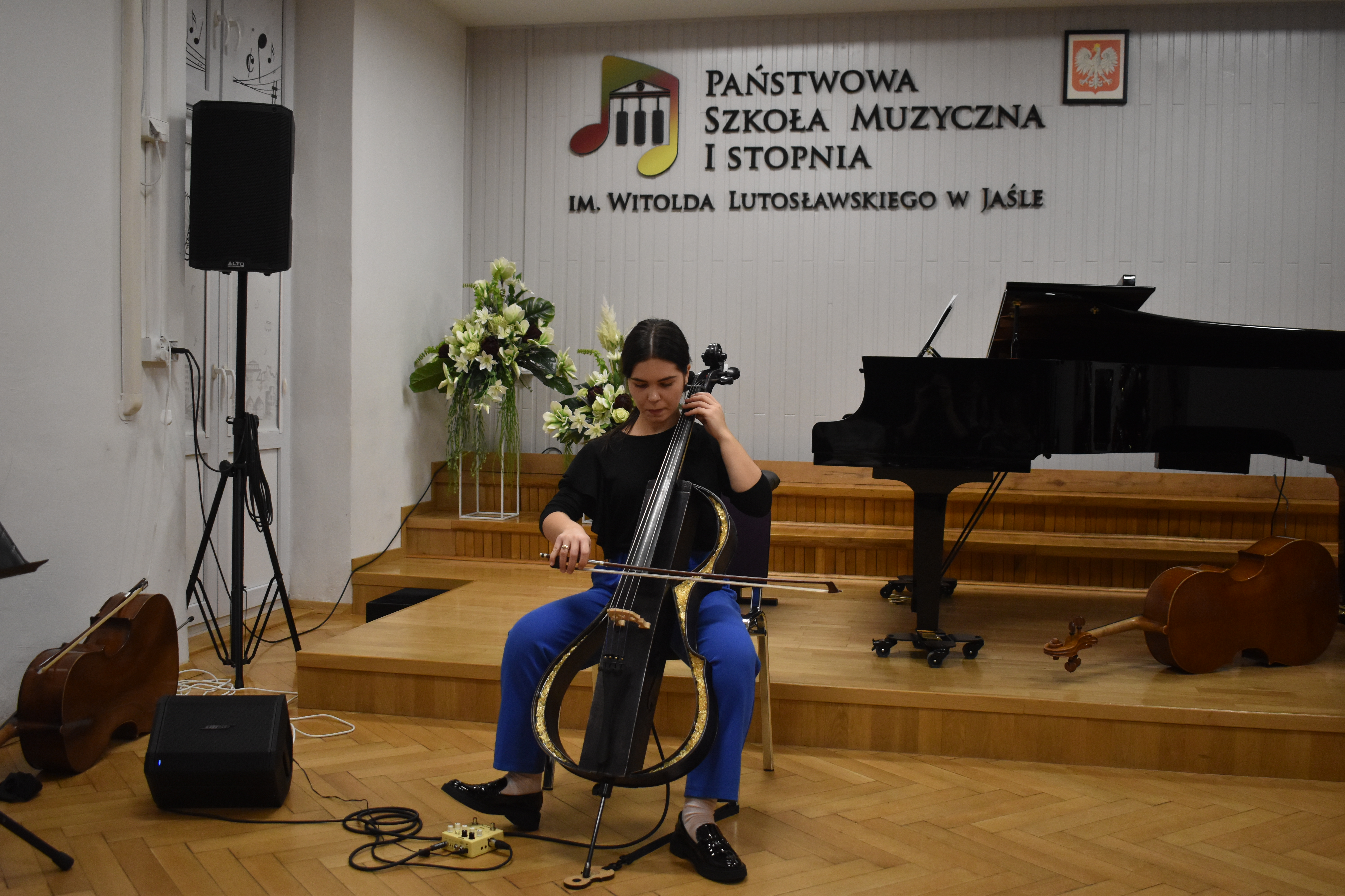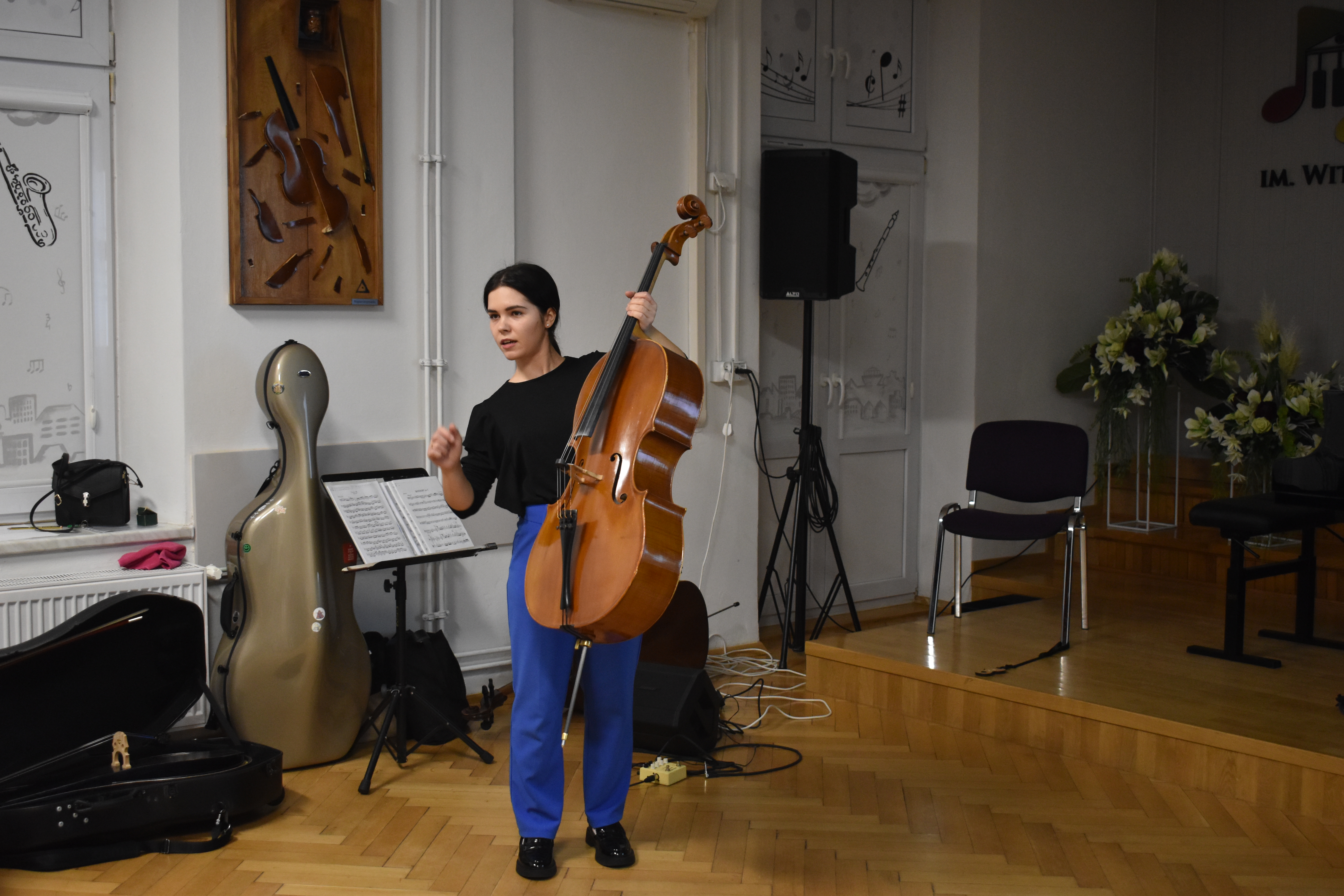 Już po raz czwarty nauczyciele sekcji teoretycznej wraz z Samorządem Szkolnym przygotowali obchody poświęcone jednemu z instrumentów muzycznych. Bohaterką kolejnej odsłony tego edukacyjno-artystycznego cyklu była wiolonczela. Stali bywalcy naszych szkolnych Dni Instrumentów zdążyli się już przyzwyczaić do różnorodnej formuły. Dla tych, którzy po raz pierwszy się z nią spotykają, przedstawiamy szczegóły w telegraficznym skrócie: była edukacyjna opowieść Marka Rolka o początkach, rozwoju i budowie wiolonczeli, artystyczne prezentacje wiolonczeli w różnych epokach i obsadach wykonawczych (Klaudia Borowiec-Wyrazik - wiolonczela, Paweł Skowroński - fortepian, Maciej Nyklewicz – skrzypce, Marlena Szot – wiolonczela), mini konkurs wiedzy o wiolonczeli z nagrodami, kolorowanki dla najmłodszych oraz subtelna muzyka wiolonczelowa w szatni szkoły i oczywiście największy instrument świata (wykonywany kreatywnie, na szybko, z tego co akurat mamy pod ręką :-)