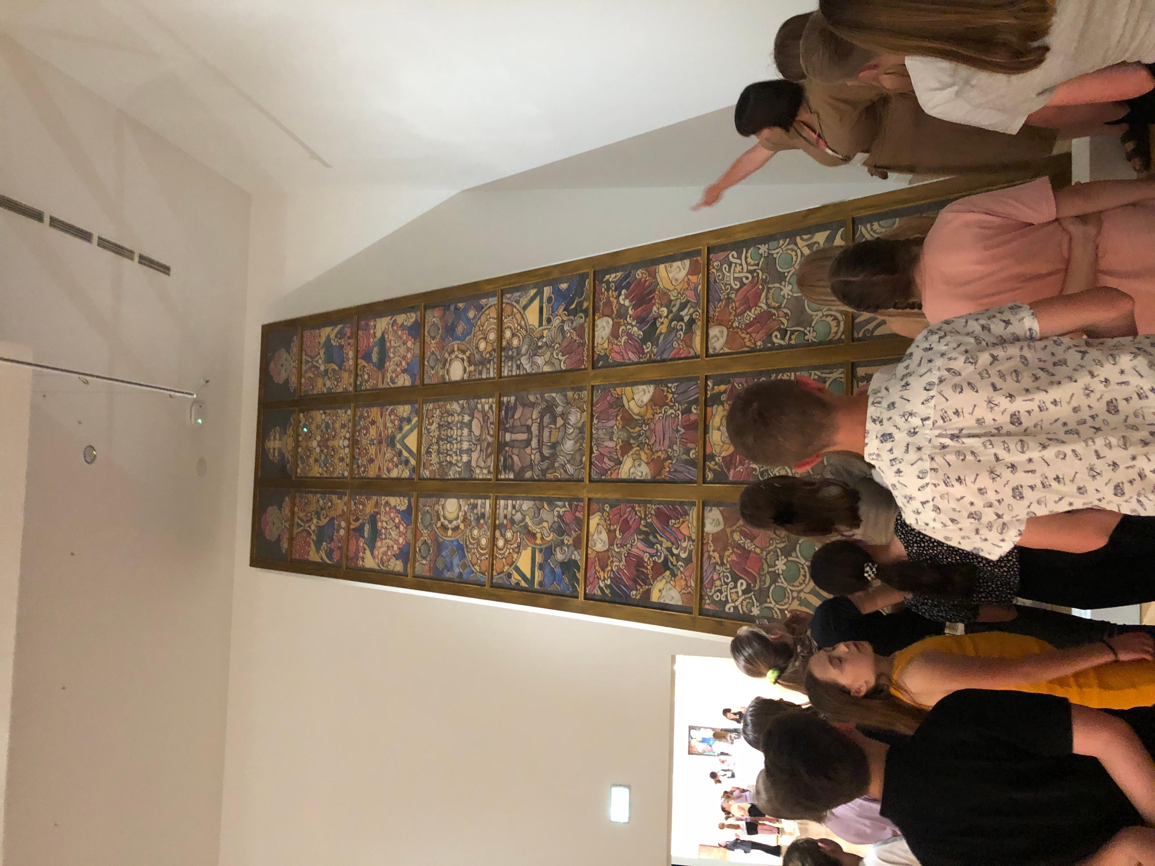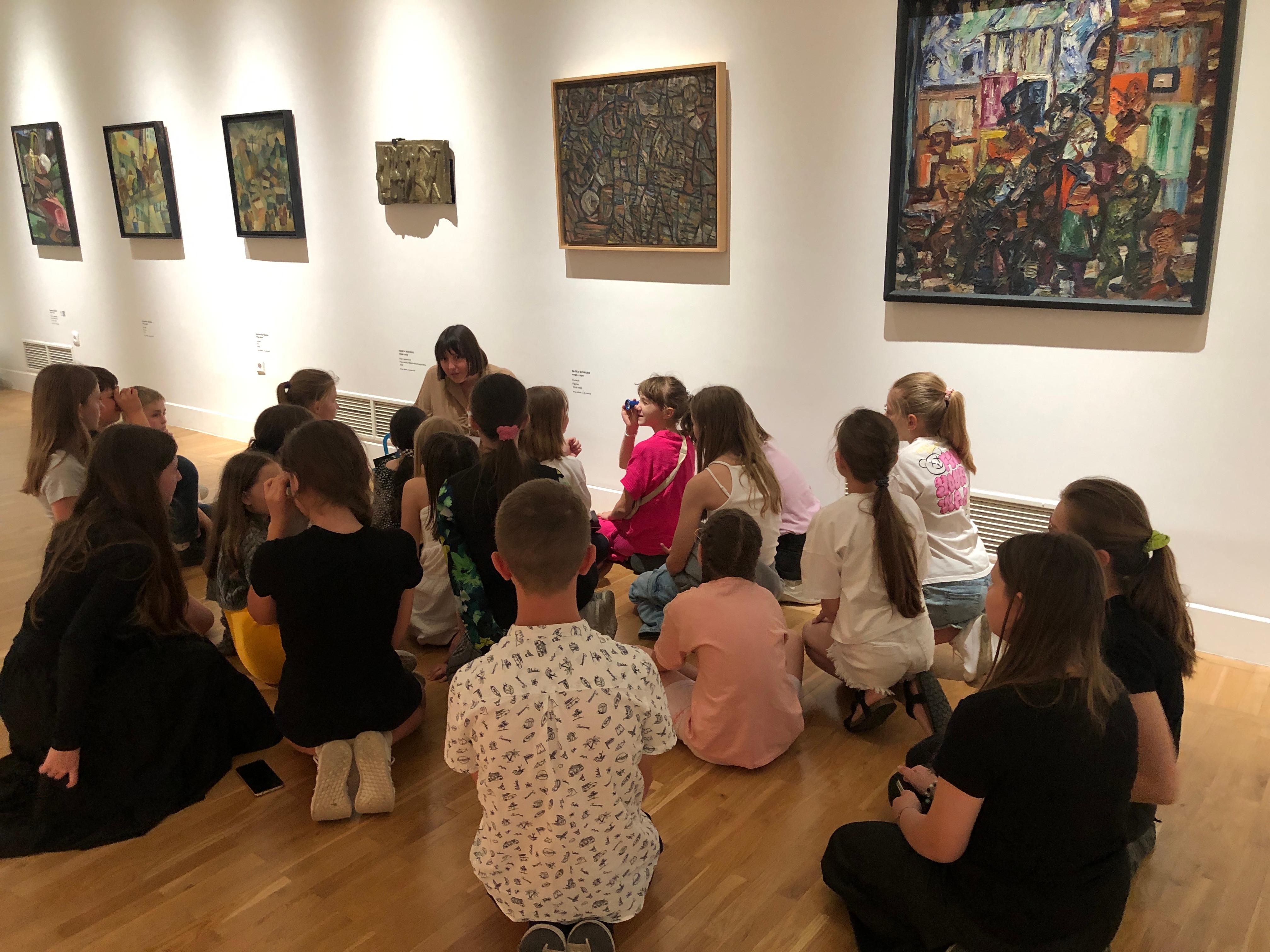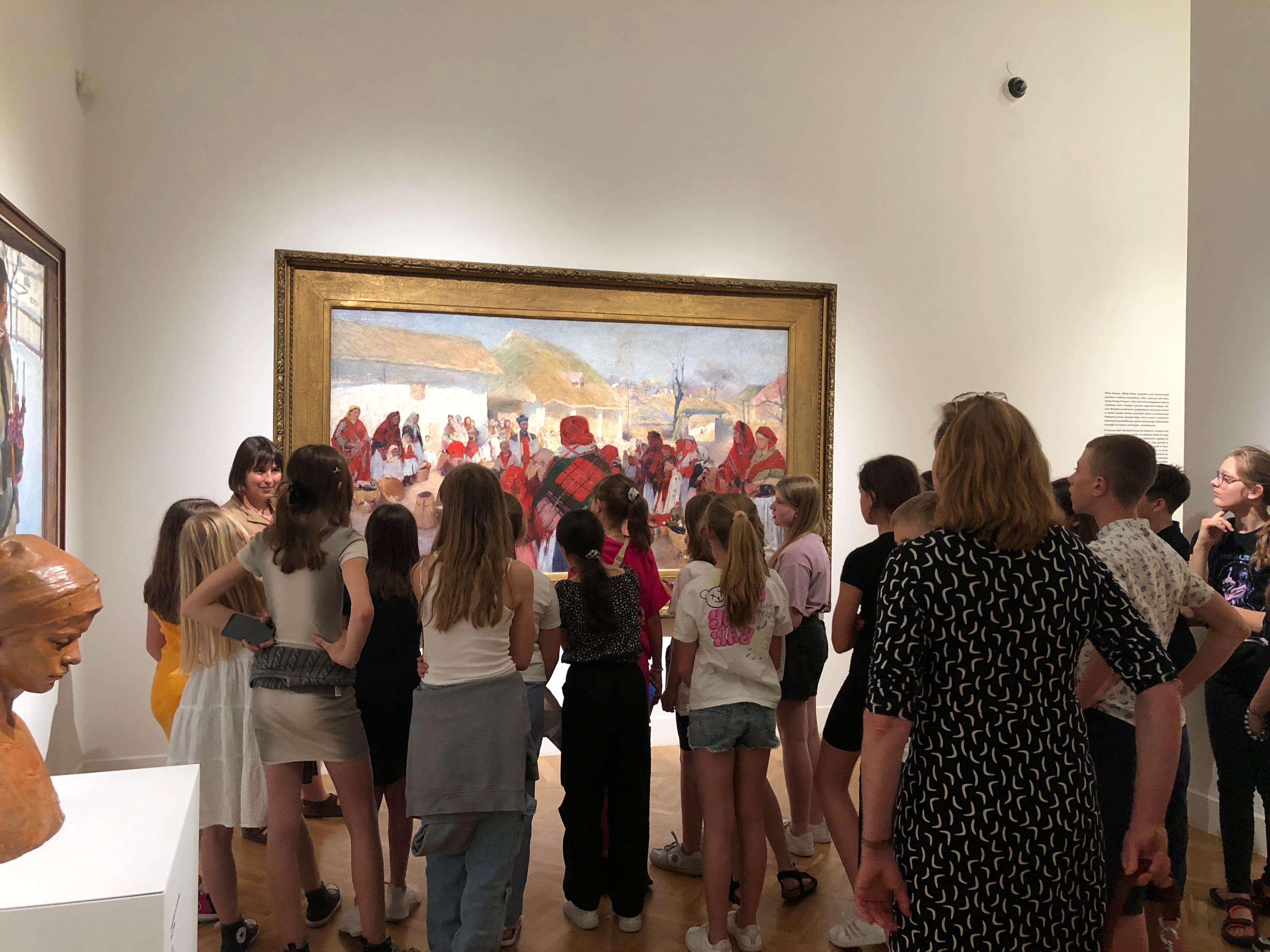 Następnie przenieśliśmy się do świata sztuki wizualnej. W Gmachu Głównym Muzeum Narodowego w Krakowie, mieliśmy okazję uczestniczyć w lekcji muzealnej zatytułowanej „Czy woda jest niebieska, a jabłko okrągłe? O kolorach i kształtach w sztuce”.