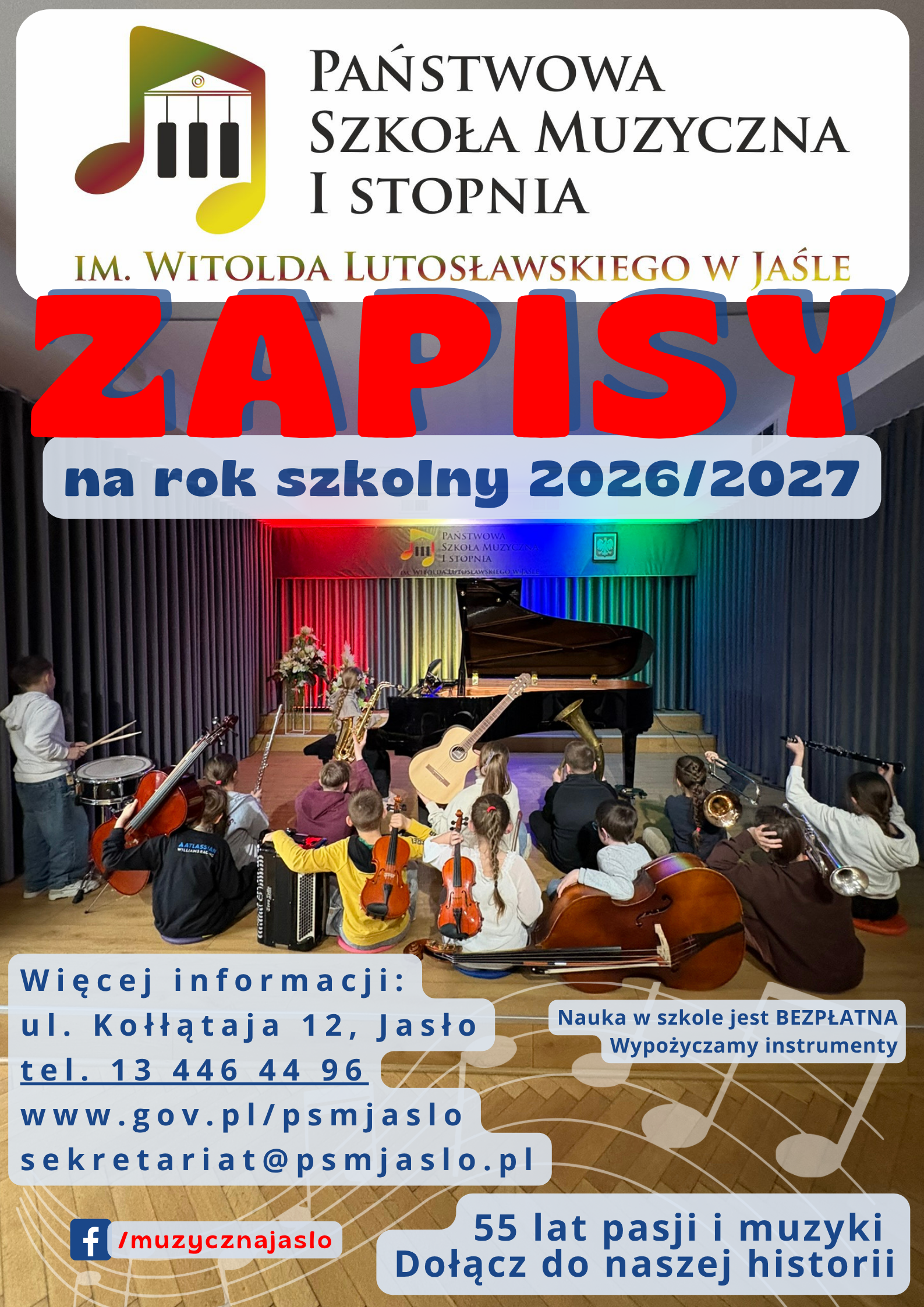 Państwowa Szkoła Muzyczna I stopnia im. Witolda Lutosławskiego w Jaśle ogłasza