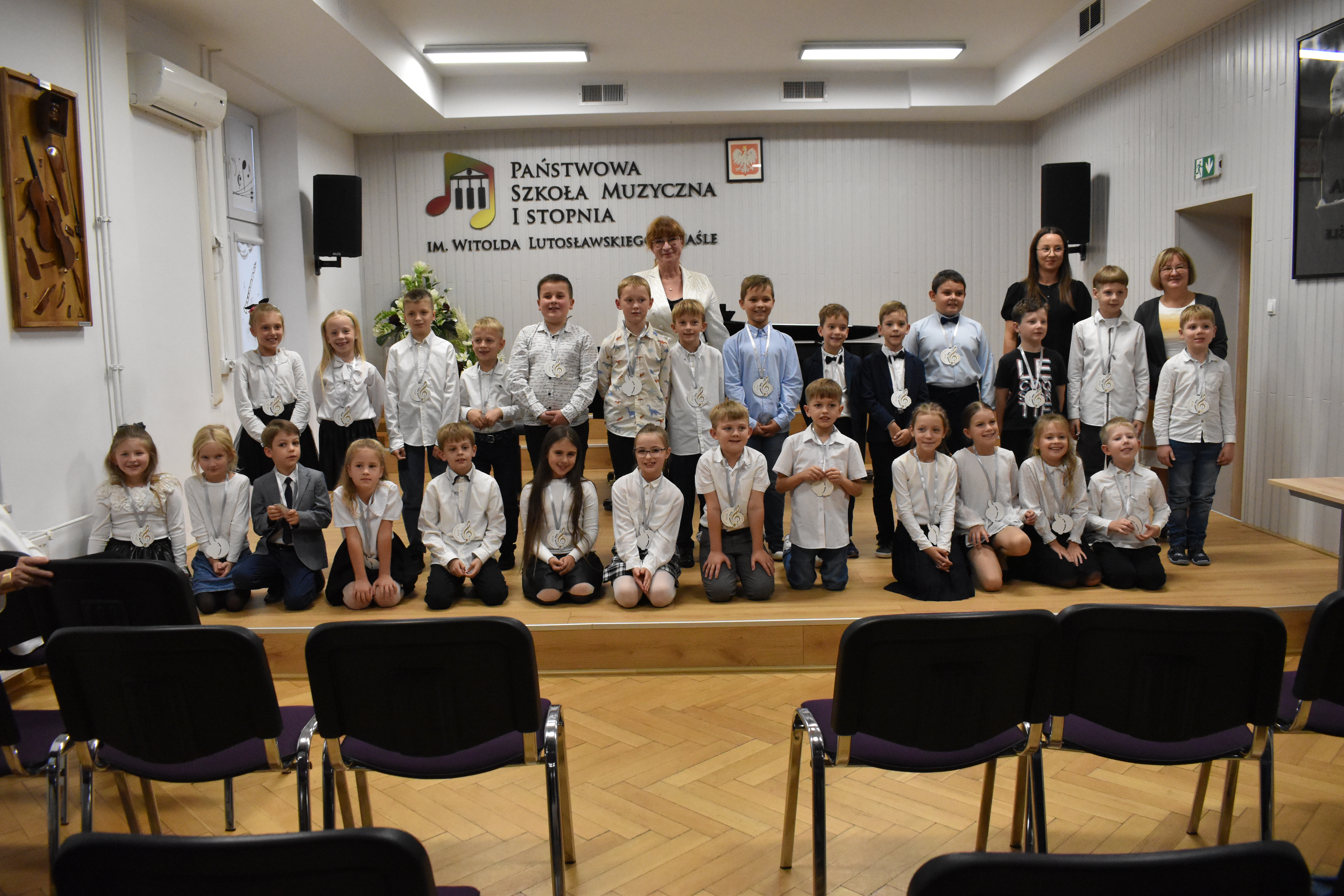 Ostatni dzień września i pierwszy dzień października to dni wyjątkowe dla naszych pierwszoklasistów. Uczniowie cyklu czteroletniego i sześcioletniego byli pasowani na ucznia pierwszej klasy Szkoły Muzycznej. Specjalnie dla naszych najmłodszych uczniów zorganizowany był mały koncert w wykonaniu starszych kolegów oraz nauczycieli. Nie zabrakło wirtuozowskich prezentacji a także zespołowych popisów. Uczniowie i rodzice włączyli się aktywnie w rozpoznawanie melodii z bajek i wielkich dzieł muzyki poważnej prezentowanych przez nauczycieli Szkoły Muzycznej. Na koniec uroczystości nastąpiło ślubowanie pierwszoklasistów oraz pasowanie na ucznia przez Panią Dyrektor.