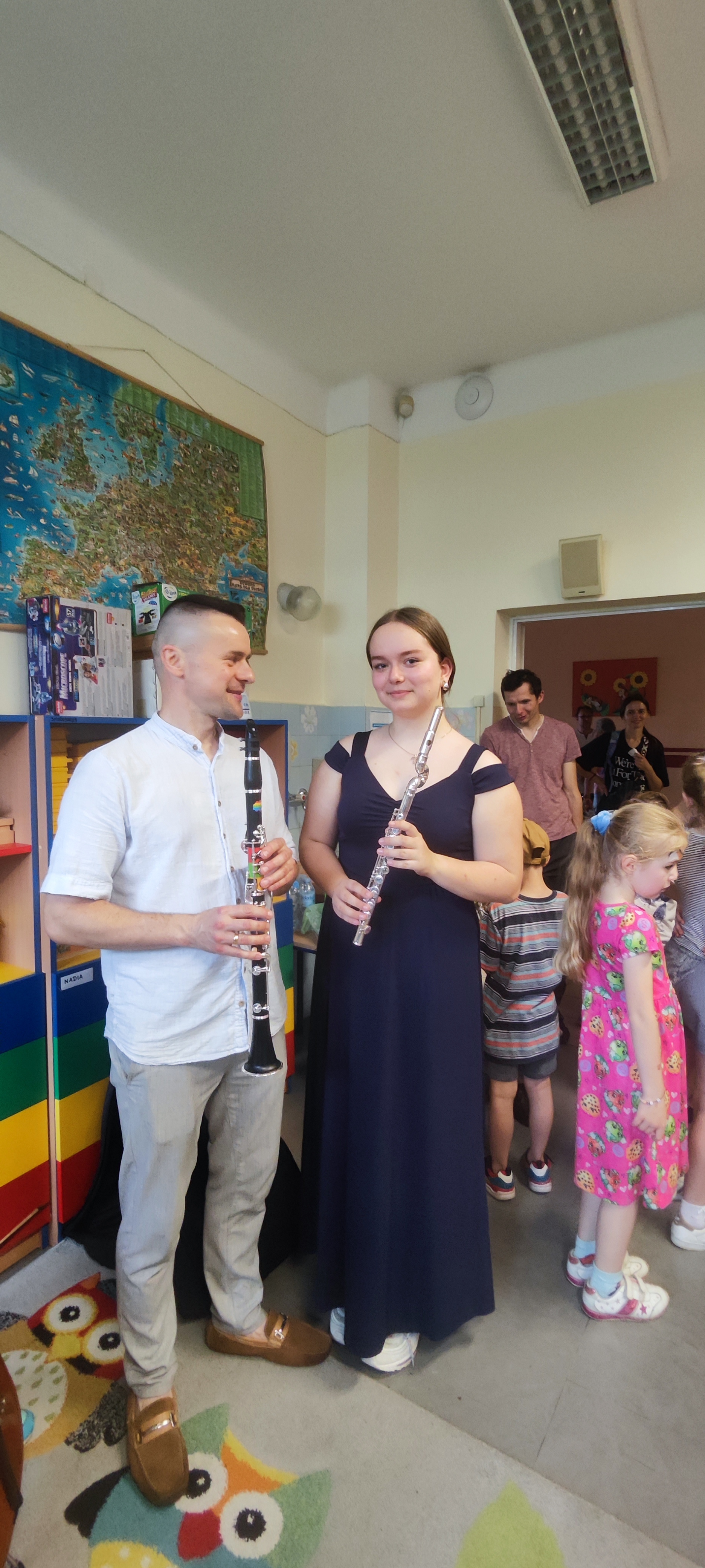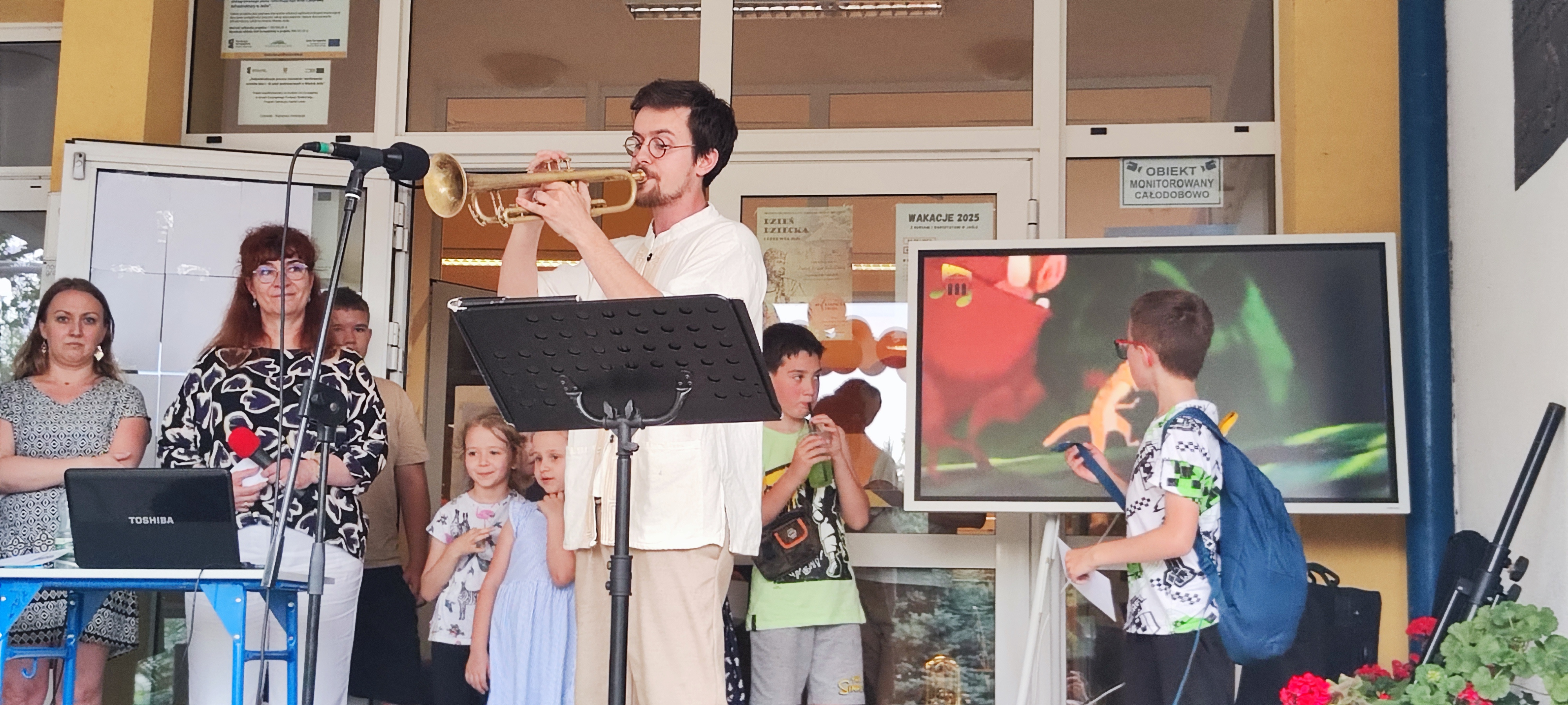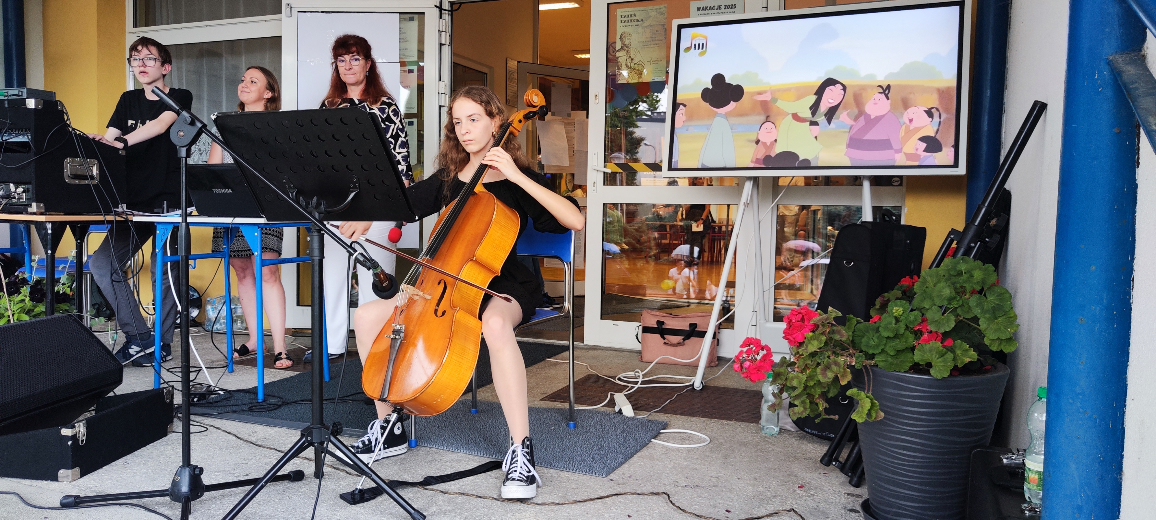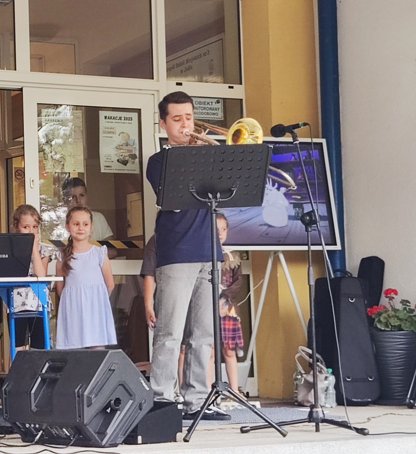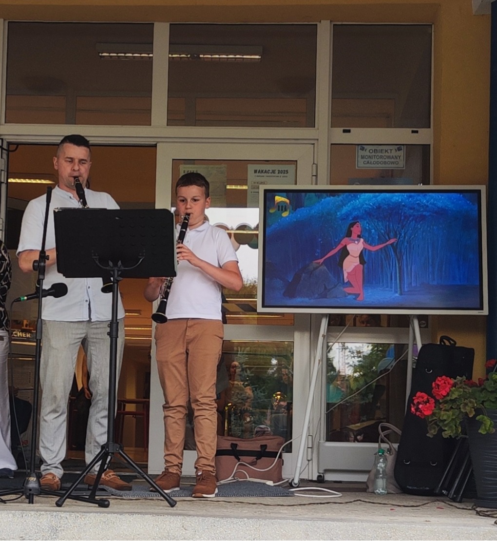 W miniony piątek 6 czerwca mieliśmy przyjemność wystąpić podczas Pikniku Rodzinnego w Szkole Podstawowej nr 12 w Jaśle. Nasi uczniowie prezentowali swoje umiejętności gry na instrumentach wykonując znane melodie z bajek Walt’a Disney’a. Występ naszych uczniów odbył się w ciepłej, rodzinnej atmosferze – mimo, iż pogoda robiła nam psikusy, nie pozwalając dokończyć koncertu. Nie tracąc dobrych nastrojów, bezpośrednio po występach, uczniowie szkoły podstawowej mogli przyjrzeć się bliżej prezentowanym instrumentom, a nawet na nich zagrać! Serdecznie dziękujemy za tak ciepłe przyjęcie, organizację oraz pyszne słodkości.