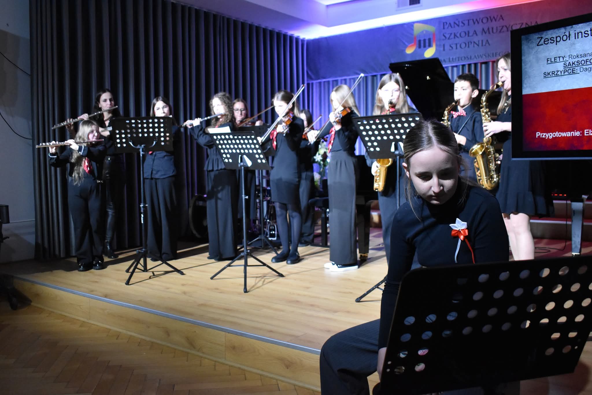 W dniu 19 listopada w auli naszej szkoły odbyła się uroczysta akademia z okazji Święta Odzyskania Niepodległości. Wspólne odśpiewanie hymnu państwowego rozpoczęło wydarzenie i wprowadziło wszystkich w podniosły nastrój. Tego dnia muzycznie świętowaliśmy naszą niepodległość, wyrażając radość z wolności oraz wdzięczność za nią poprzez dźwięki i interpretacje przygotowanych utworów.