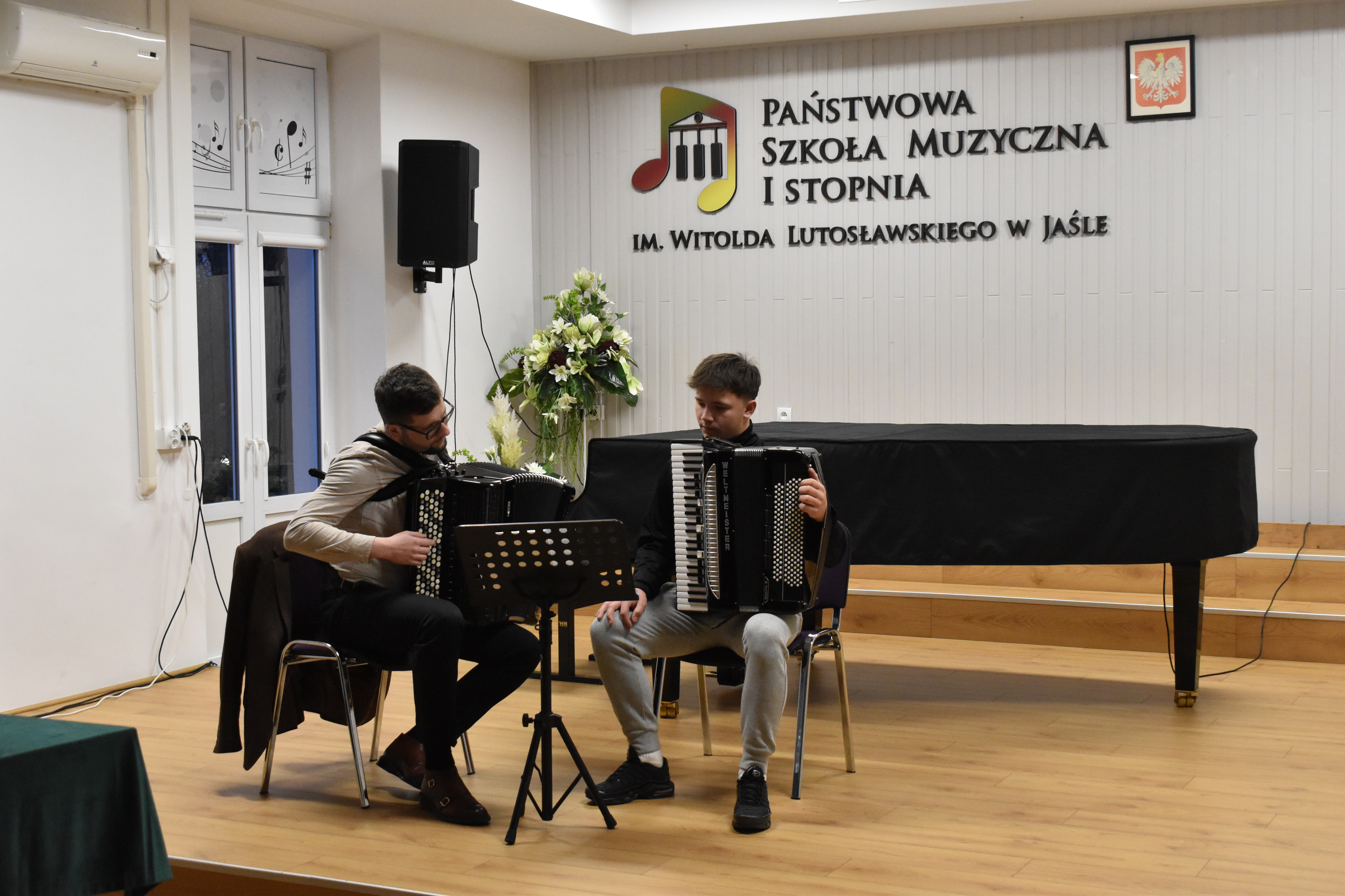 Dnia 3 lutego 2025r odbyły się warsztaty akordeonowe z dr hab. Wiesławem Ochwatem, wykładowcą Akademii Muzycznej w Krakowie. Jak możemy przeczytać na stronie internetowej AM w Krakowie, „jest to instrumentalista aktywnie udzielający się na wielu płaszczyznach, zaangażowany w działalność kulturalną poprzez czynne koncertowanie, współorganizowanie wydarzeń artystycznych oraz aktywną pracę w sferze dydaktyczno-naukowej. Głównym nurtem zainteresowań tego artysty jest wykonywanie i promowanie muzyki współczesnej. Ma on na swoim koncie kilkadziesiąt prawykonań nowopowstałych utworów, zarówno solowych jak i kameralnych, które często powstawały z jego inicjatywy. Wiesław Ochwat jest laureatem ponad dwudziestu konkursów i festiwali akordeonowych w Polsce, jak i za granicą W kręgu zainteresowań instrumentalisty poza muzyką współczesną pojawia się również muzyka klasyczna, improwizowana i rozrywkowa. ”W warsztatach wzięli udział uczniowie nauczyciela akordeonu Jakuba Zastawnego z Państwowej Szkoły Muzycznej I stopnia w Jaśle oraz Prywatnej Szkoły Muzycznej II stopnia w Jaśle. Mieli oni okazję szlifować swój warsztat gry pod bacznym okiem p. Ochwata, który udzielał cennych uwag i wskazówek dotyczących techniki gry na instrumencie, frazowania i artykulacji. Poruszał on również tematykę rozczytywania nowych utworów oraz metod ćwiczenia problematycznych fragmentów. Spotkanie naszych uczniów z tak cenionym pedagogiem, zmotywowało ich jeszcze bardziej do działania oraz umocniło w nich pasję do gry na tym muzycznie wielobarwnym instrumencie, jakim jest akordeon.