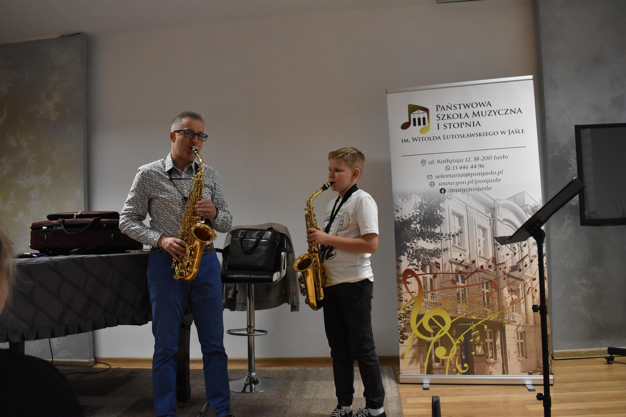 7 maja, już po raz kolejny mieliśmy przyjemność gościć Jarosława Seredę – pedagoga oraz saksofonistę z Zespołu Szkół Muzycznych im. I. J. Paderewskiego w Krośnie. Wszyscy uczestnicy mieli okazję indywidualnie skonfrontować swój aktualny poziom gry niezależnie od etapu edukacji. Otrzymali cenne wskazówki dotyczące aparatu gry, brzmienia instrumentu, postawy, aplikatury oraz właściwej interpretacji tekstu muzycznego.