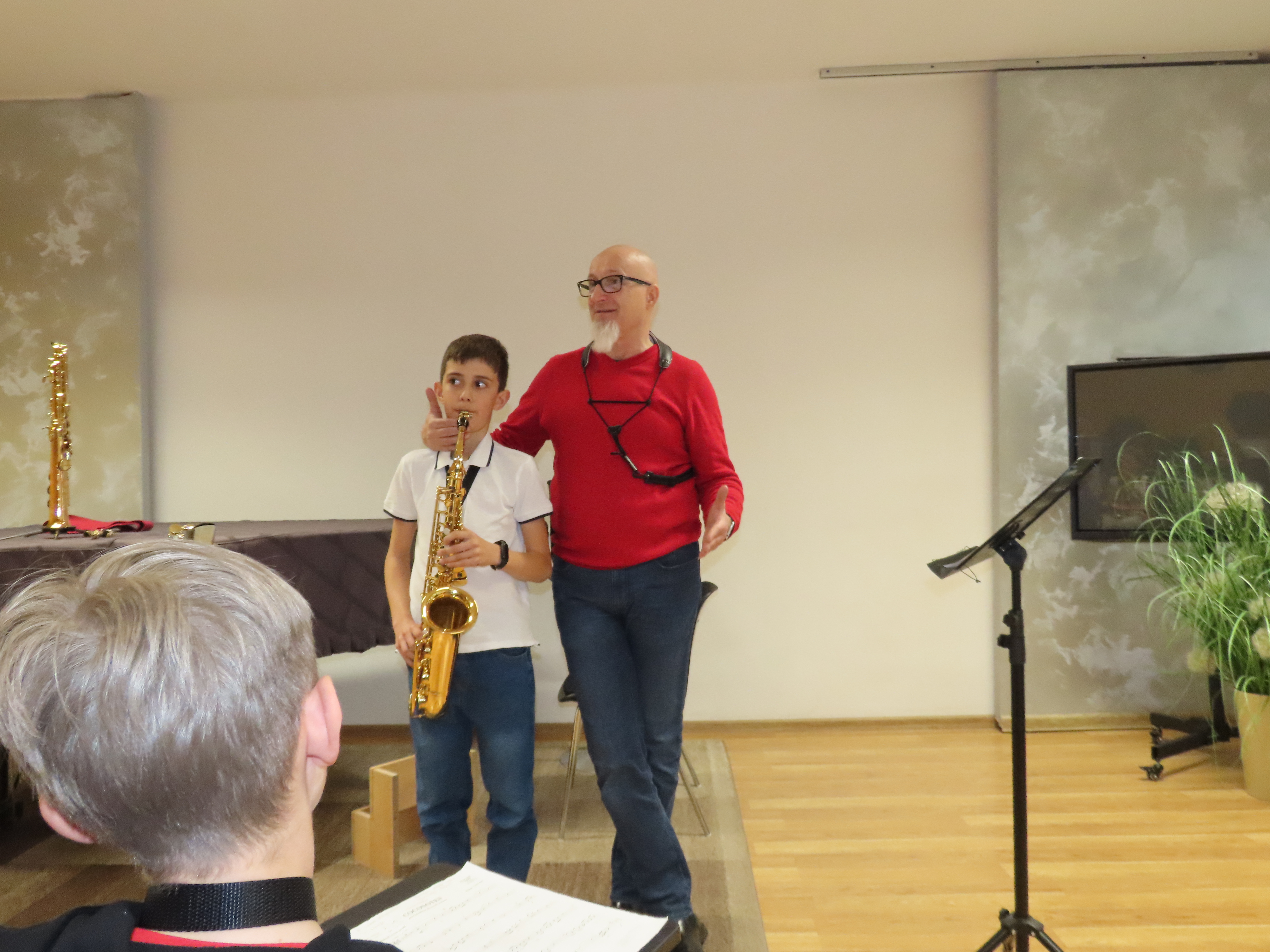 10 kwietnia w naszej szkole odbyły się warsztaty saksofonowe, które poprowadził Jarosław Sereda- pedagog z Zespołu Szkół Muzycznych w Krośnie . Wydarzenie przyciągnęło wielu uczestników, nie tylko z klas saksofonu. Jarosław Sereda, długoletni pedagog oraz saksofonista z imponującymi osiągnięciami, słynie z indywidualnego podejścia do ucznia. Podczas warsztatów z dużą empatią podchodził do każdego uczestnika, skupiając się na aparacie gry i postawie grającego. Nie zabrakło również nauki artystycznego podejścia do muzyki. Prowadzący pokazał, jak pięknie wykonywać utwory muzyczne, zwracając uwagę na subtelności interpretacyjne i emocjonalne zaangażowanie w grę na instrumencie. Używał trafnych porównań i metafor, które pomogły uczniom zrozumieć techniki gry.