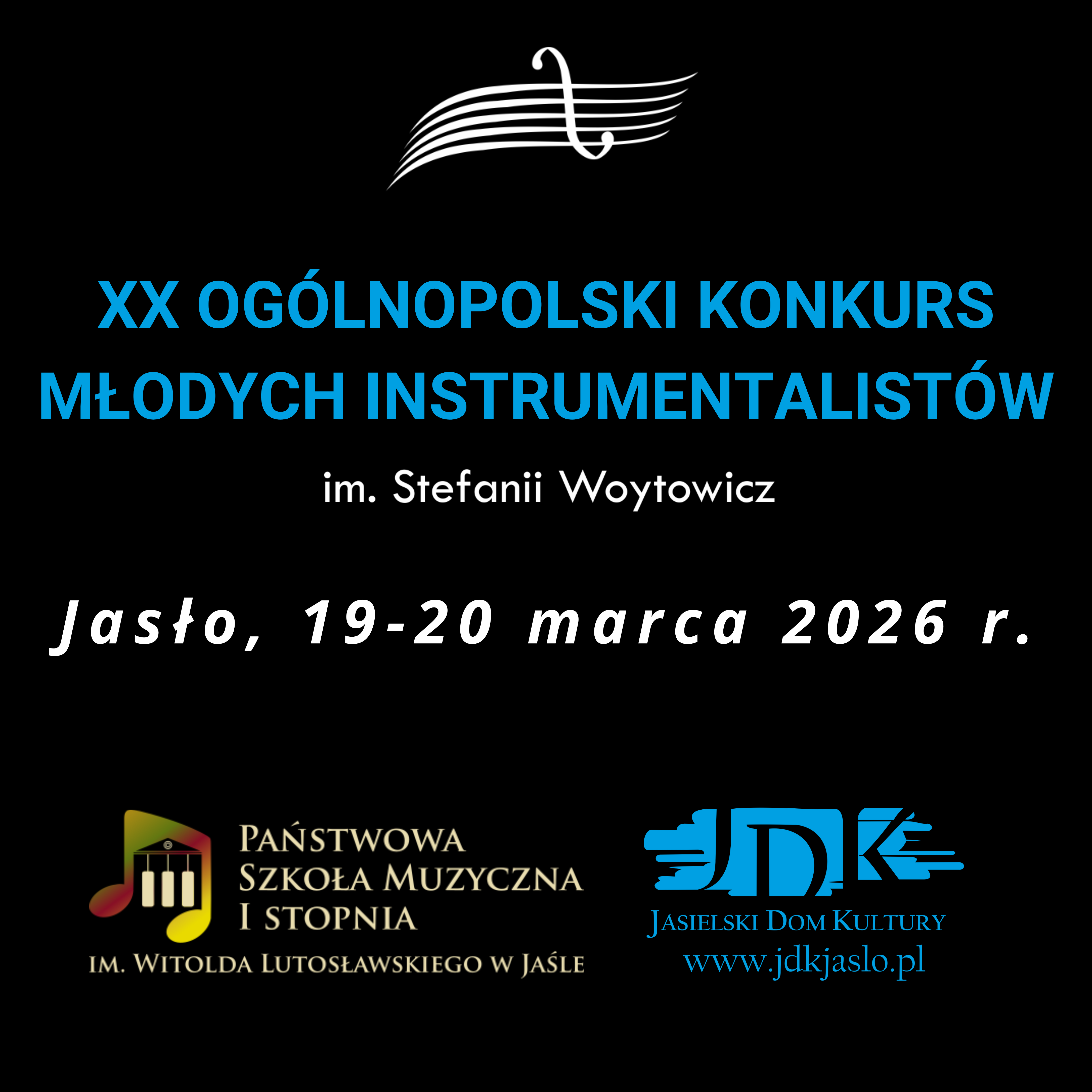 Państwowa Szkoła Muzyczna I st. im. Witolda Lutosławskiego w Jaśle wraz z Jasielskim Domem Kultury organizuje po raz XX Ogólnopolski Konkurs Młodych Instrumentalistów im. Stefanii Woytowicz, który odbędzie się 19-20 marca 2026 r. r. w Jaśle.