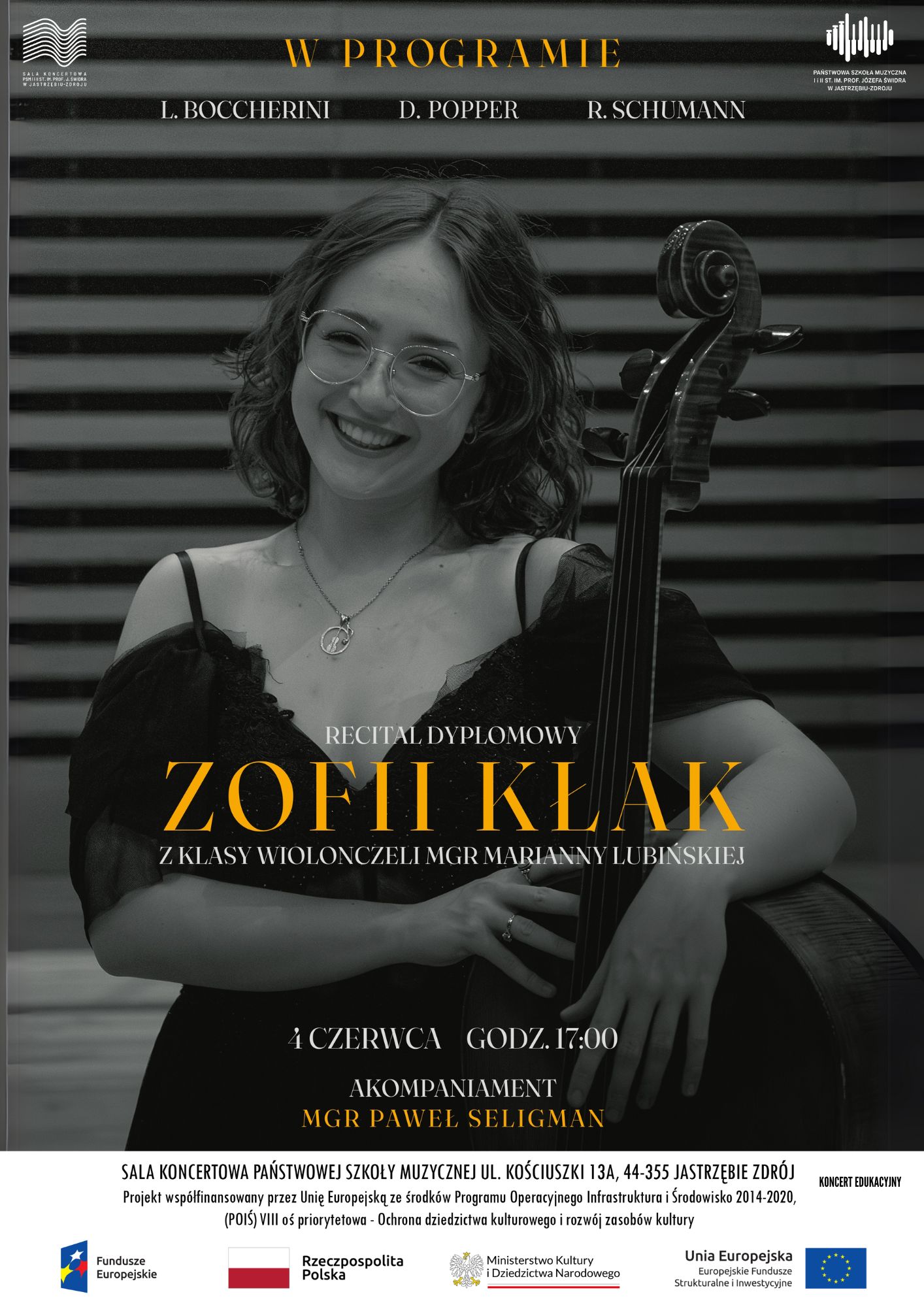 04.06.2025 r. w sali koncertowej odbyłs się recital dyplomowy Zofii Kłak z klasy wiolonczeli Pani Marianny Lubińskiej.