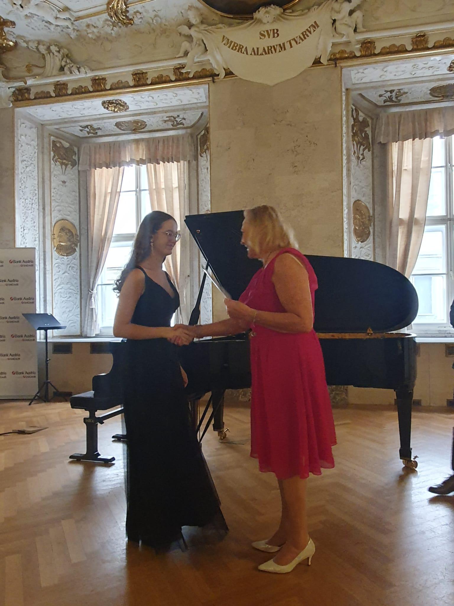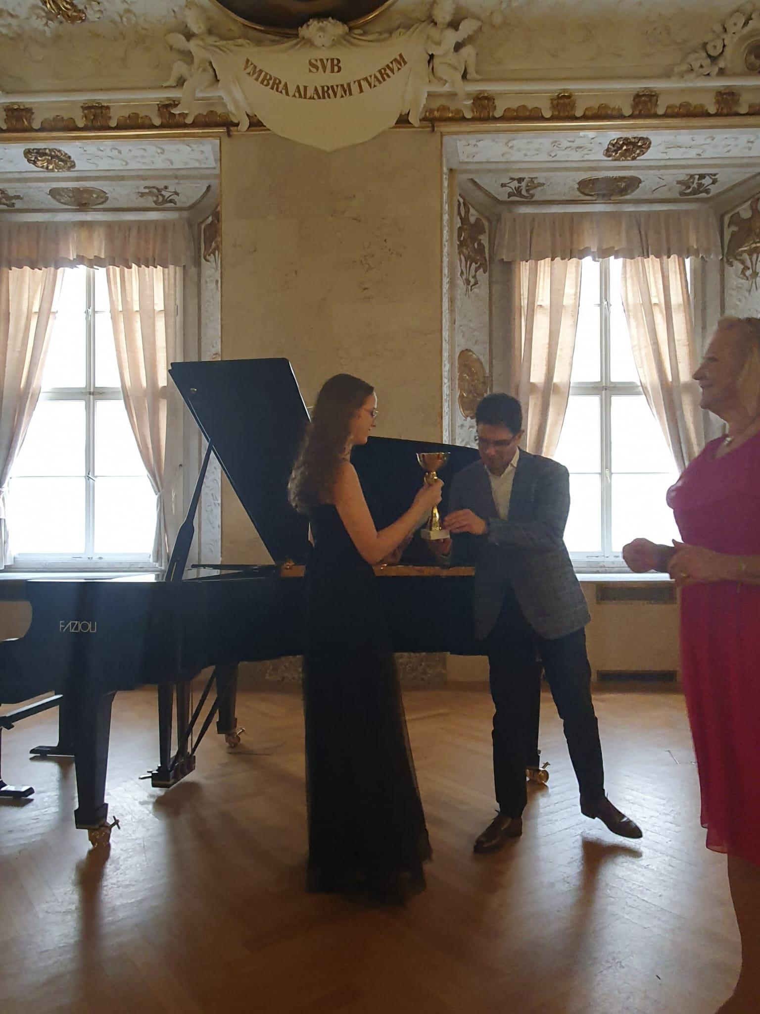 Uzdolnionej młodzieży z wielu zakątków światy, w tym Japonii, Chorwacji, Polski nagrody wręczała prof. Jadwiga Pajdas - Zielińska, dyrektor artystyczny konkursu i twórca Międzynarodowego konkursu pianistycznego im. F. Chopina w Wiedniu.