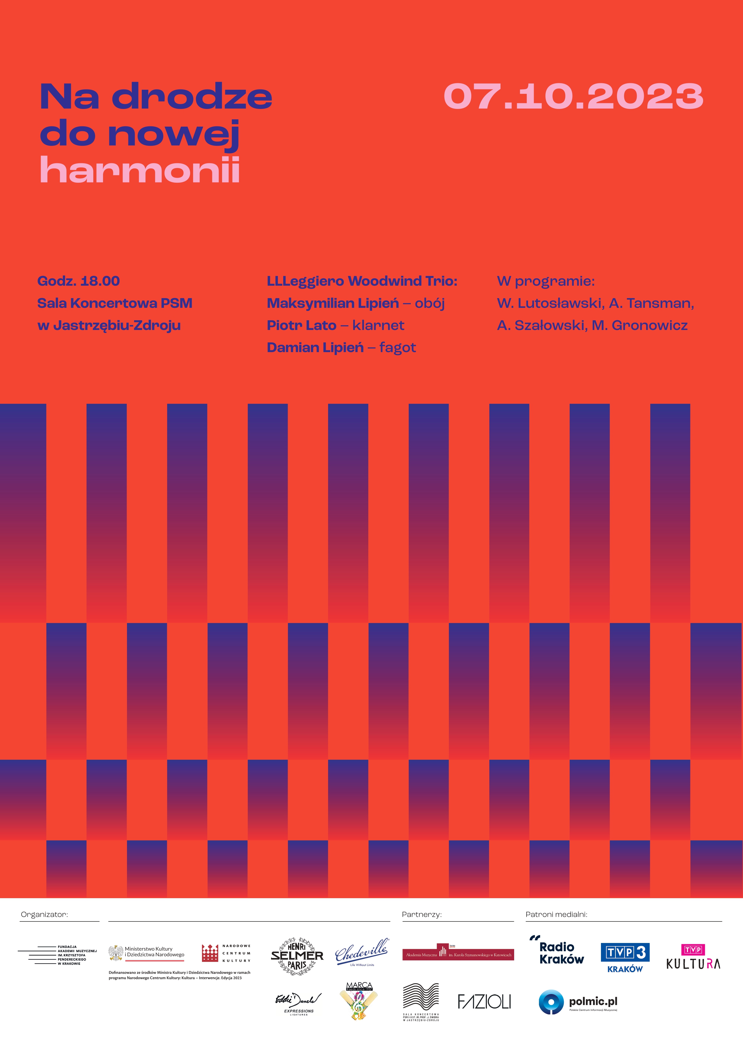 W sobotę (7.10.2023) odbył się kolejny koncert w ramach festiwalu "Na drodze do nowej harmonii". Tym razem wystąpił zespół LLLeggiero Woodwind Trio w składzie: Maksymilian Lipień (obój), Piotr Lato (klarnet) i Damian Lipień (fagot), który powstał w 2018 roku w Krakowie.