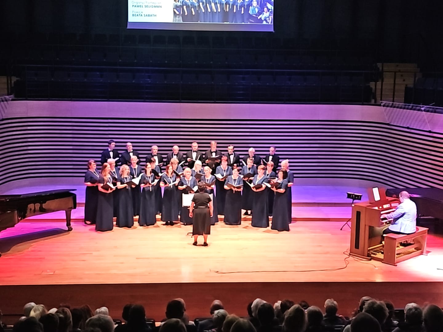27 osobowy skład i niezwykła Pani dyrygent DR JADWIGA SIKORA wspaniale wykorzystali akustyczne warunki naszej sali dając niesamowity popis umiejętności wokalnych.