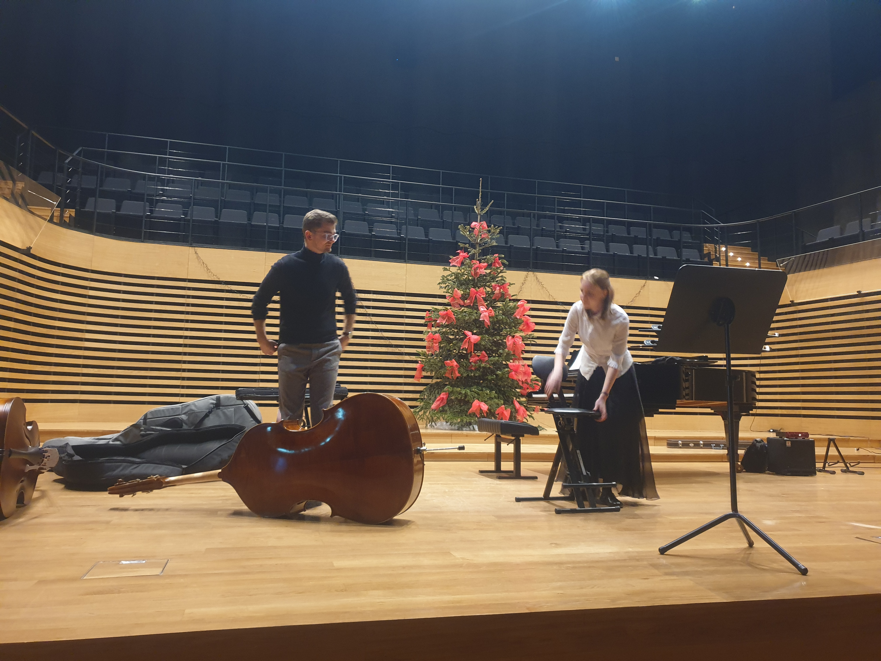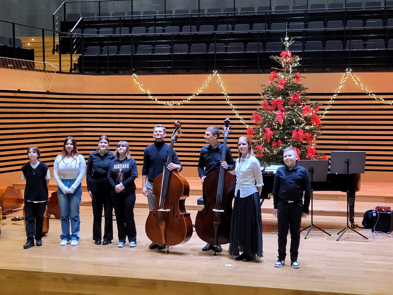 Mroźny poniedziałek 8 stycznia 2024 r. rozgrzewały kontrabasowe dźwięki kształtowane na pierwszych Warsztatach Kontrabasowych zorganizowanych w Sali Koncertowej naszej szkoły.