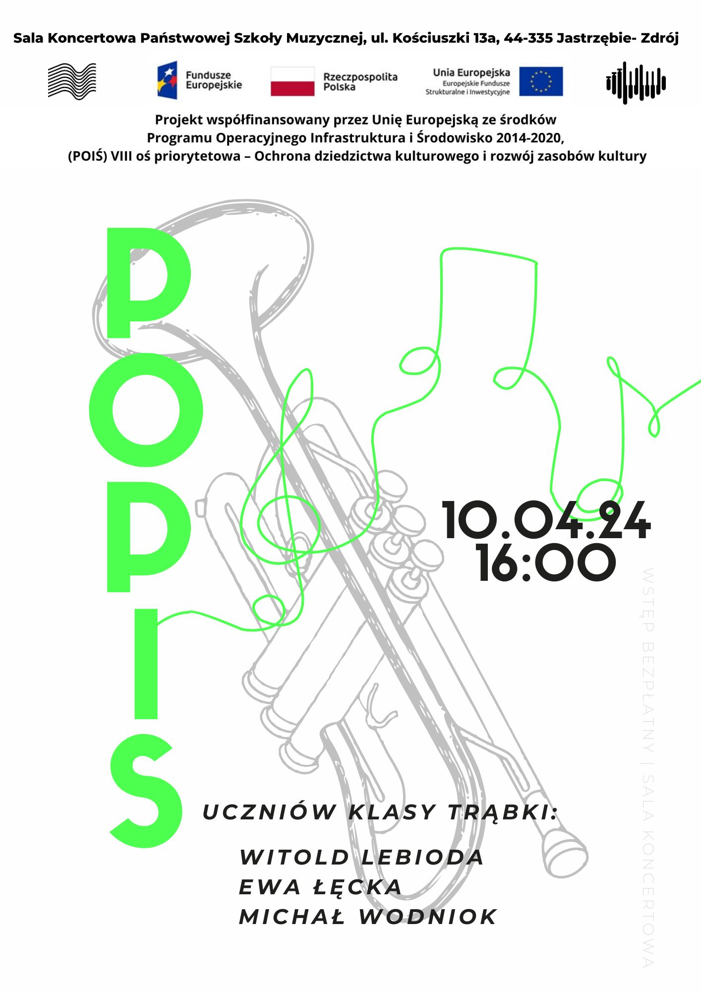 W dniu 10 kwietnia 2024 r. odbył się popis ytójki uczniów klasy trąbki Pana Joachima Paczyńskiego.