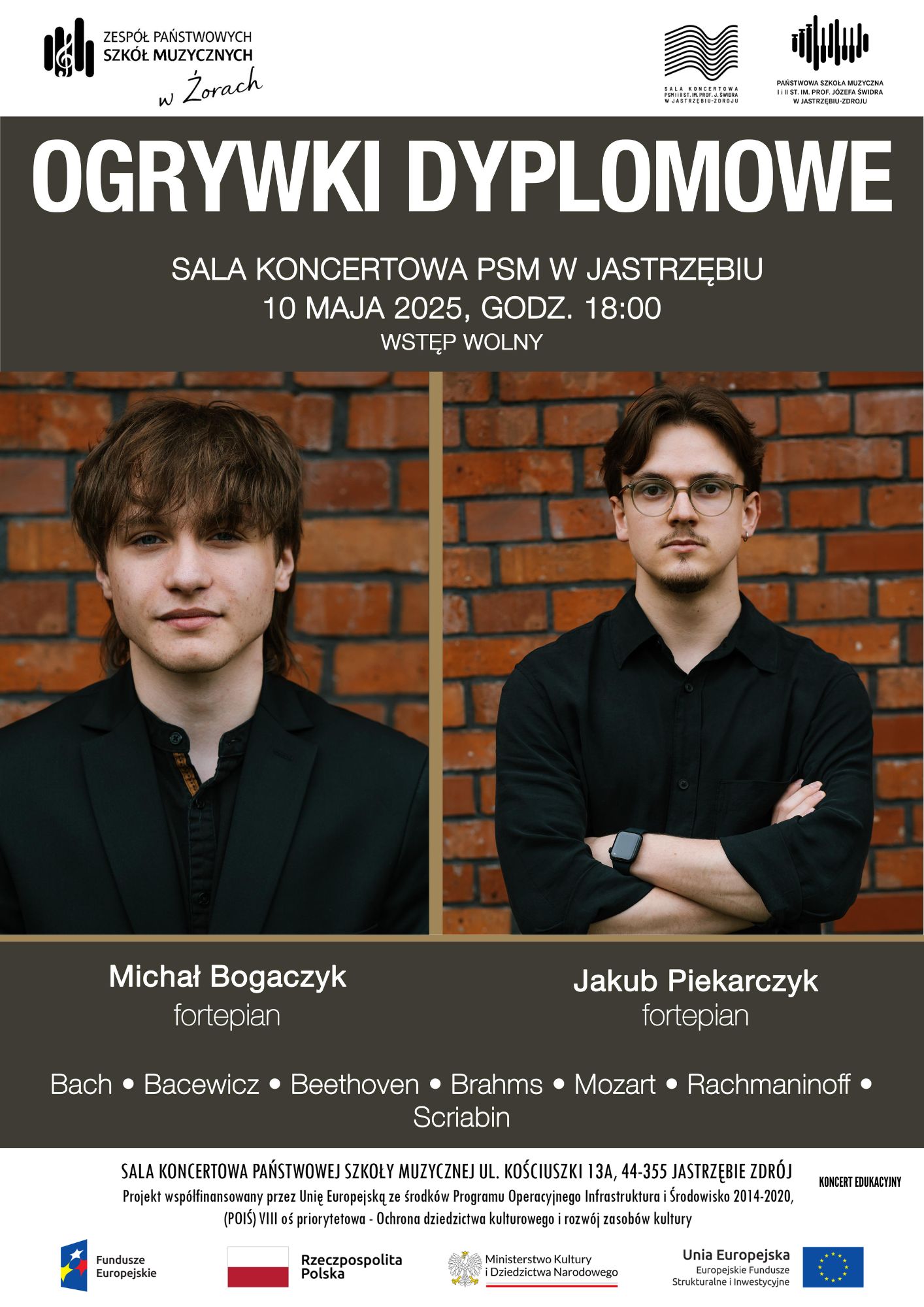 Zespół Państwowych Szkół Muzycznych w Żorach zapraszamy na Koncert Ogrywki dyplomowe, który odbędzie się 10 maja 2025 r. o godzinie 18:00 w Sali koncertowej Szkoły Muzycznej w Jastrzębiu-Zdroju. Wstęp wolny.
