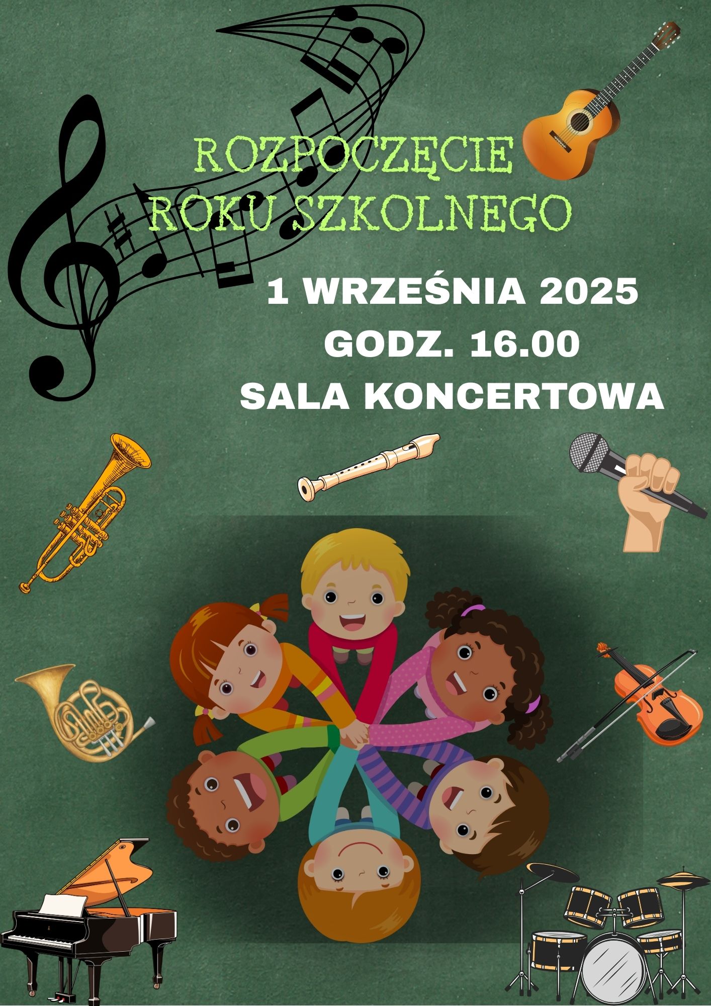 Zapraszamy na uroczyste rozpoczęcie Roku Szkolnego 2025/2026, które odbędzie się 1 września 2025 o godz. 16.00 w Sali Koncertowej.
